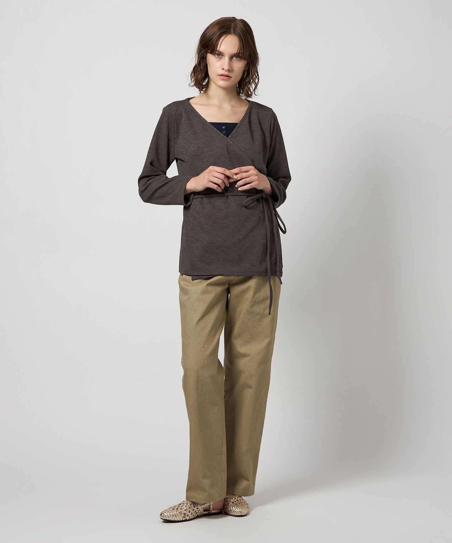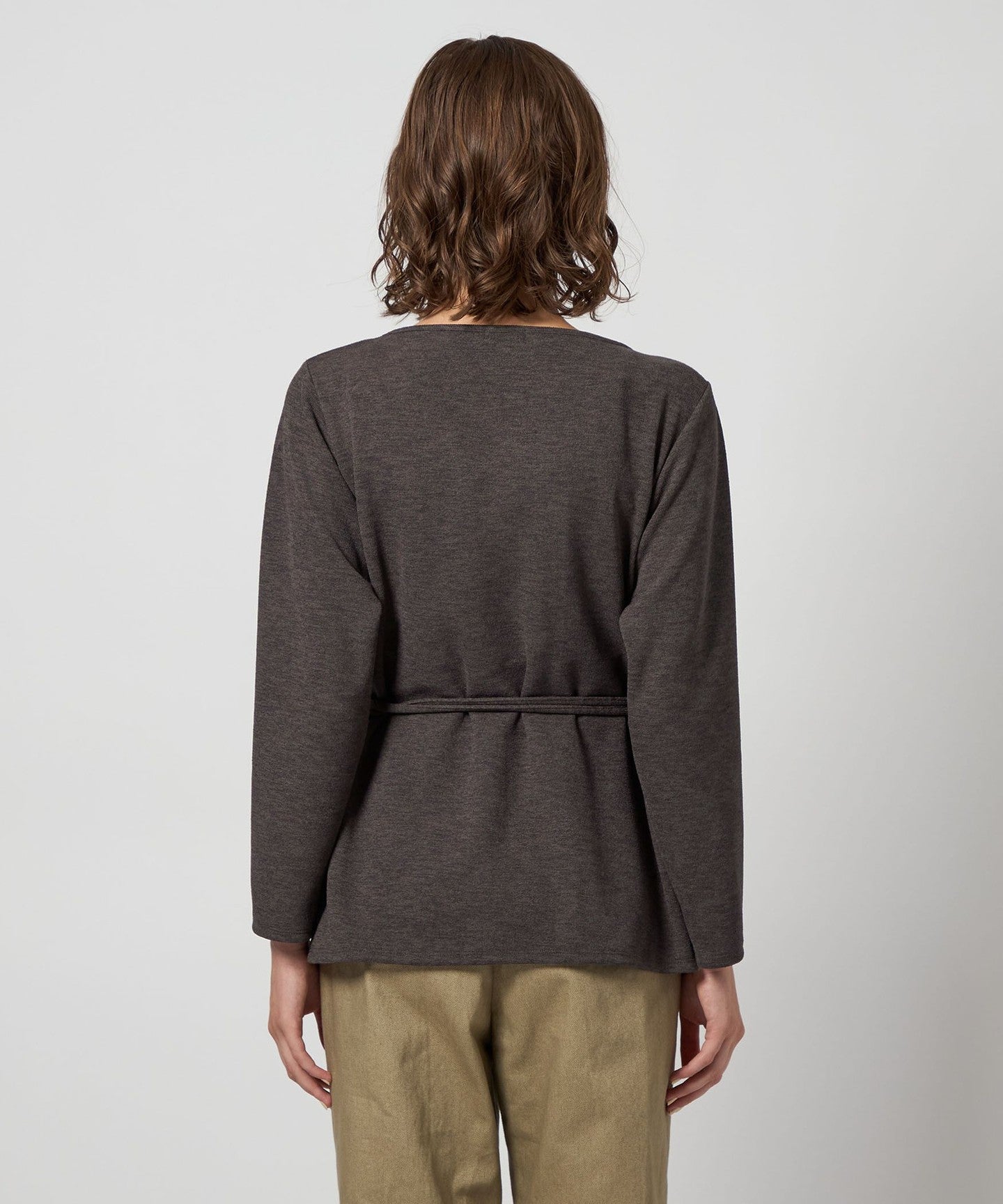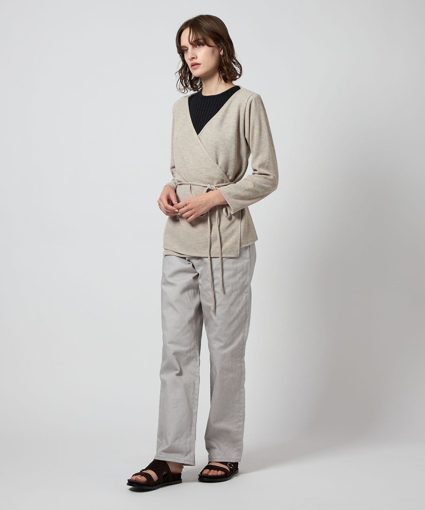 The front side has a rough texture and the back side is a flat double-face fabric that feels comfortable against the skin, creating a simple yet natural look.