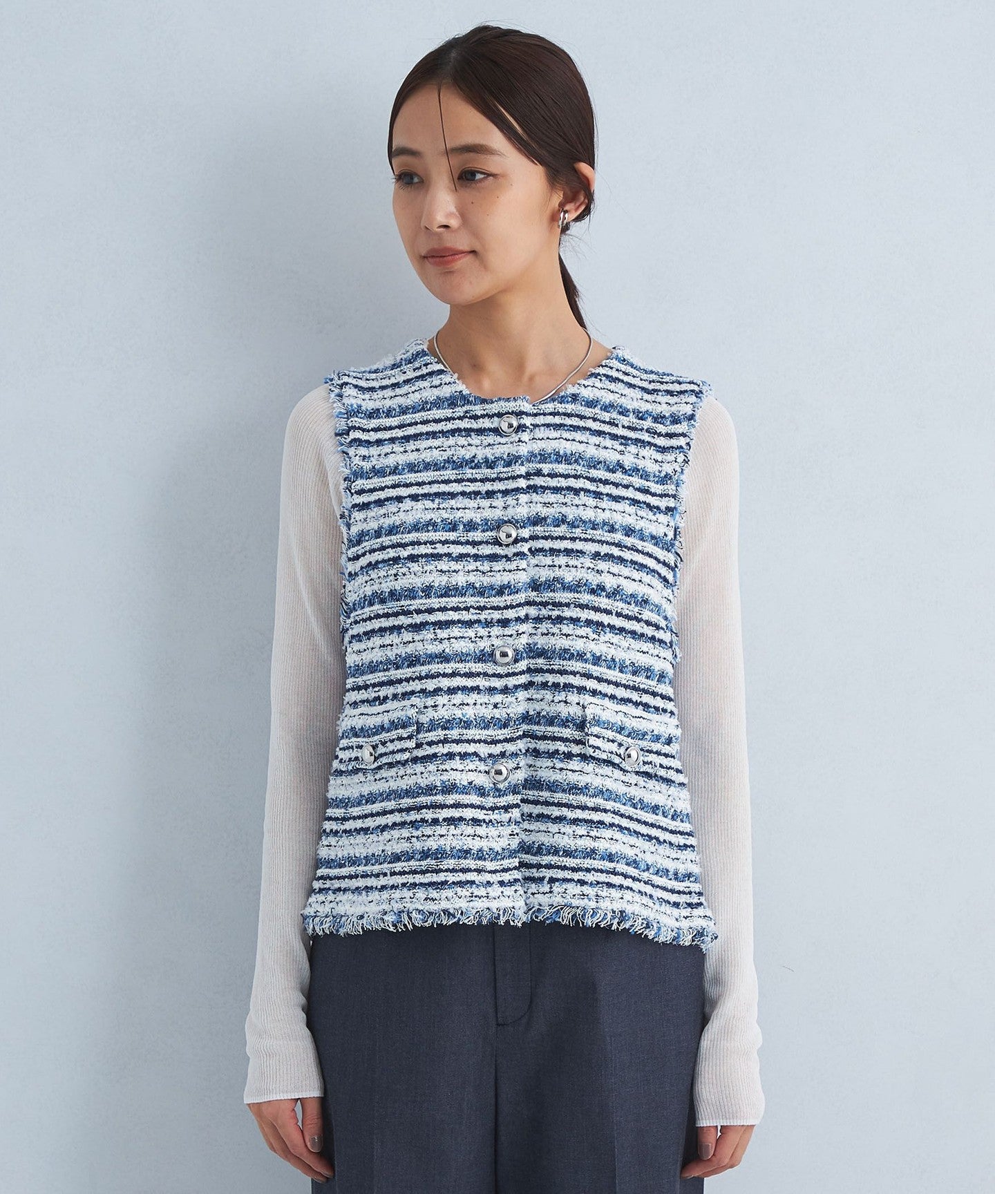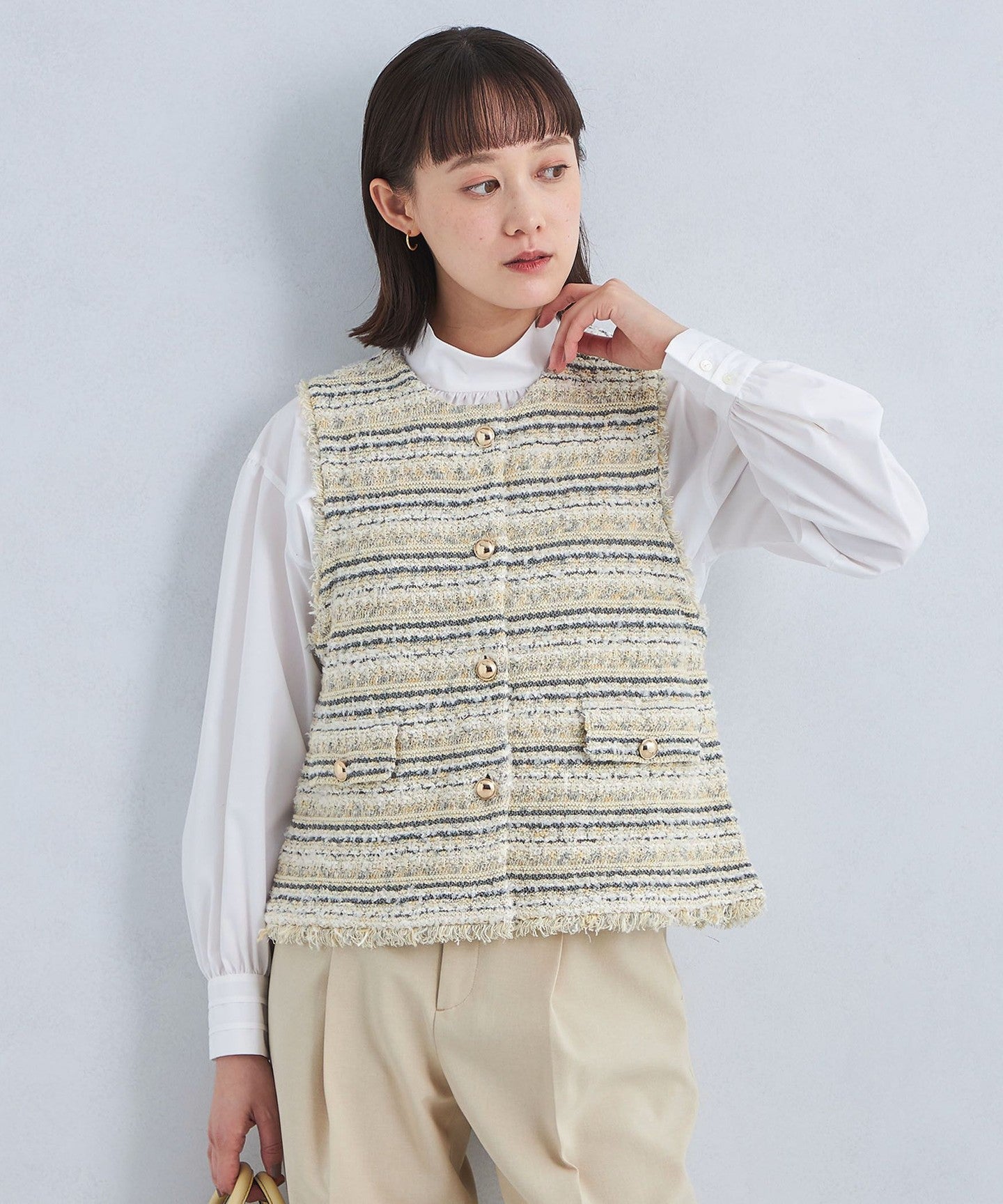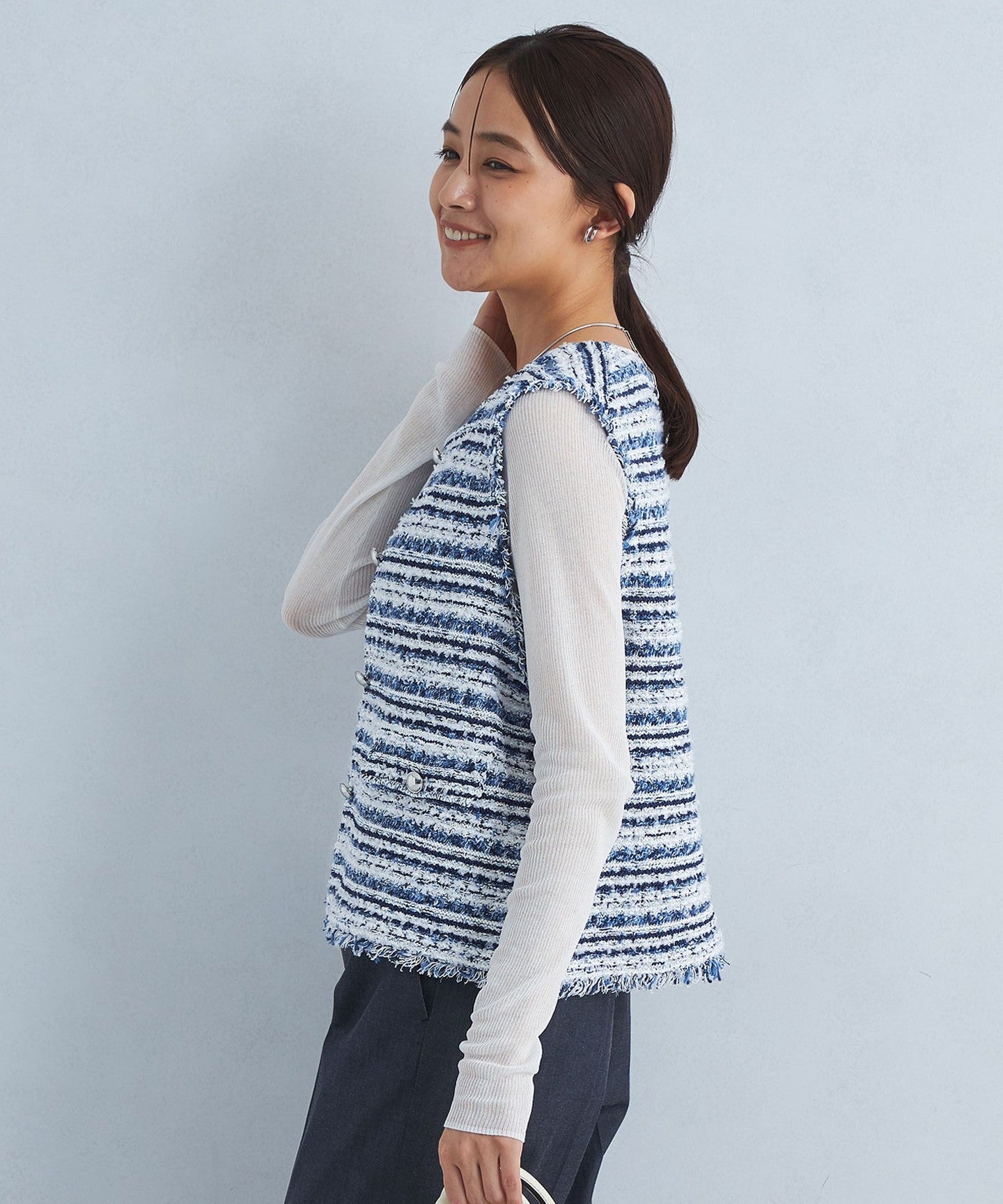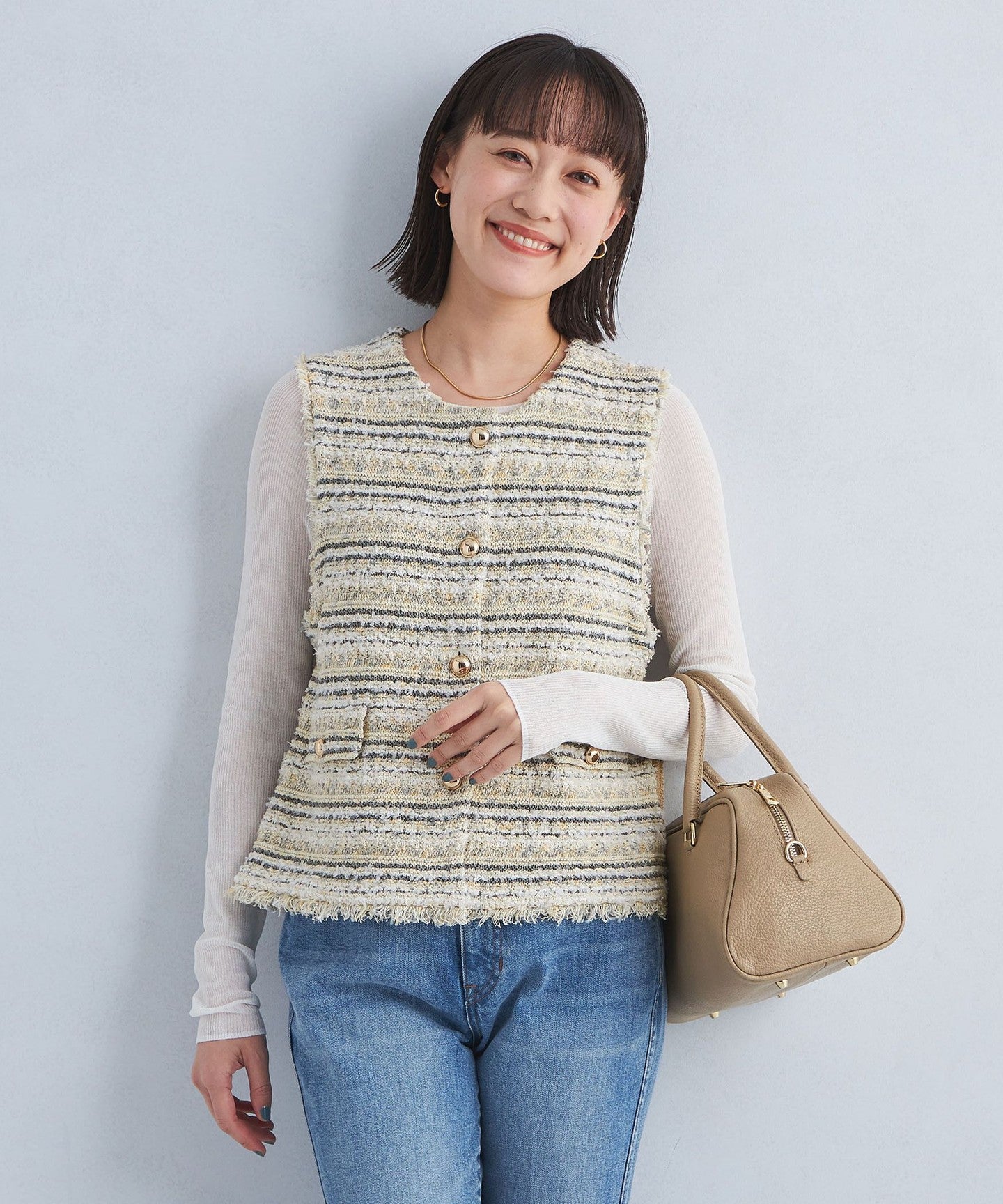 Mixed Tweed-Like Knit Gilet Vest - Washable-