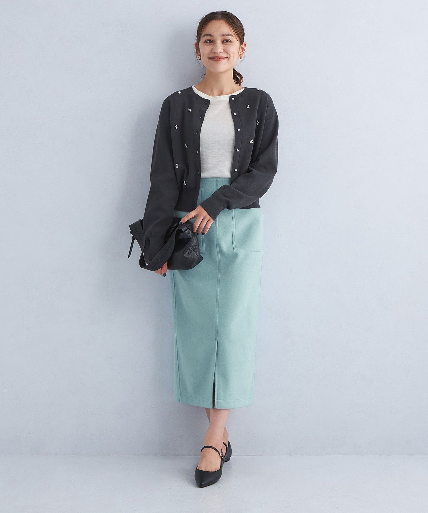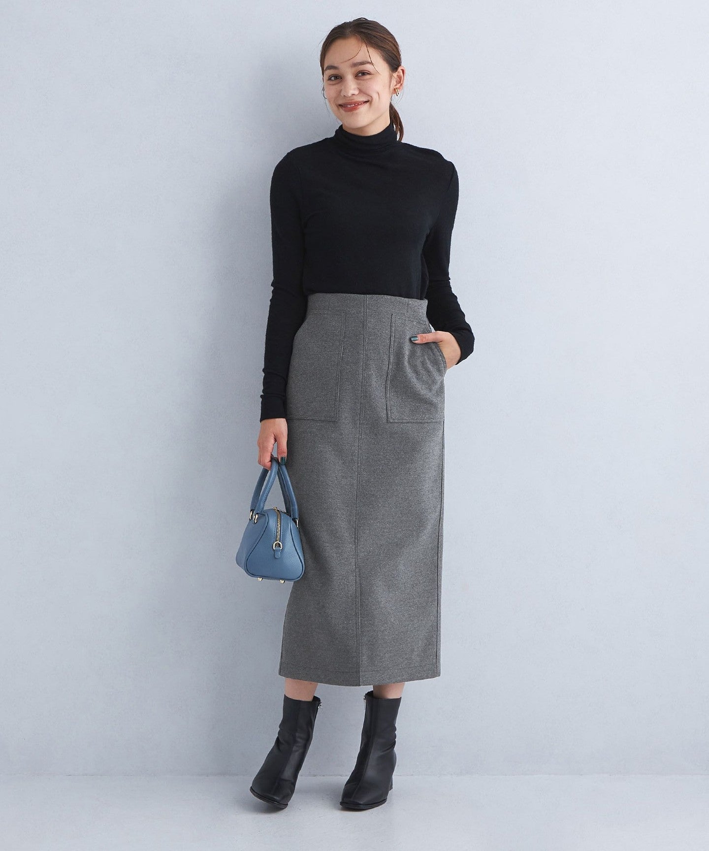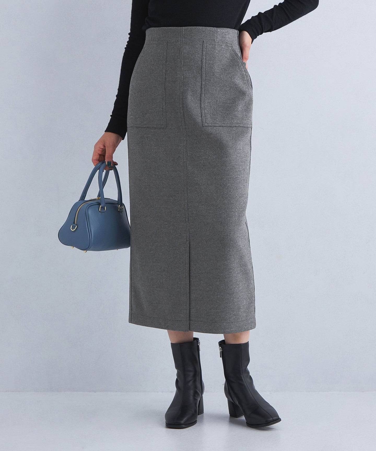 Ashk Jersey Slit Tight Skirt - Washable Stretch-