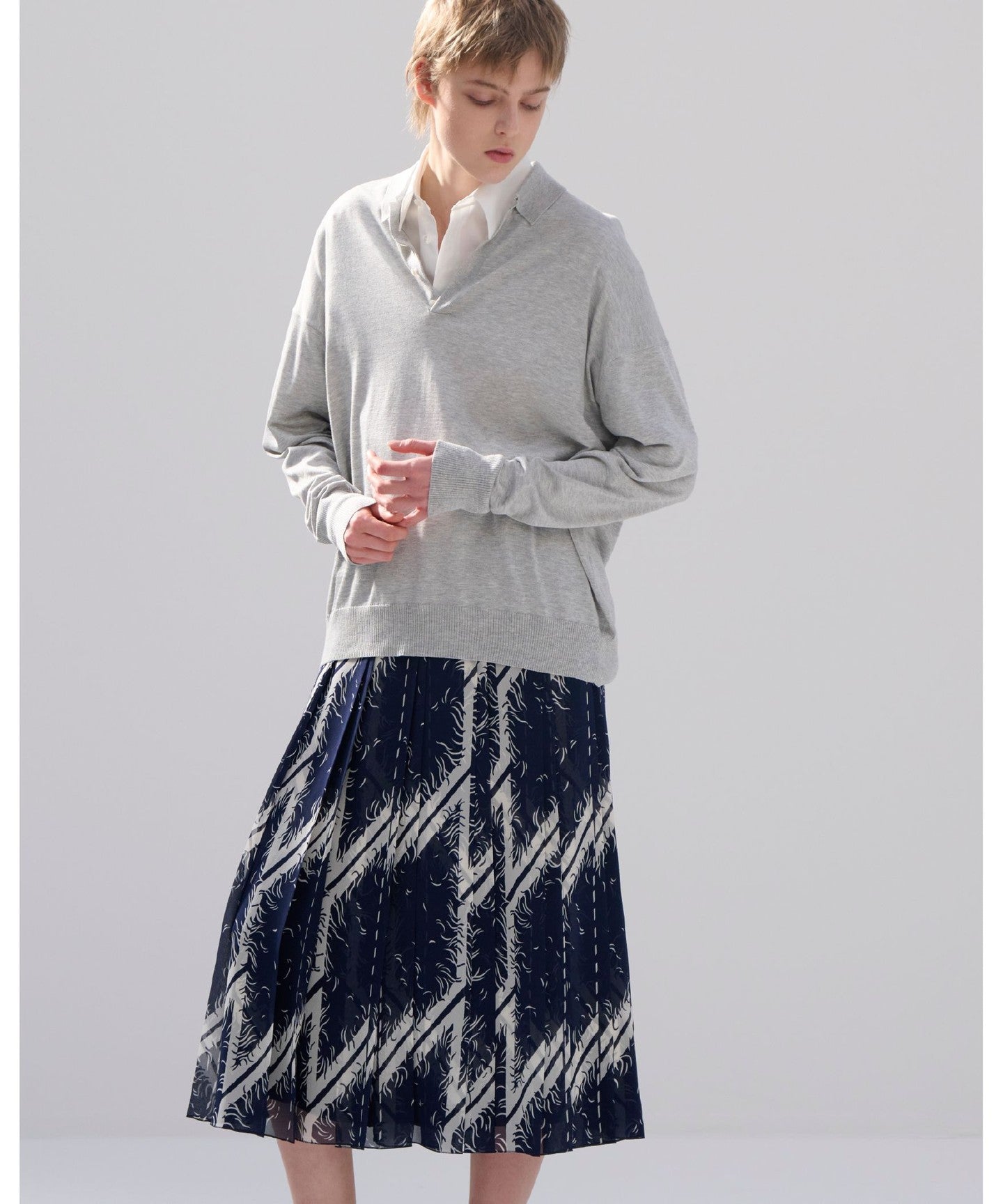 The mixed heathered colors add a soft impression.