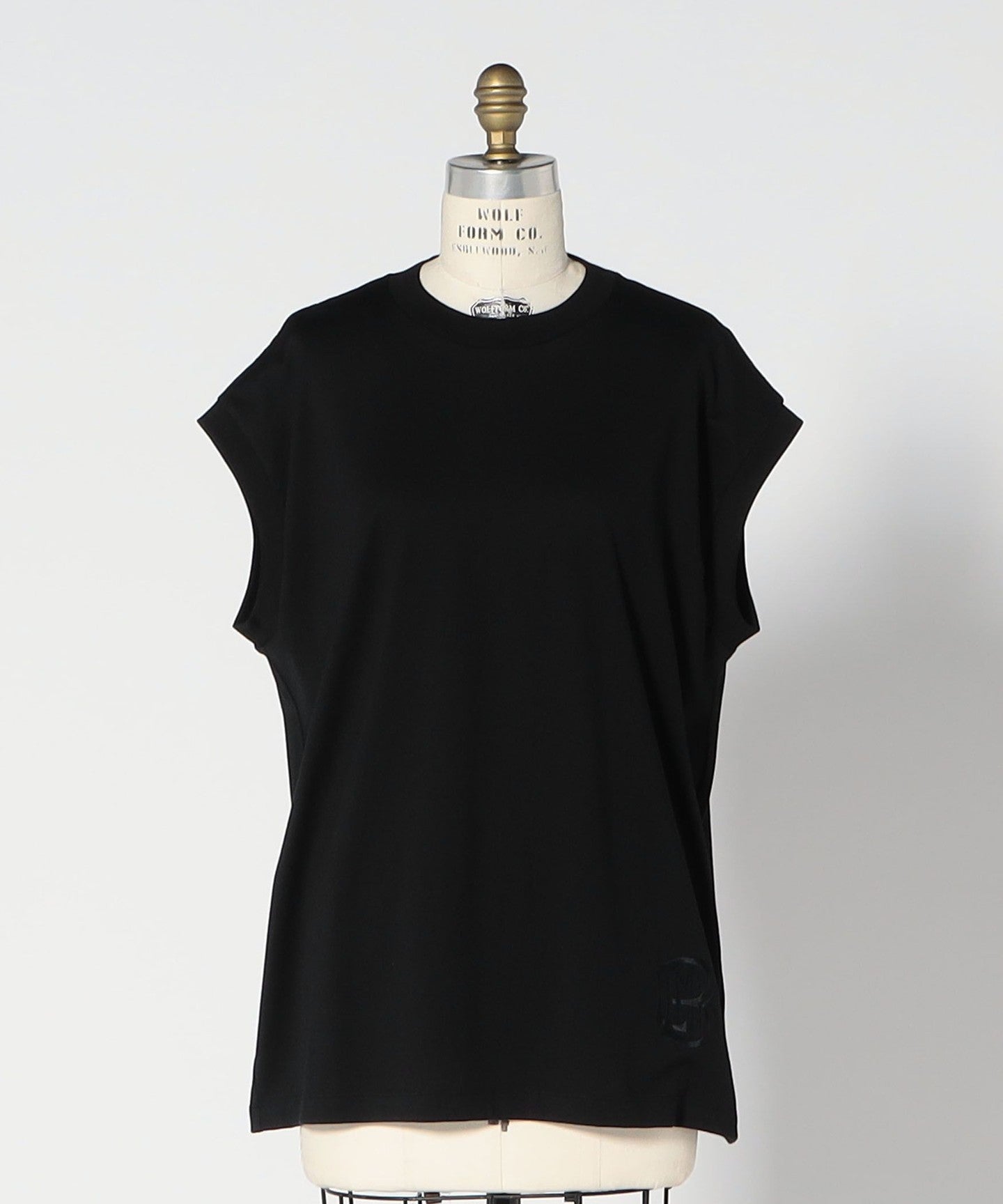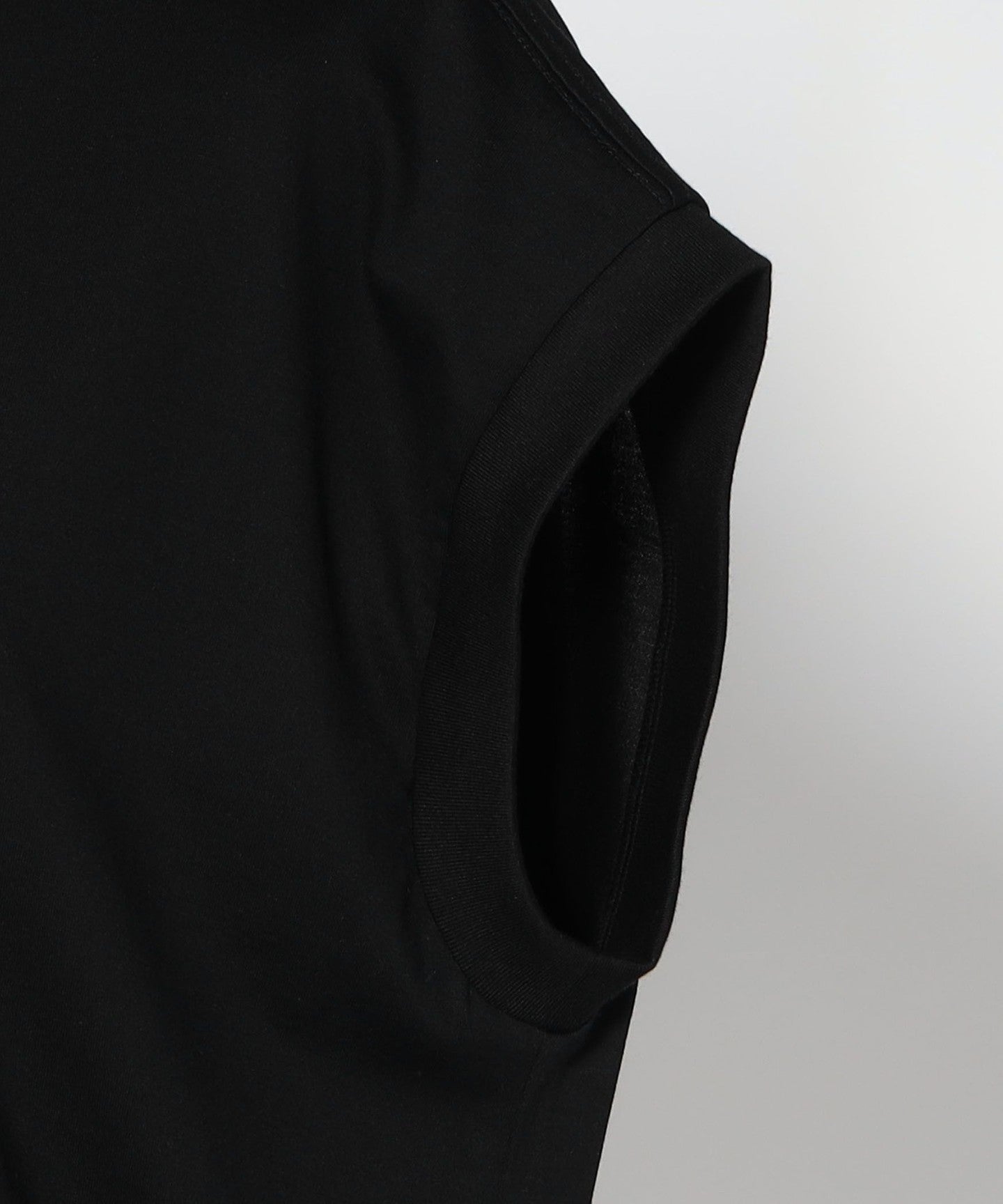A sleeveless cut-and-sew top featuring BLAMINK's iconic embroidery on the side.