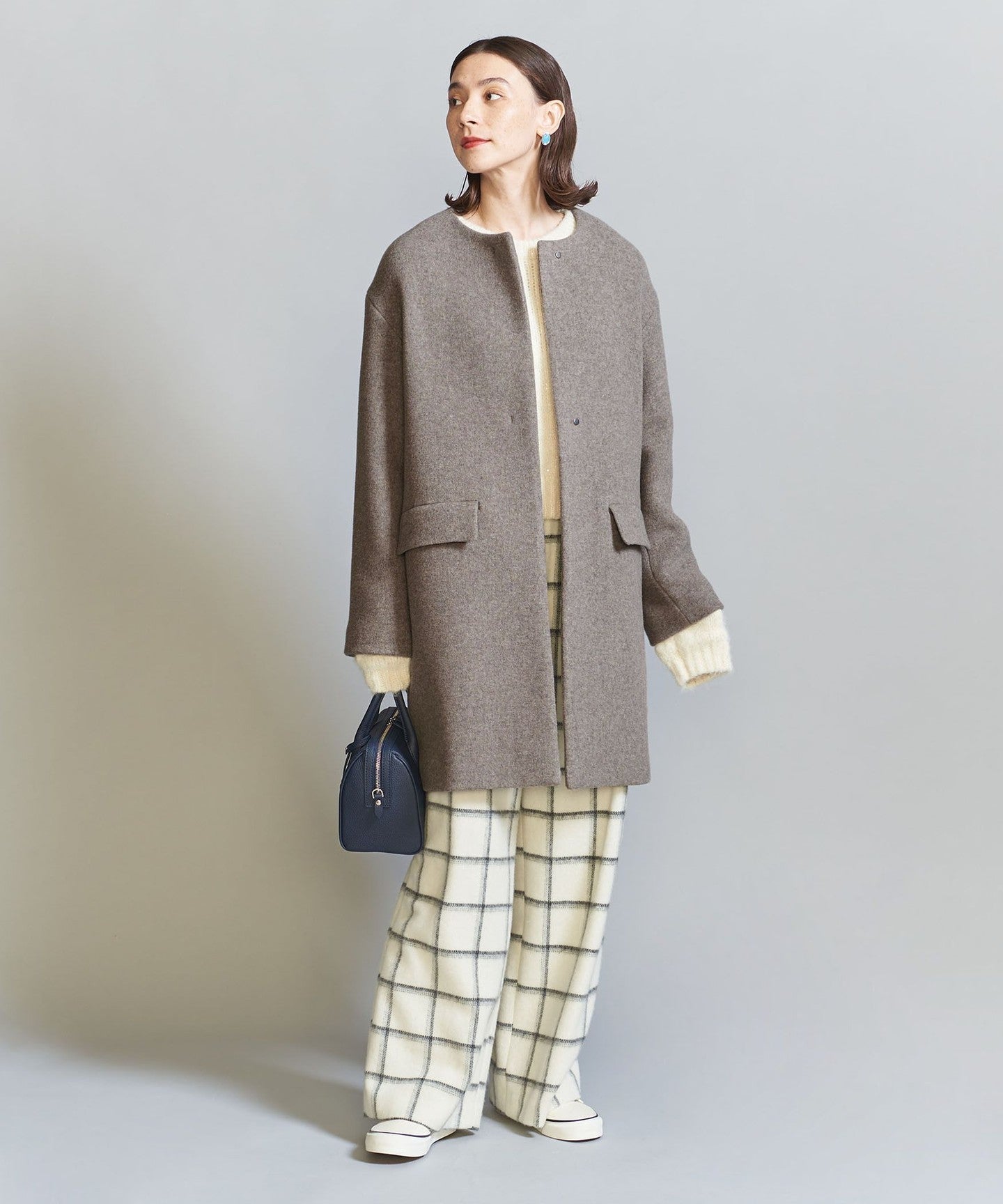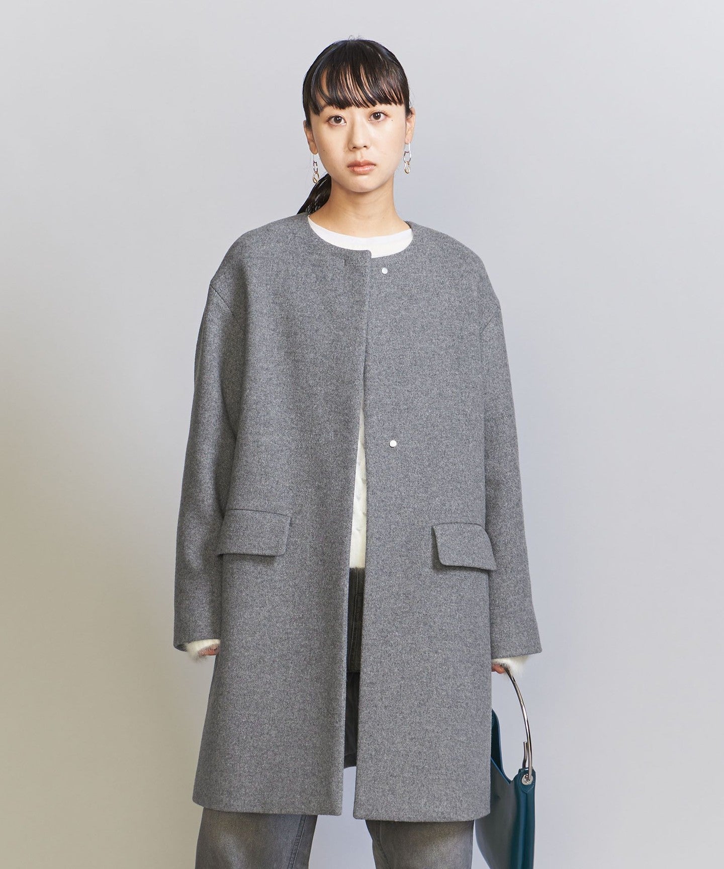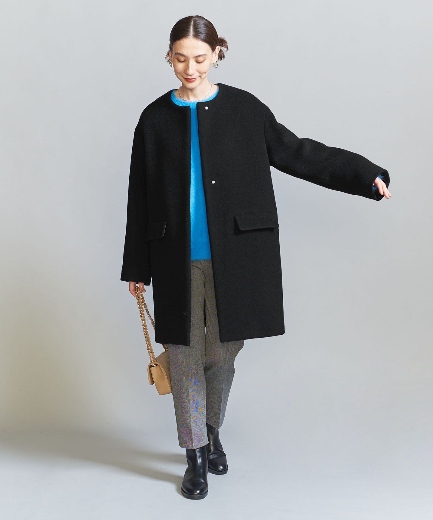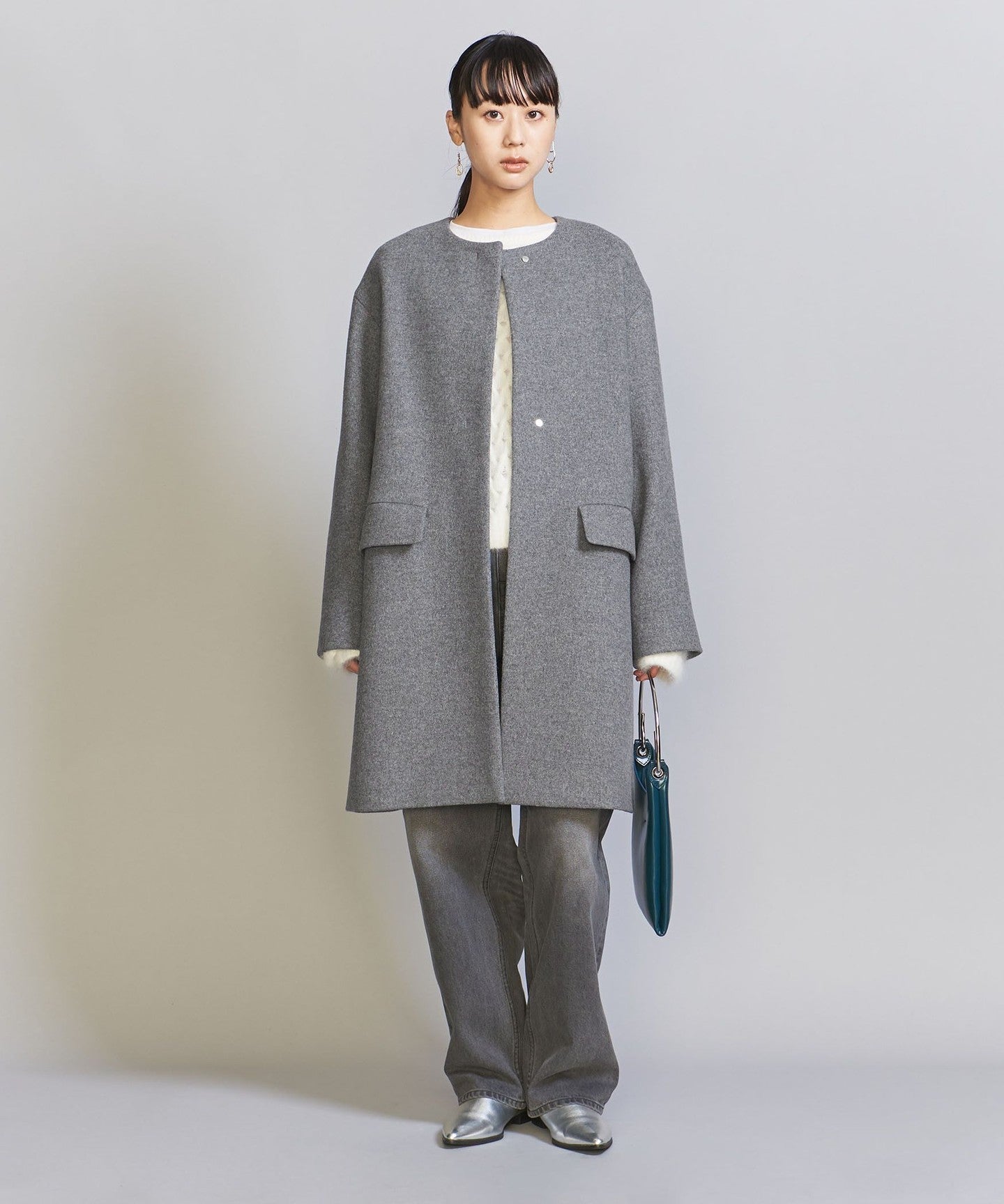 "MANTECO" Wool Versatile no-collar top made from blended materialsCOAT