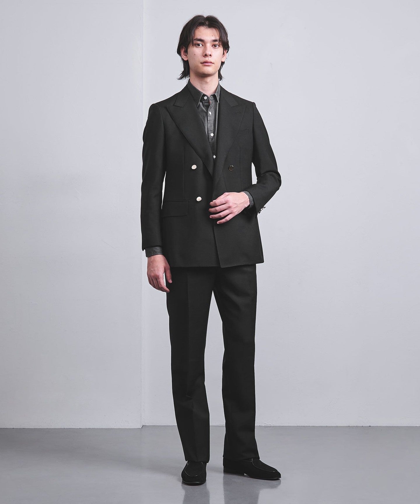 It is made with a blend of mohair, and although it is thin, it has a sharp, firm texture that looks great when tailored, and a glossy finish that gives it an elegant and glamorous feel.