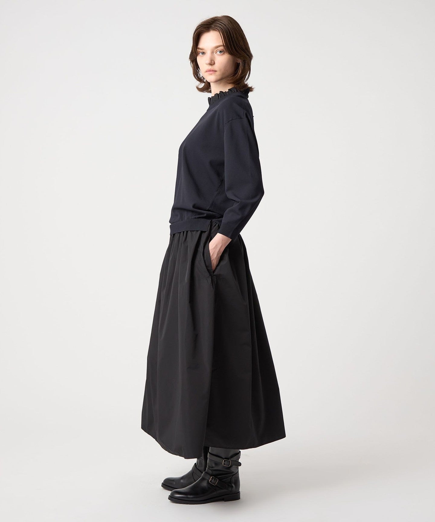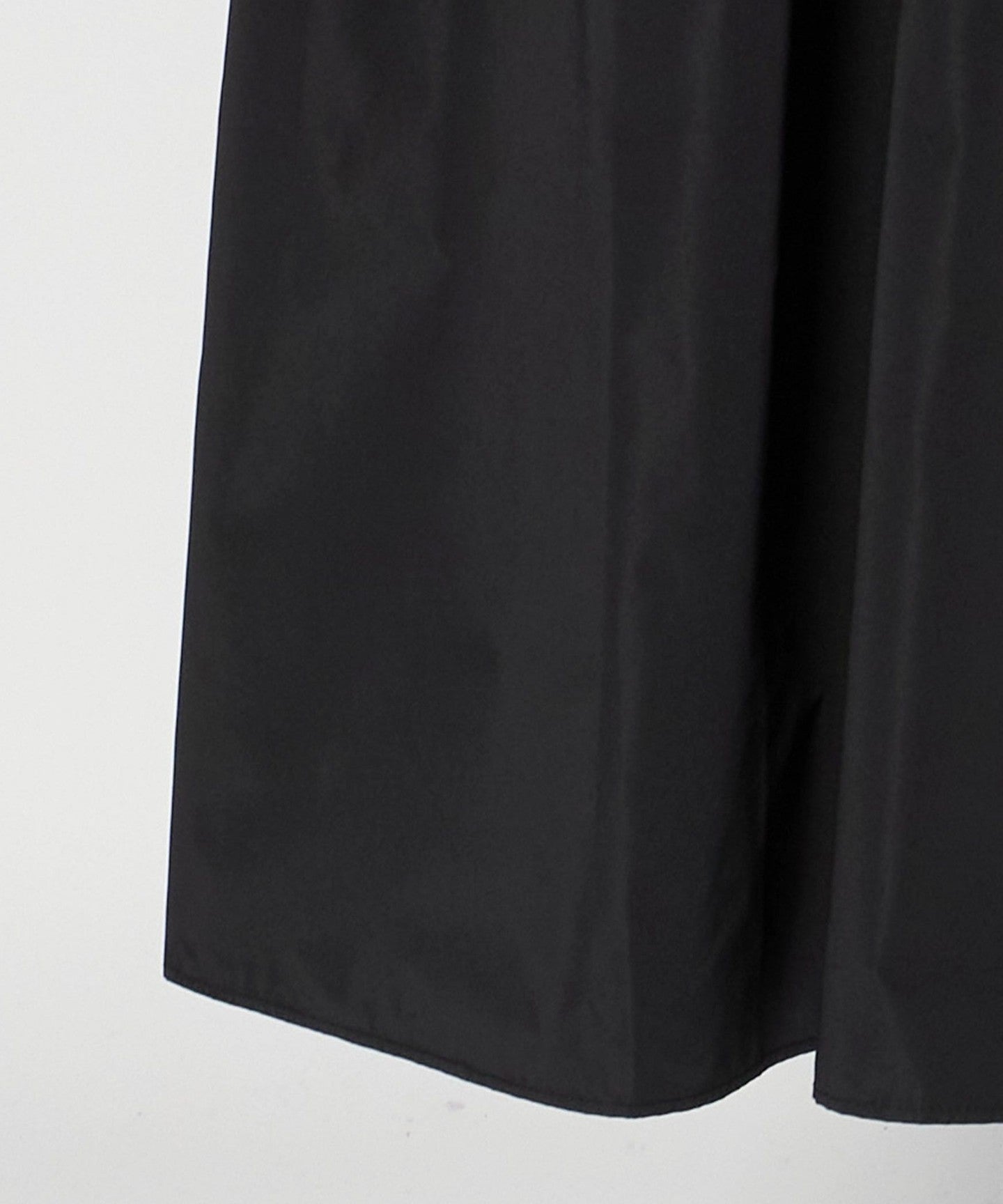 The skirt and neckline are made from a lustrous silk-blend taffeta fabric.