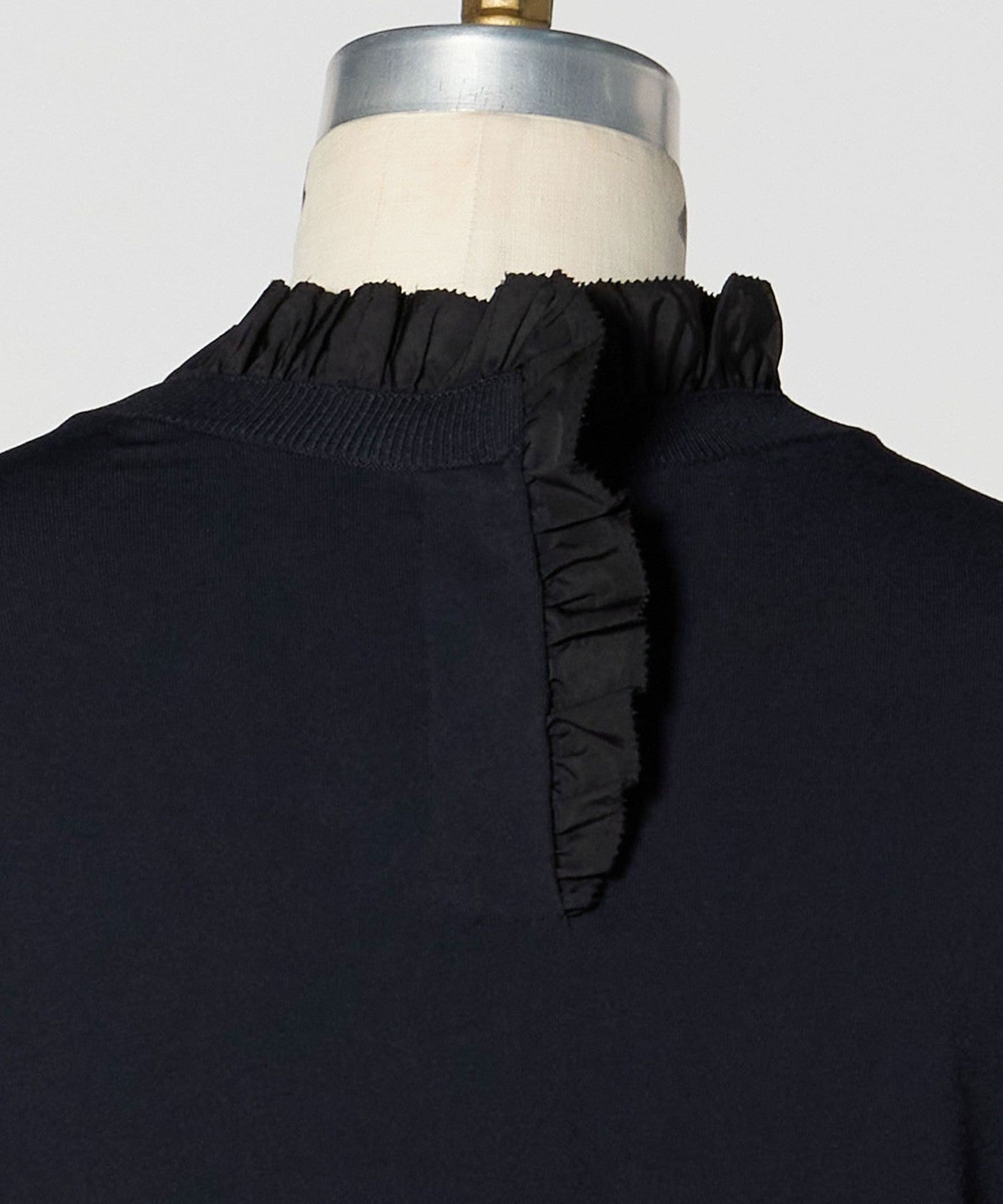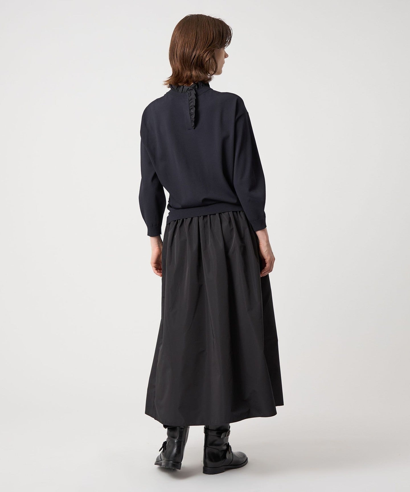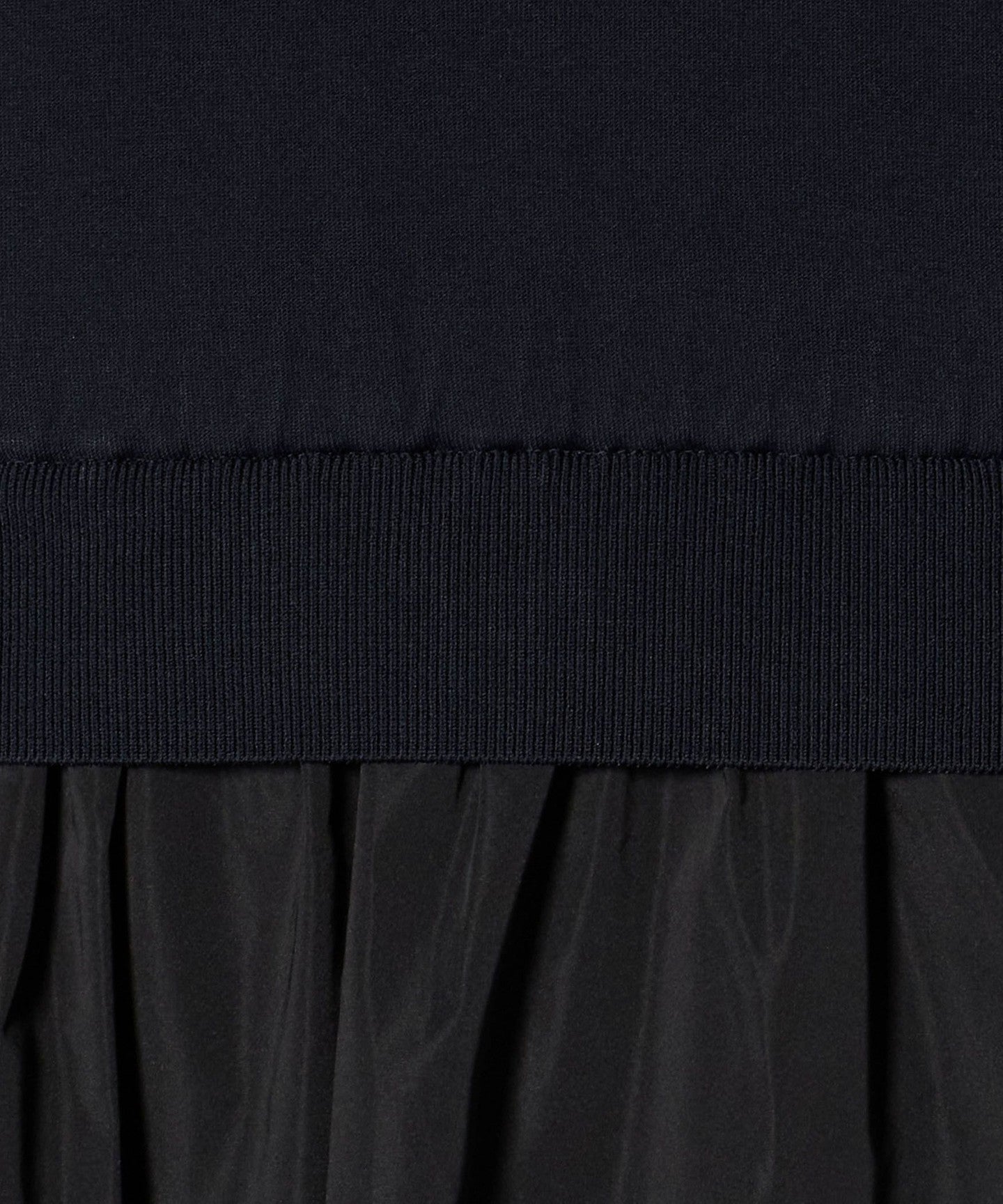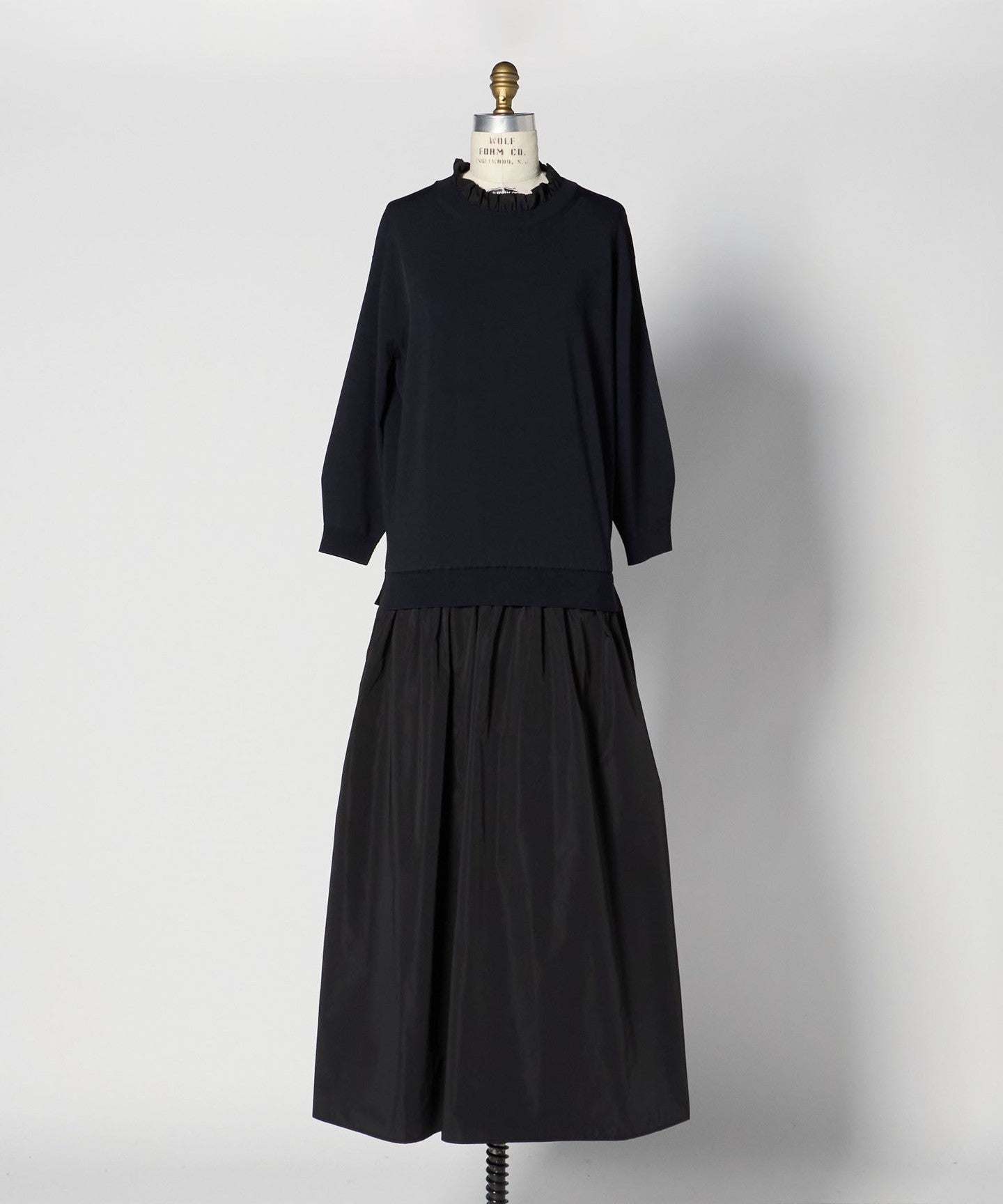 This knit combination dress has a gorgeous look, with ruffles made from the same fabric as the skirt that extend from the neckline to the back.