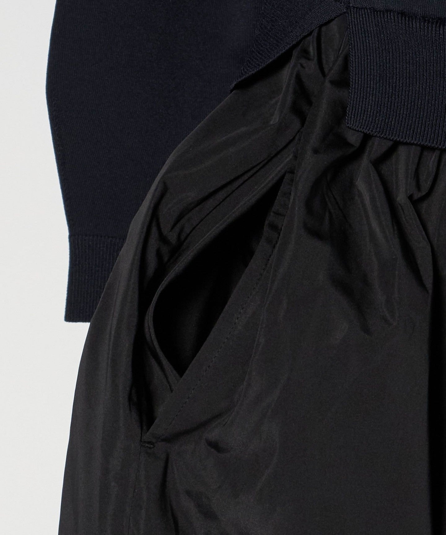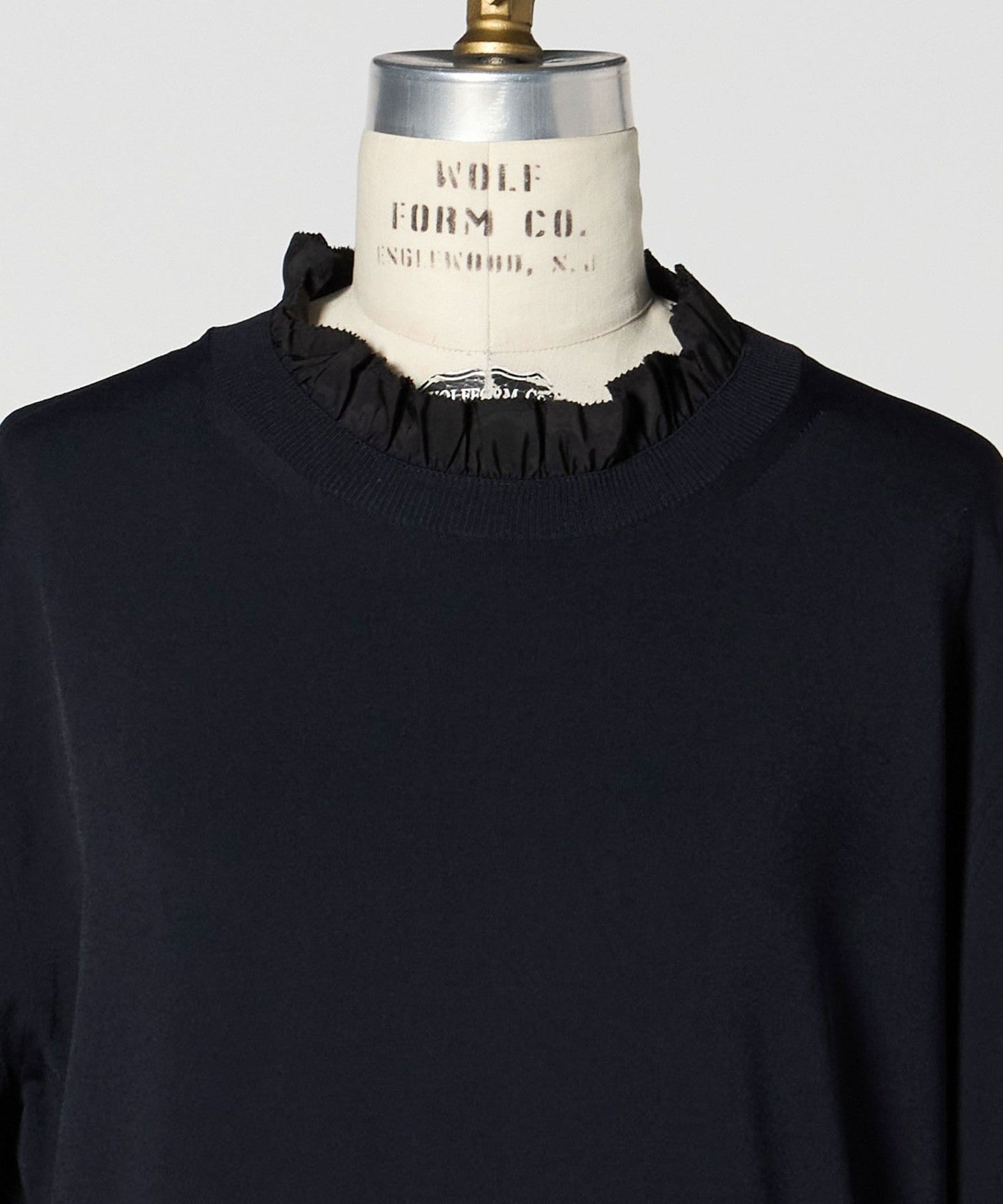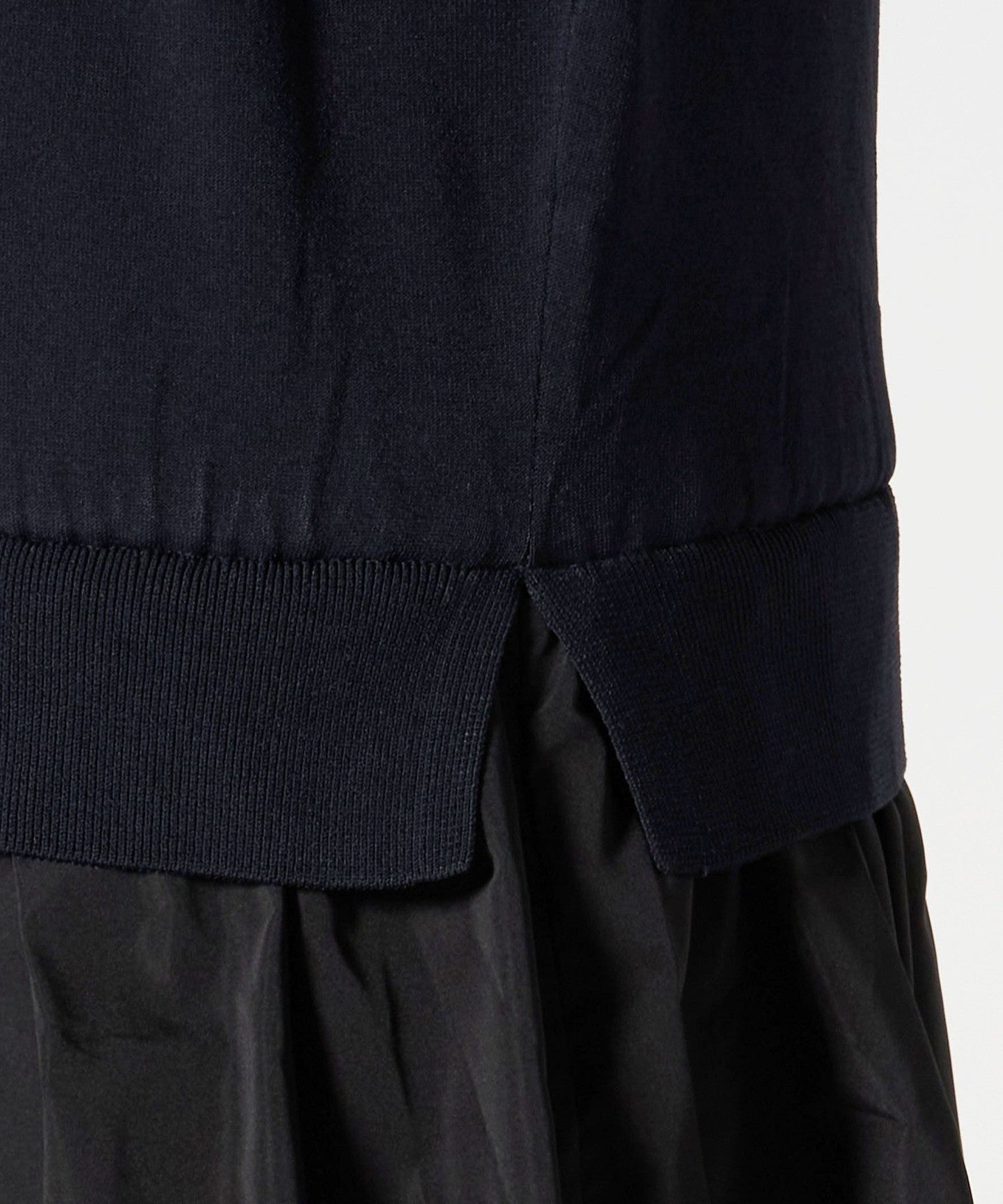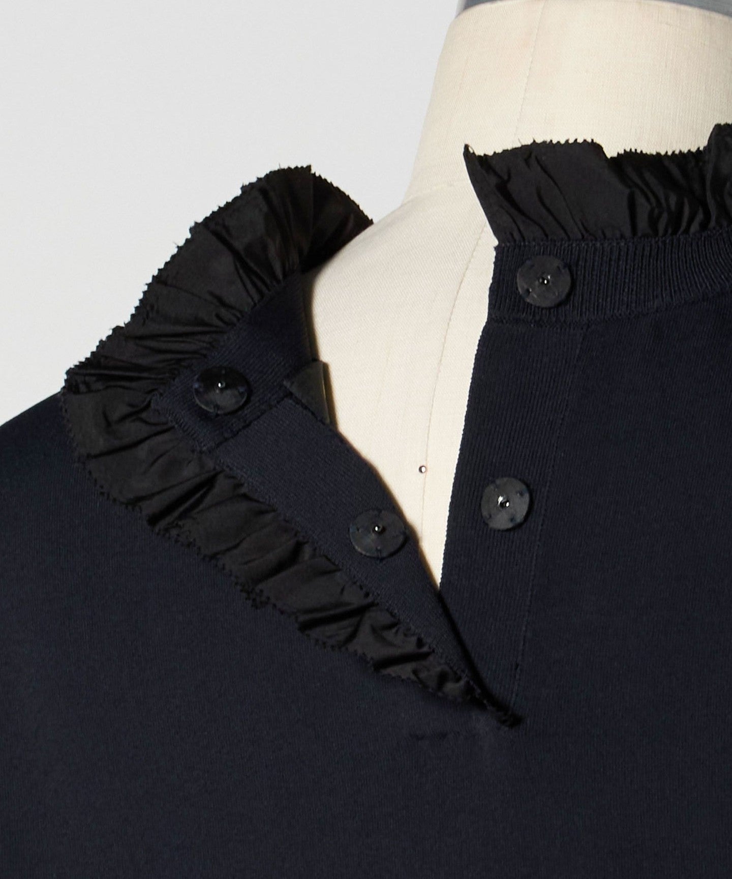 This knit combination dress has a gorgeous look, with ruffles made from the same fabric as the skirt that extend from the neckline to the back.