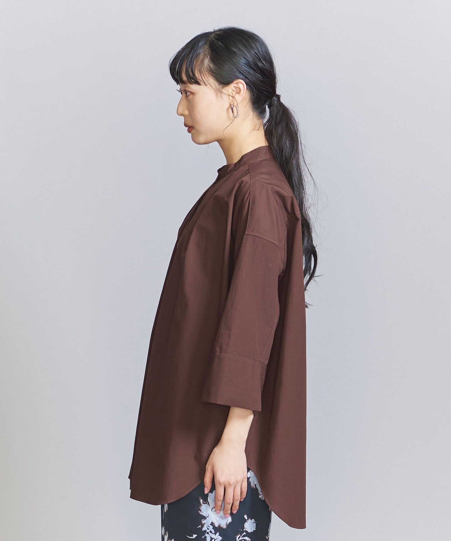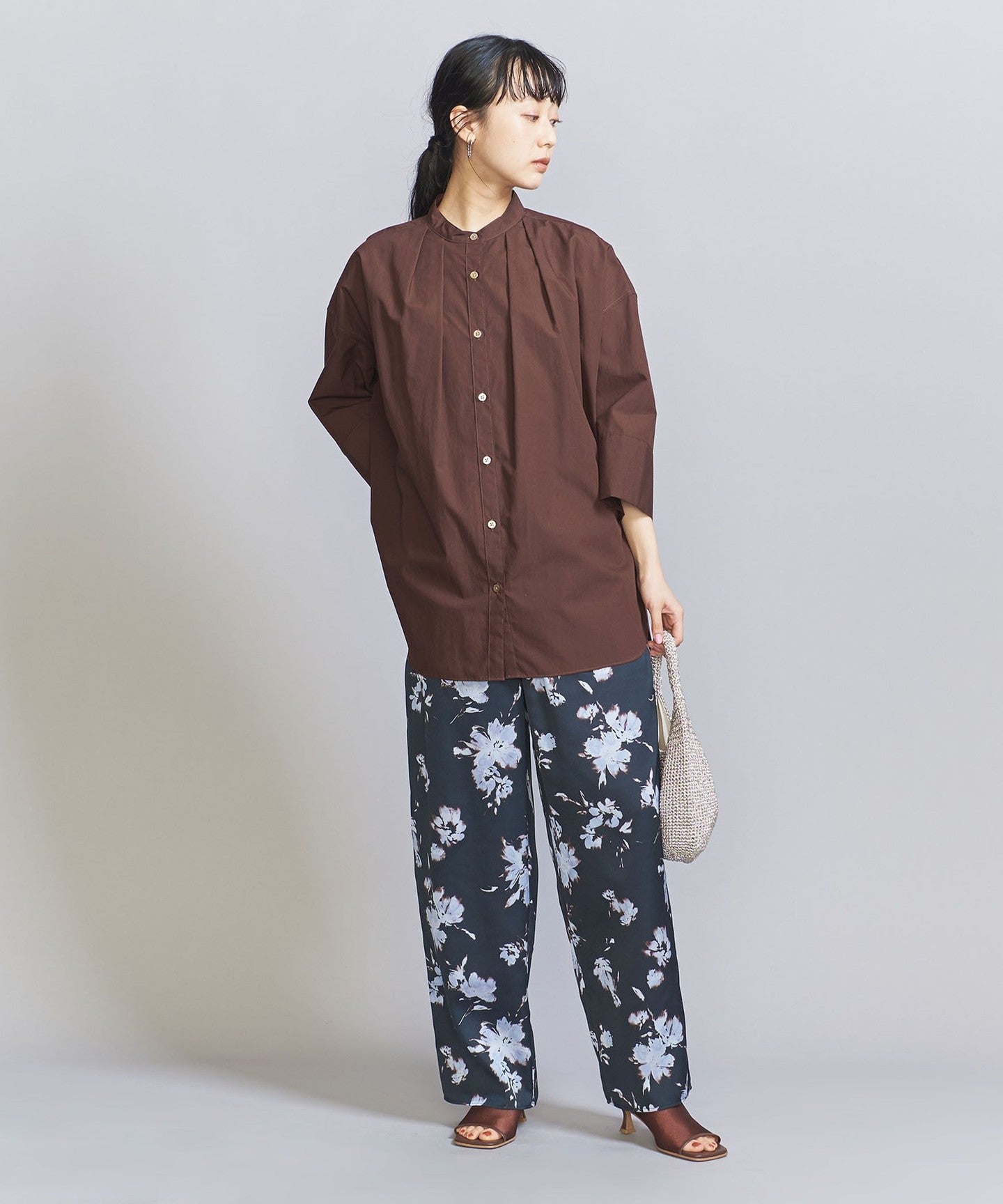 The band collar gives it a clean look, while the vertical tuck details are the highlight.