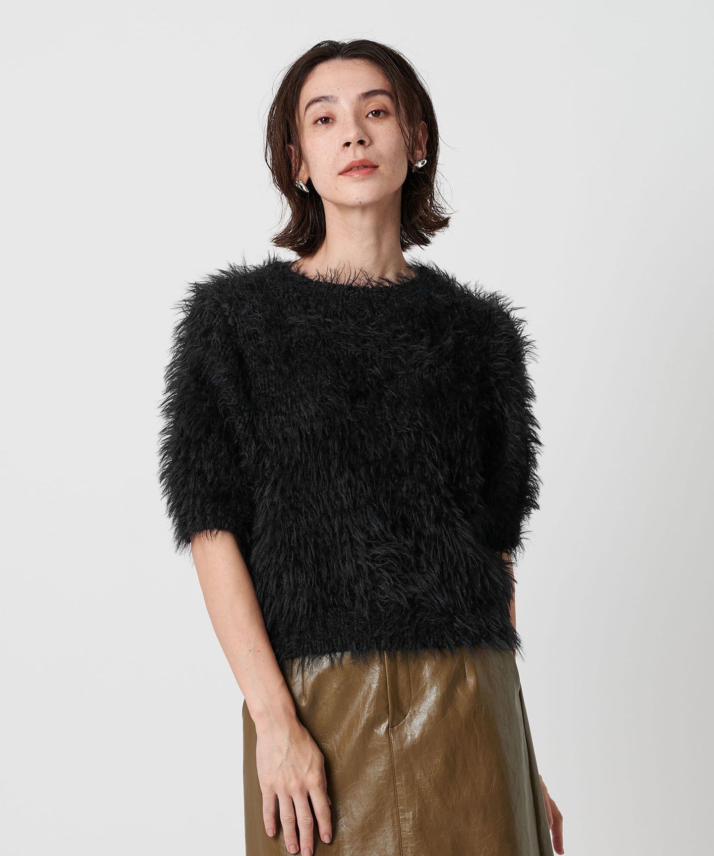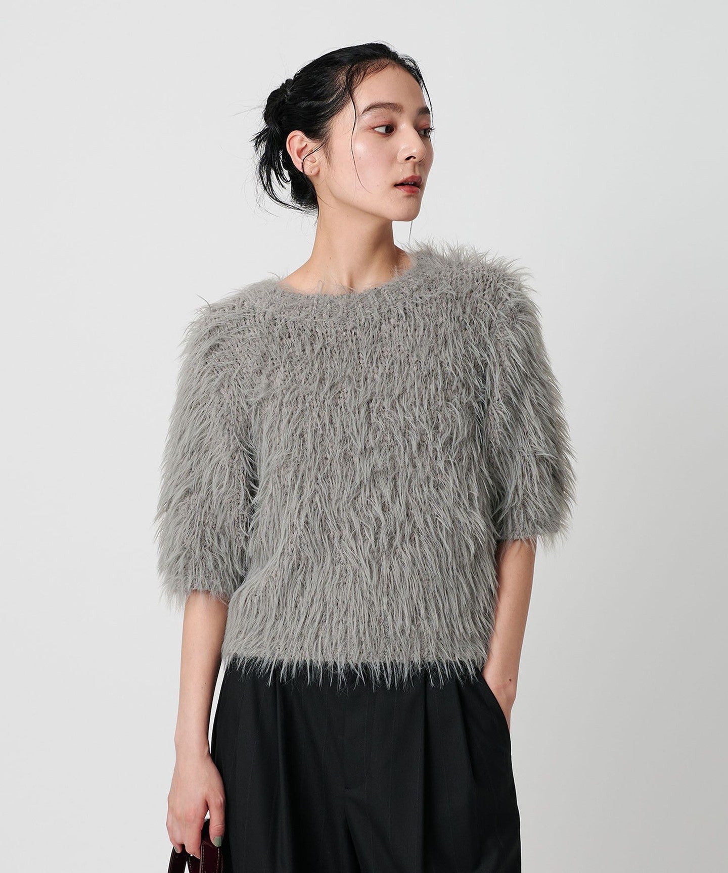 A half-sleeve knit with a soft texture for a mature and feminine look