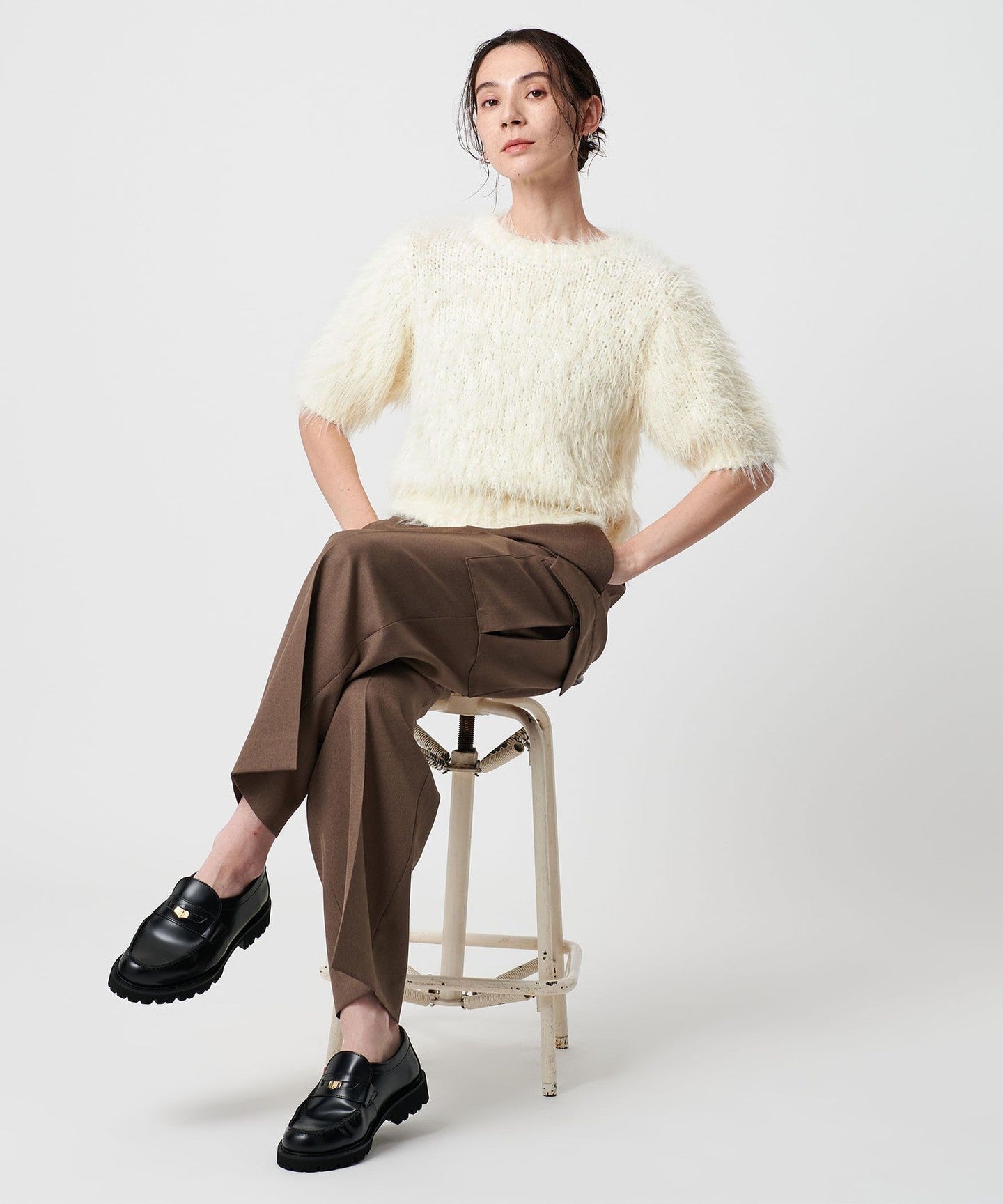 Available in three colors: off-white, which enhances a feminine mood, and versatile black and gray.