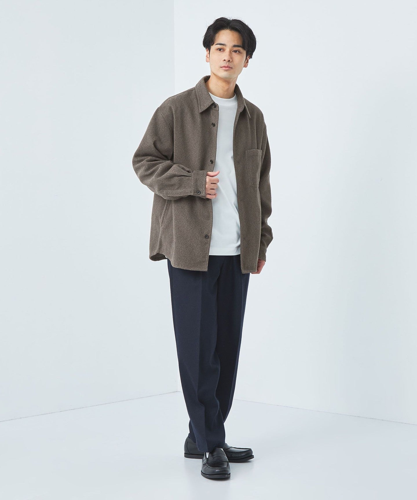 A tweed-like CPO shirt that can be worn as both an outer layer and an inner layer.