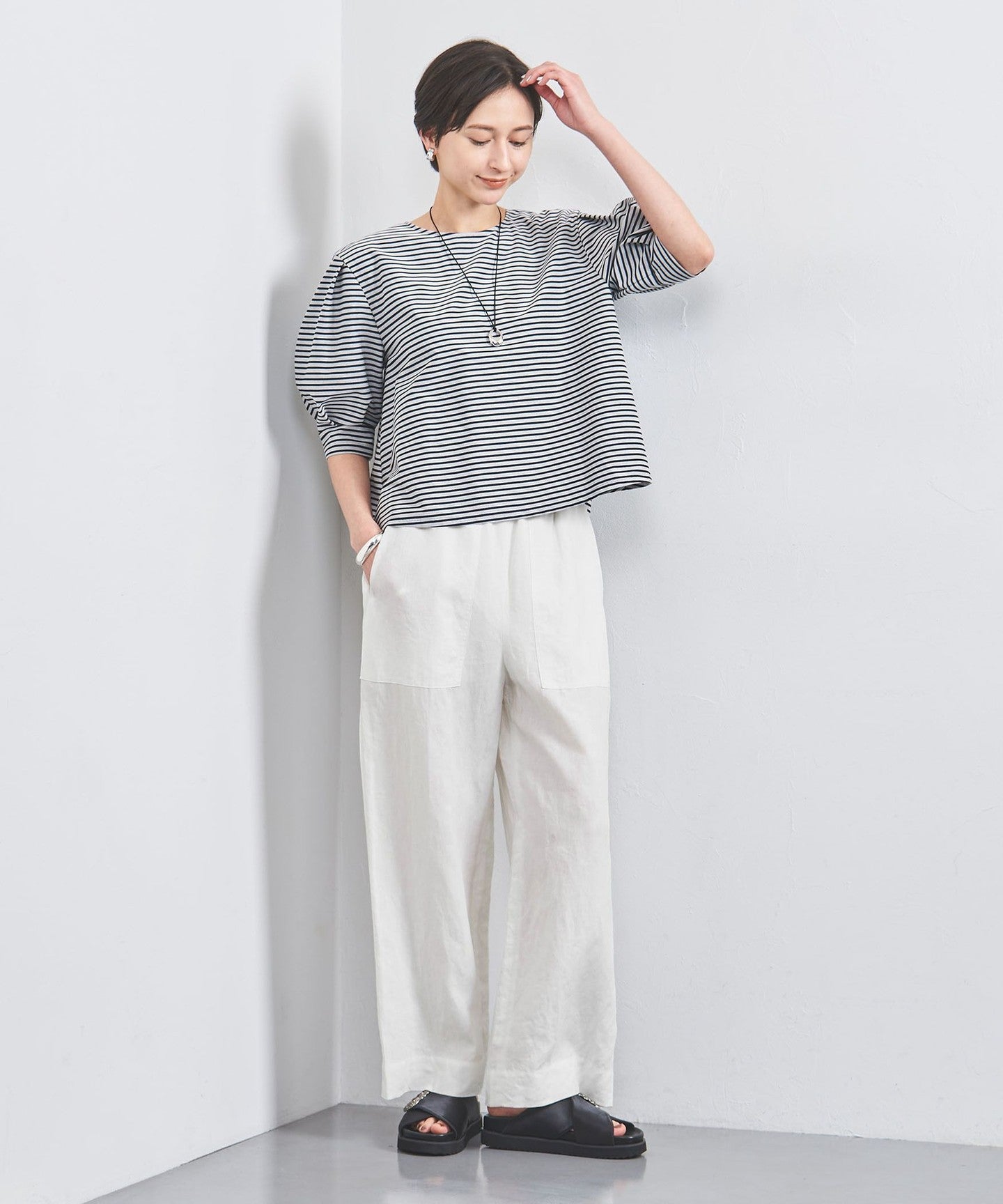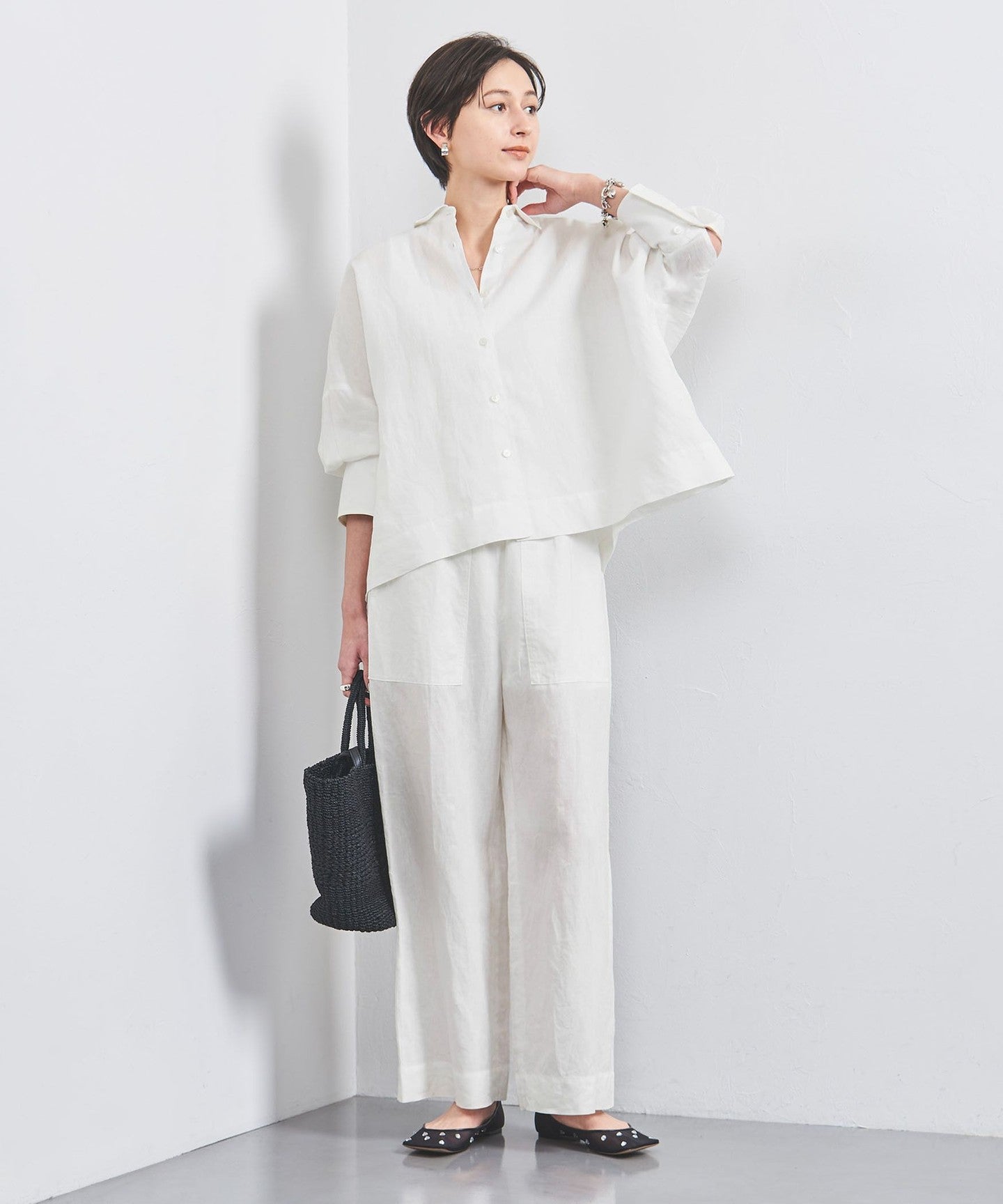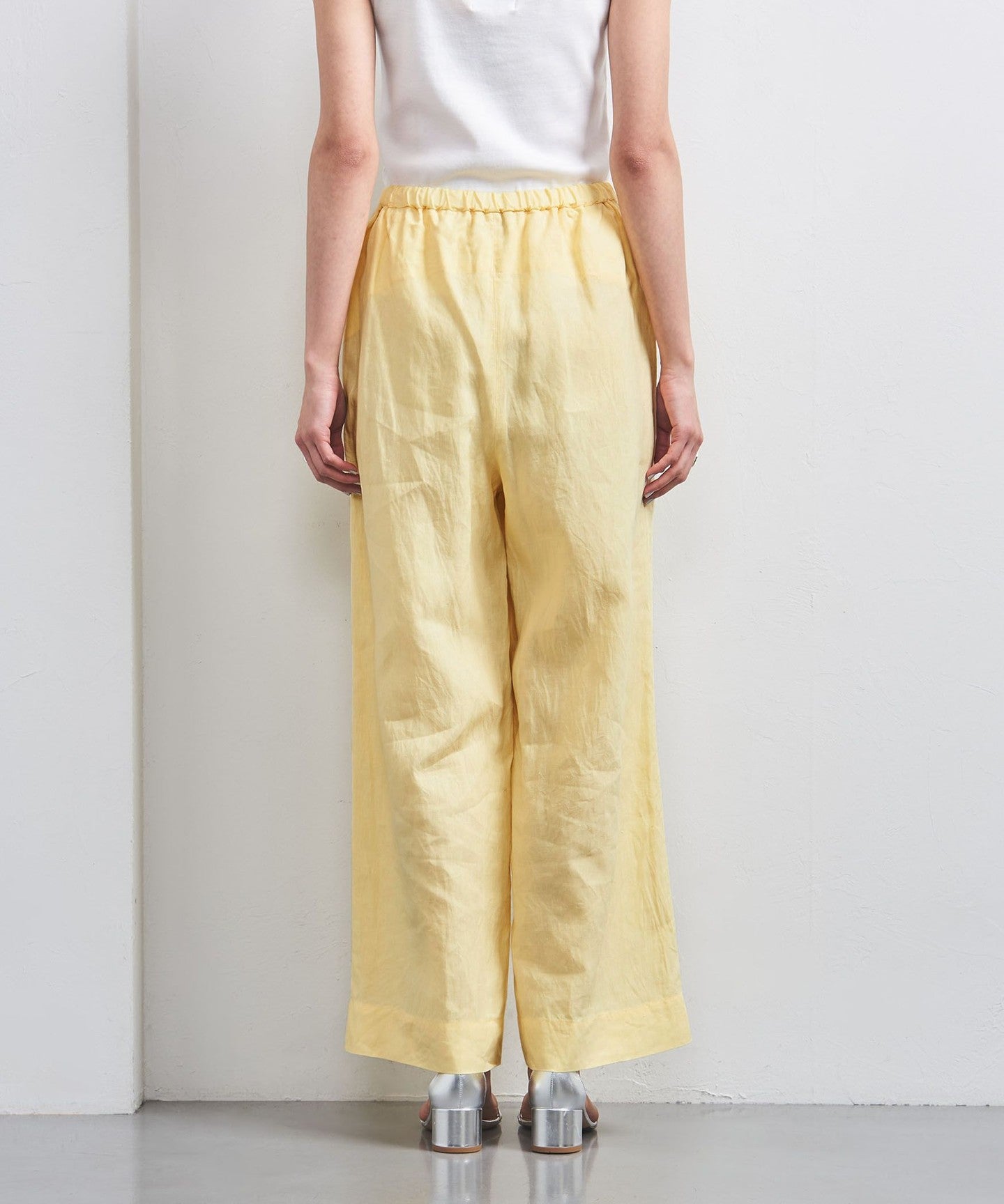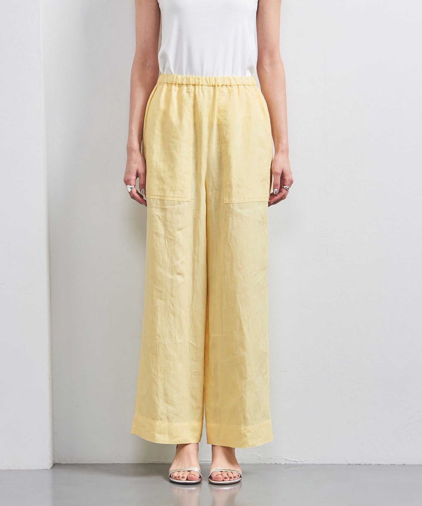 The fabric is dyed using a liquid dyeing method while being carefully kneaded, giving it the fluffy texture that is unique to linen.