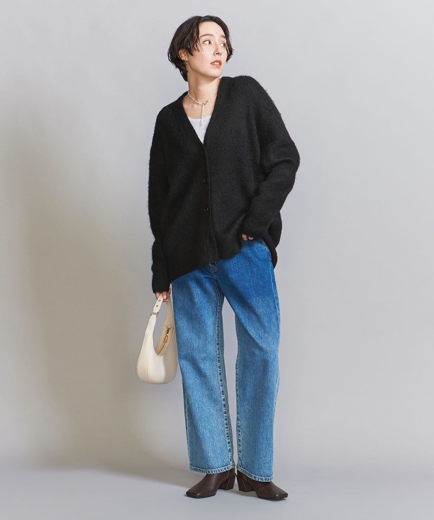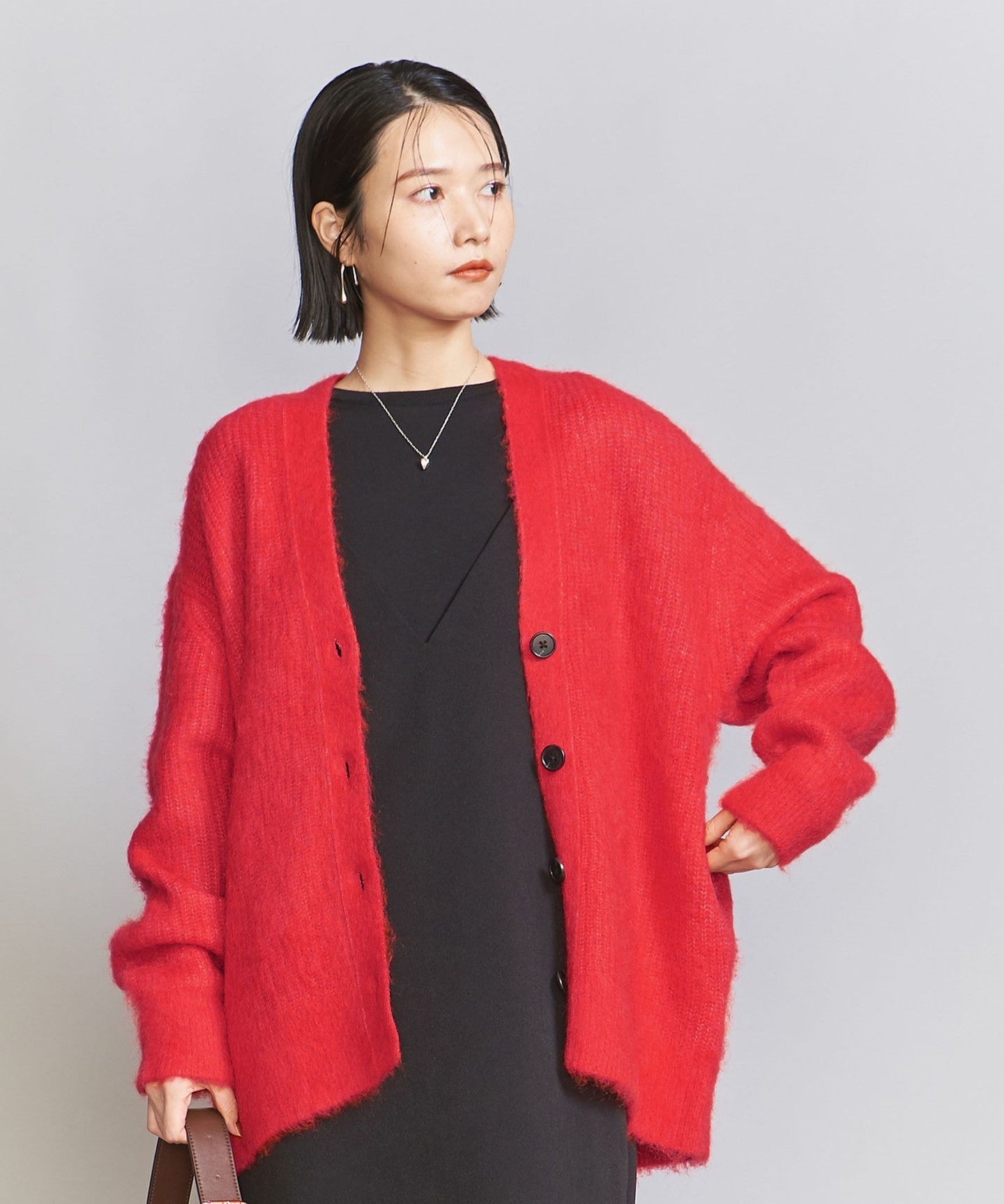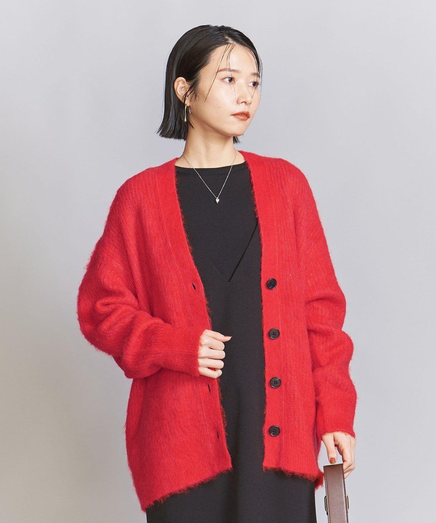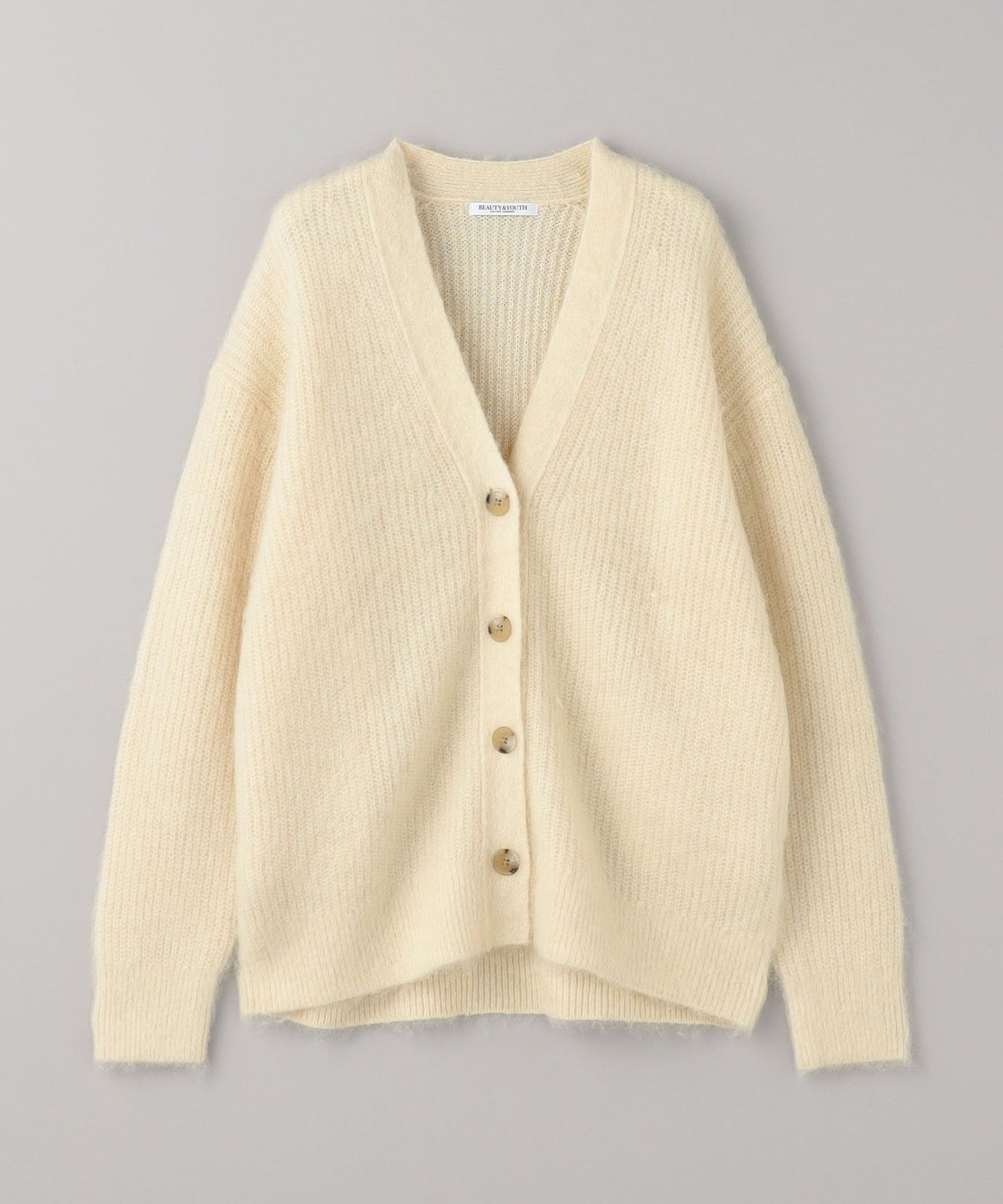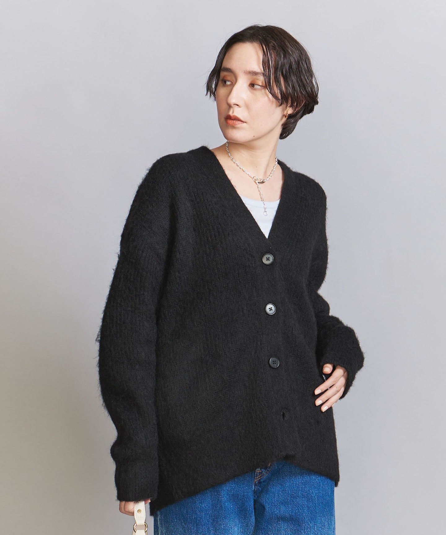 It is finished with a 5G rib knit using multiple strands of mohair-blend yarn.