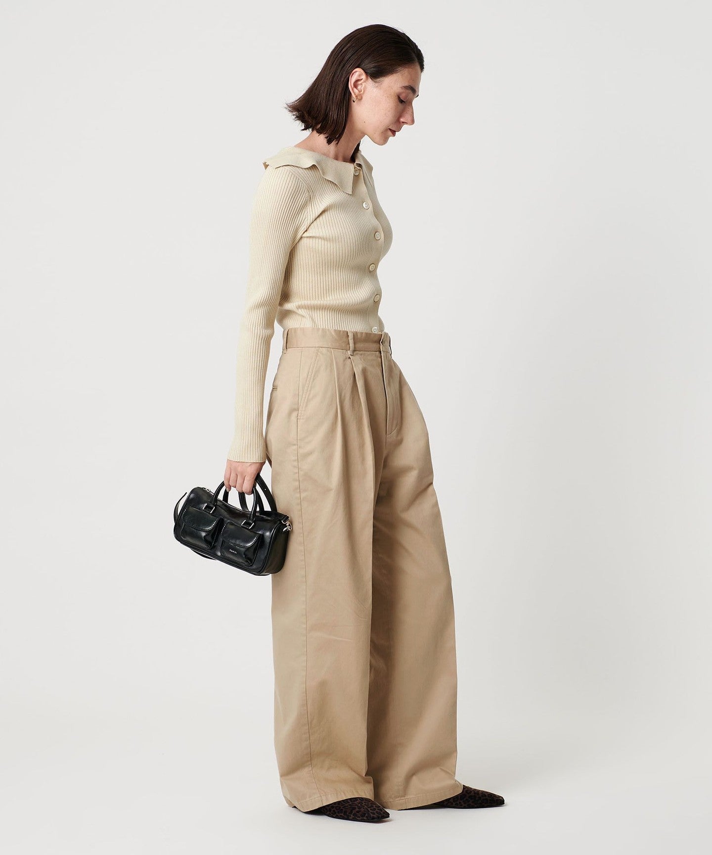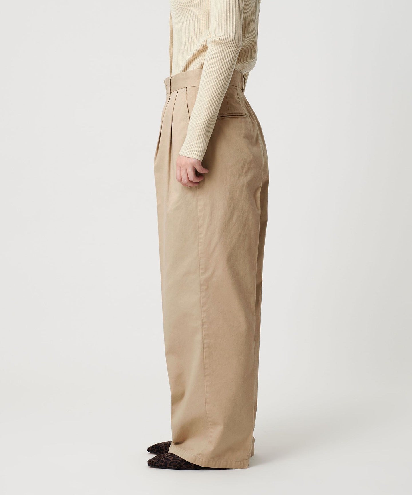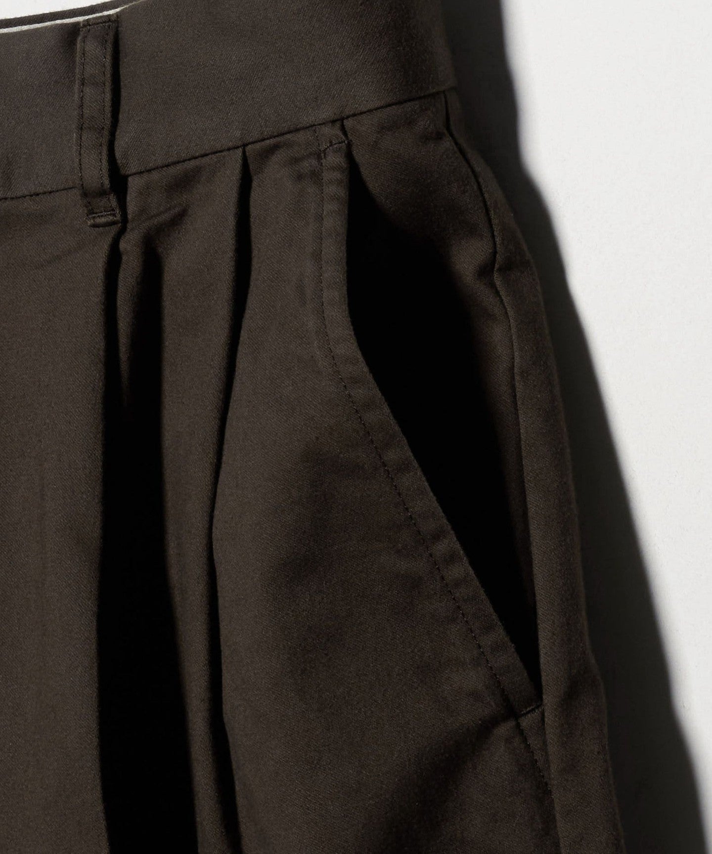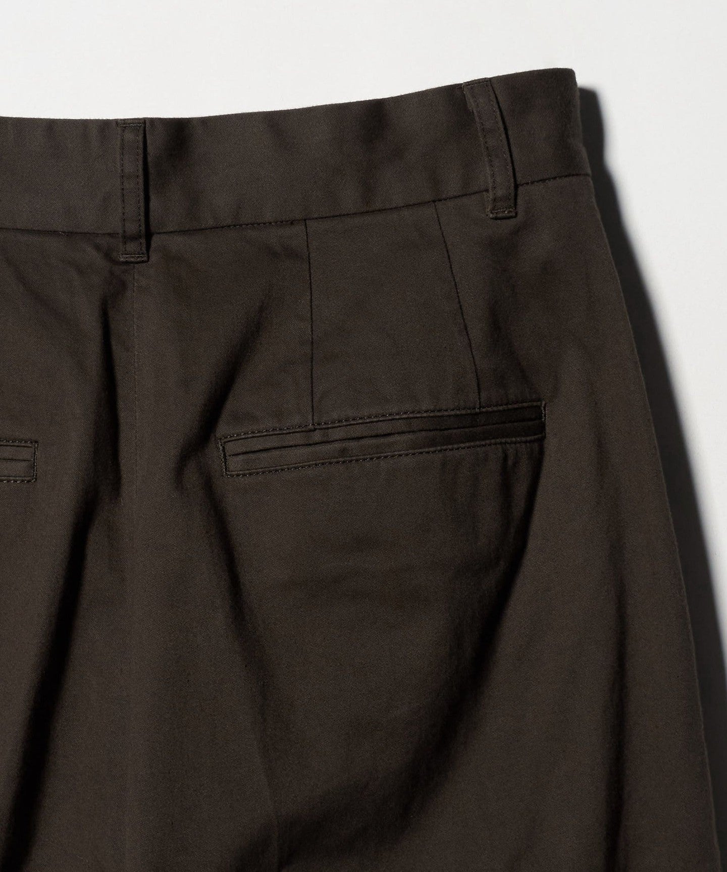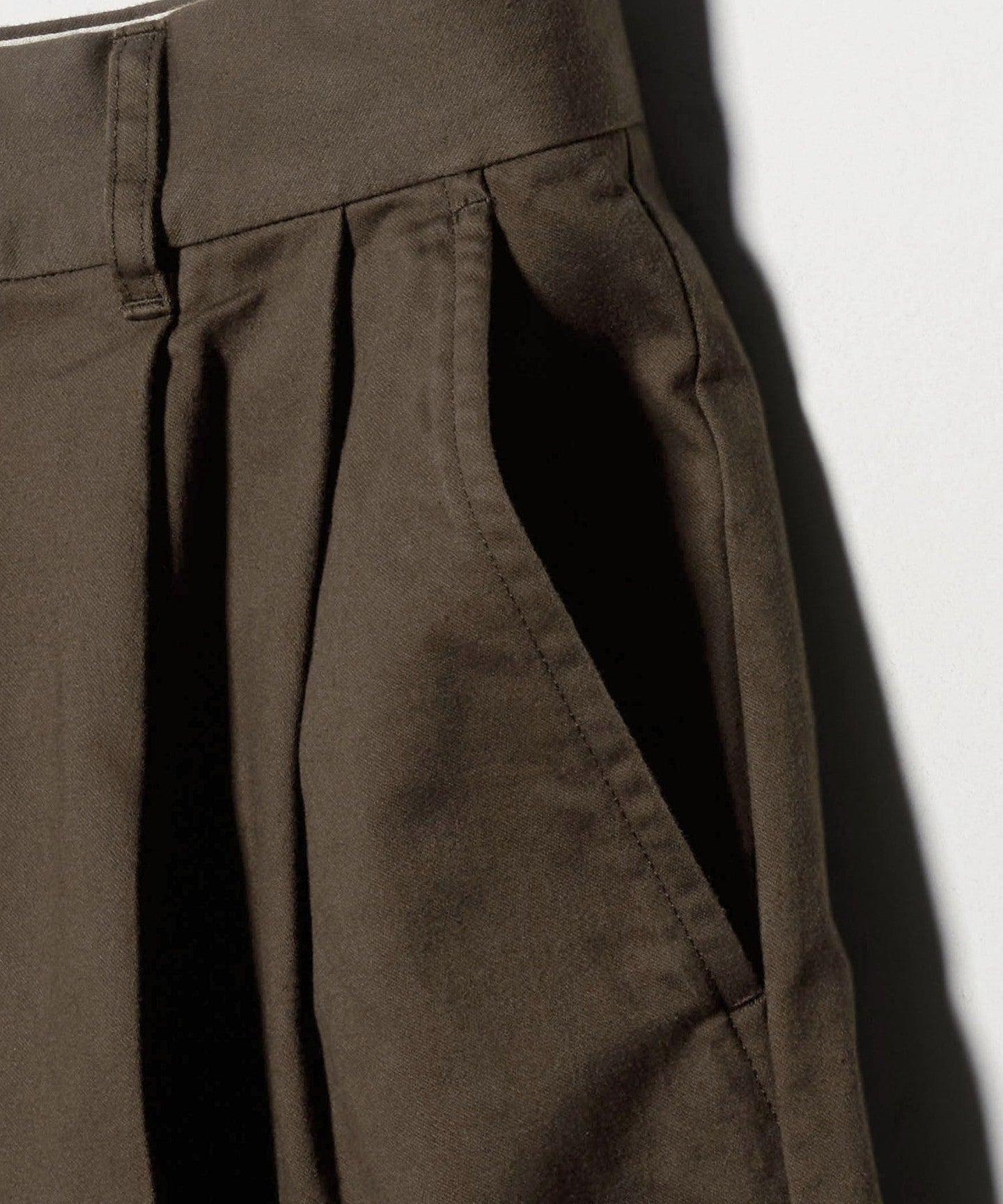 By adding two tucks and a center crease to the front, we have created a look that exudes an authentic mood.