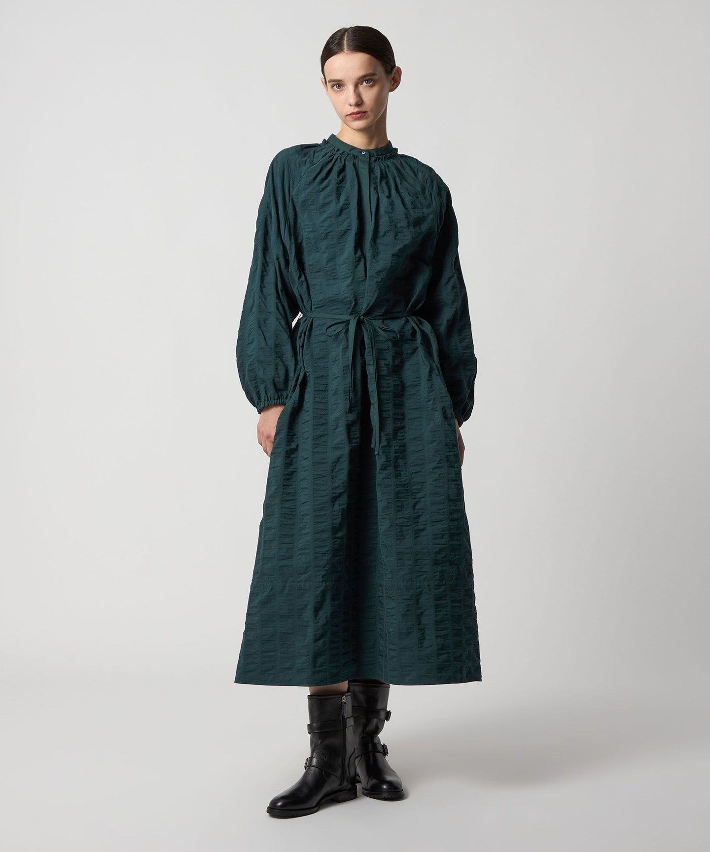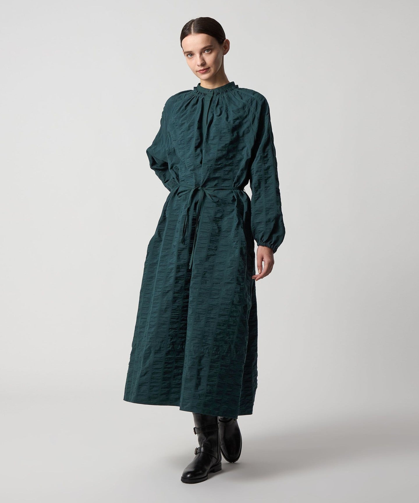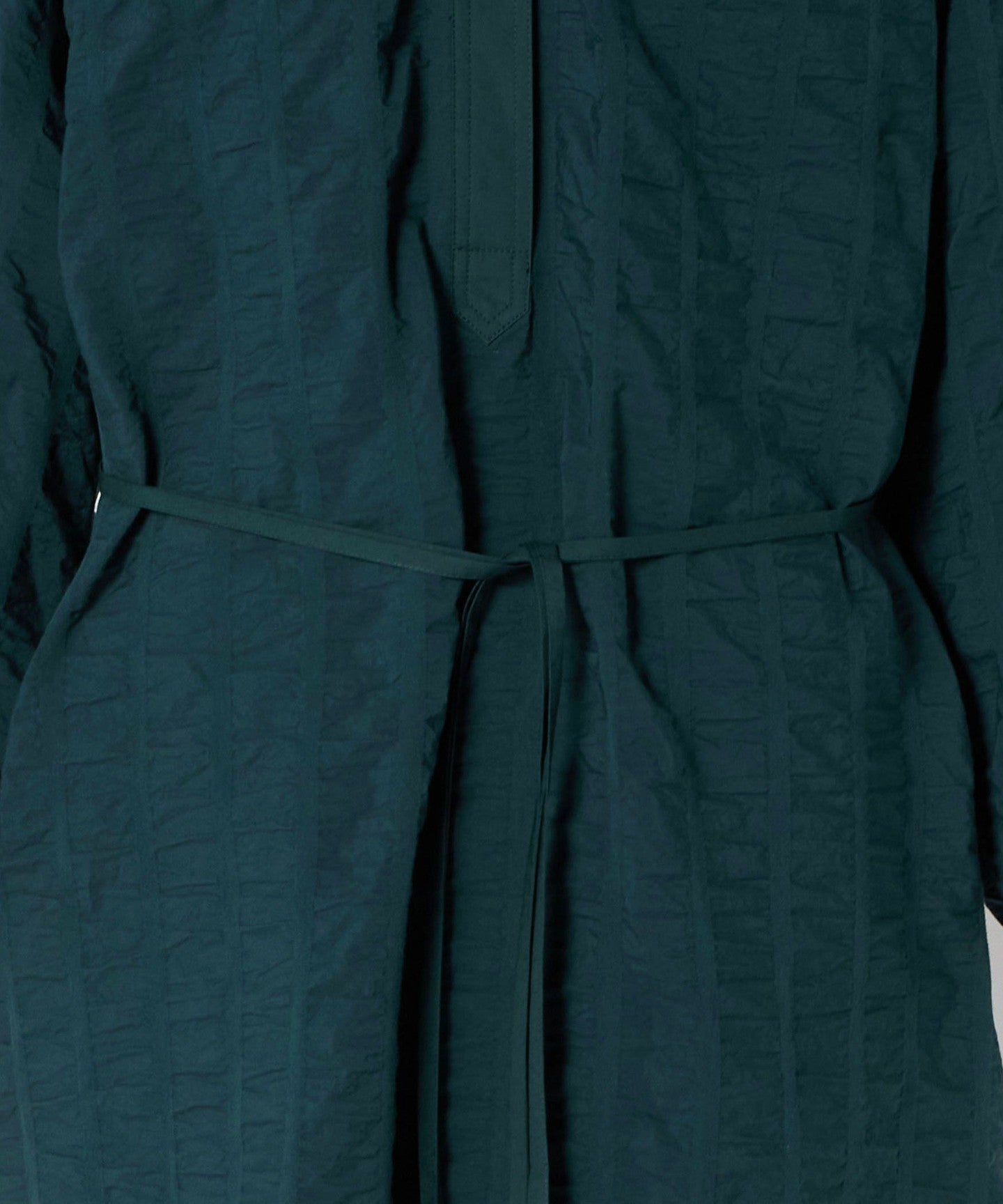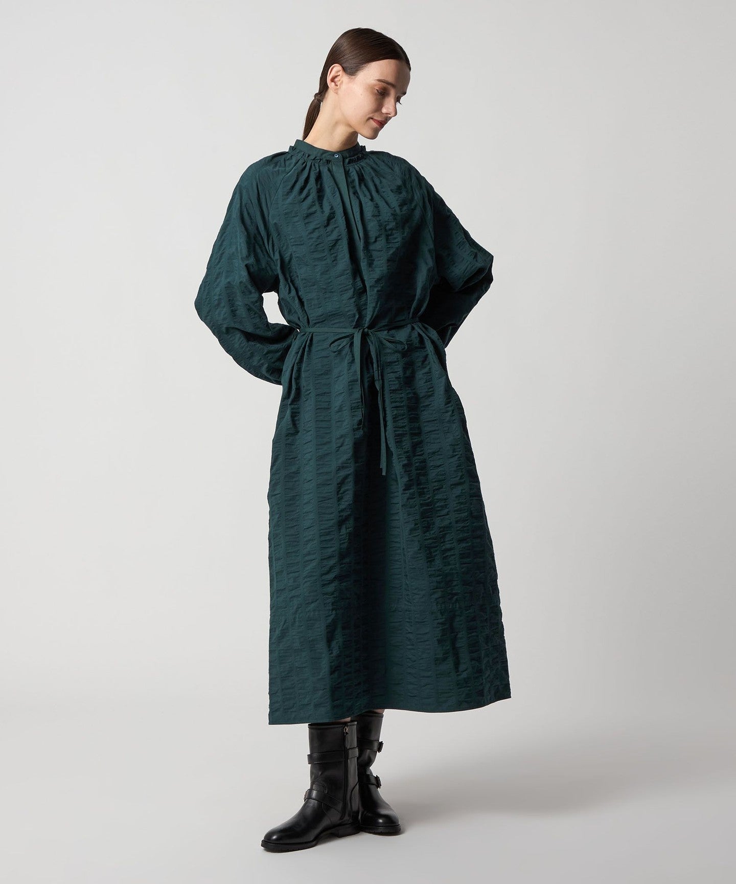 An oversized shirt dress with a clean band collar and a kaftan opening at the front for a relaxed look.