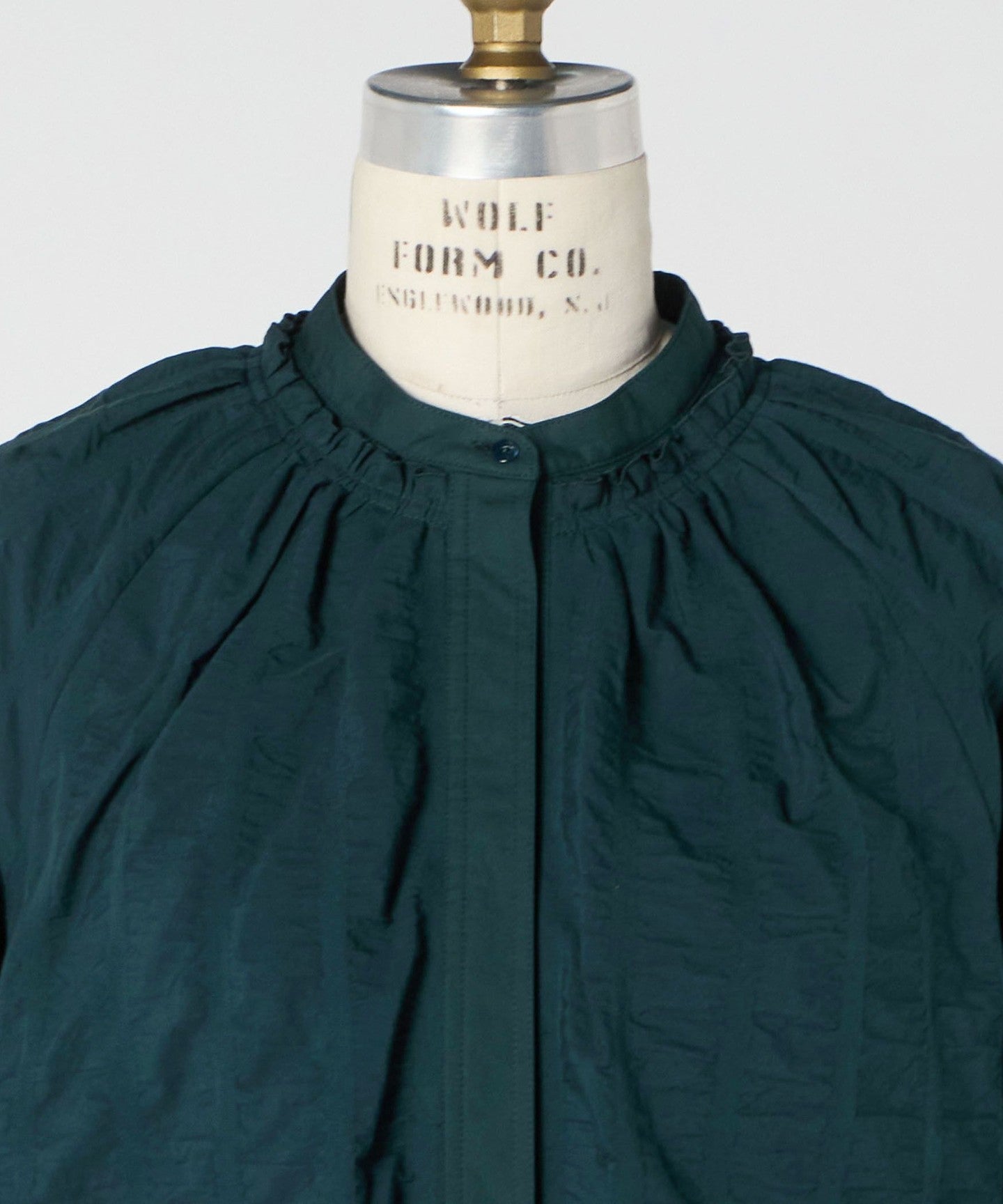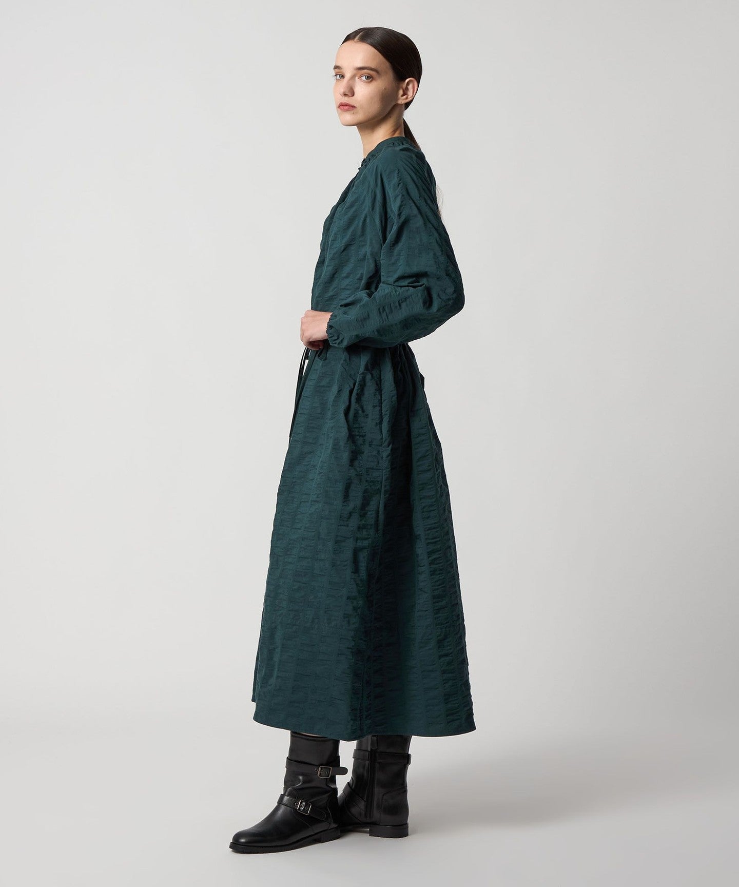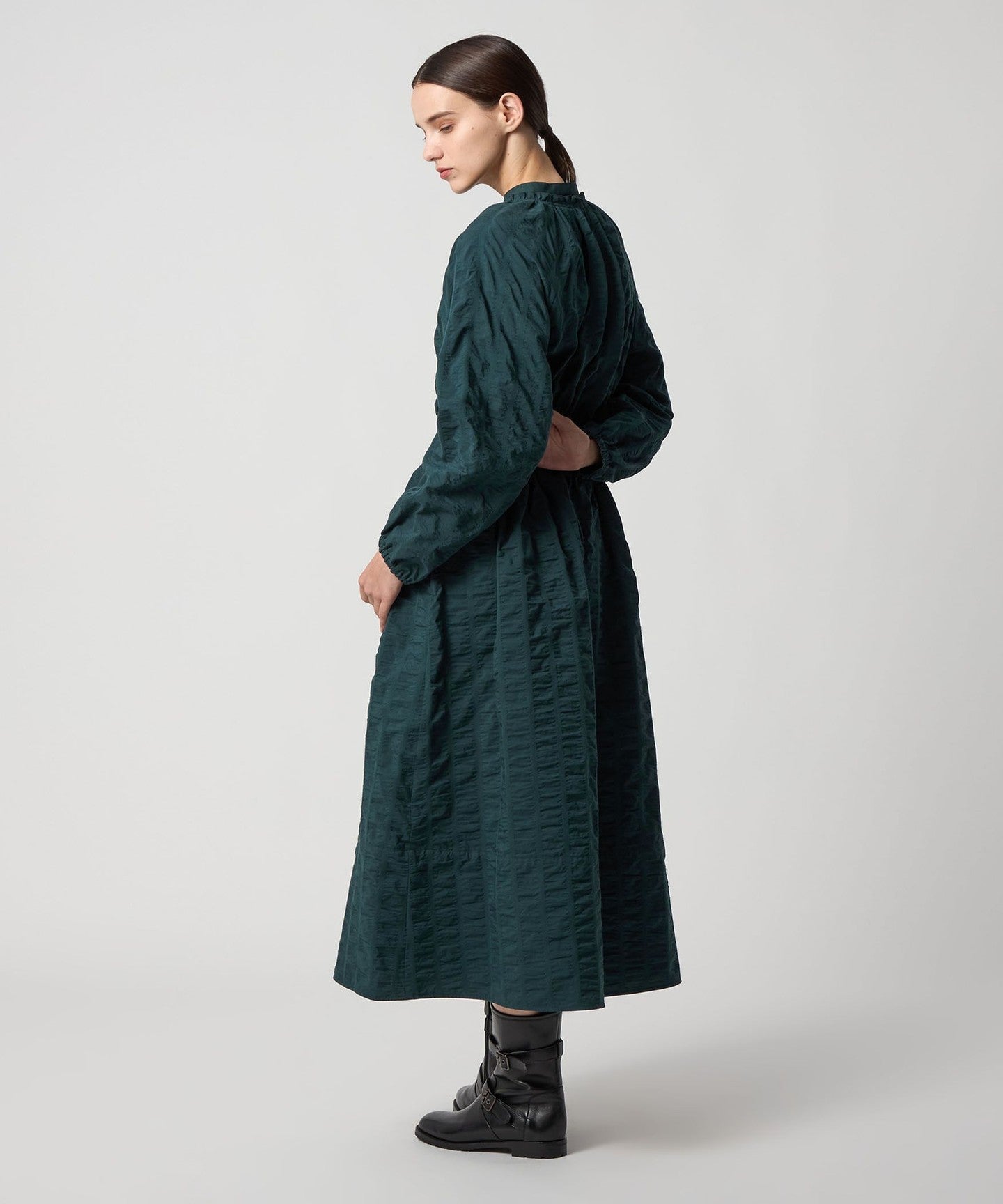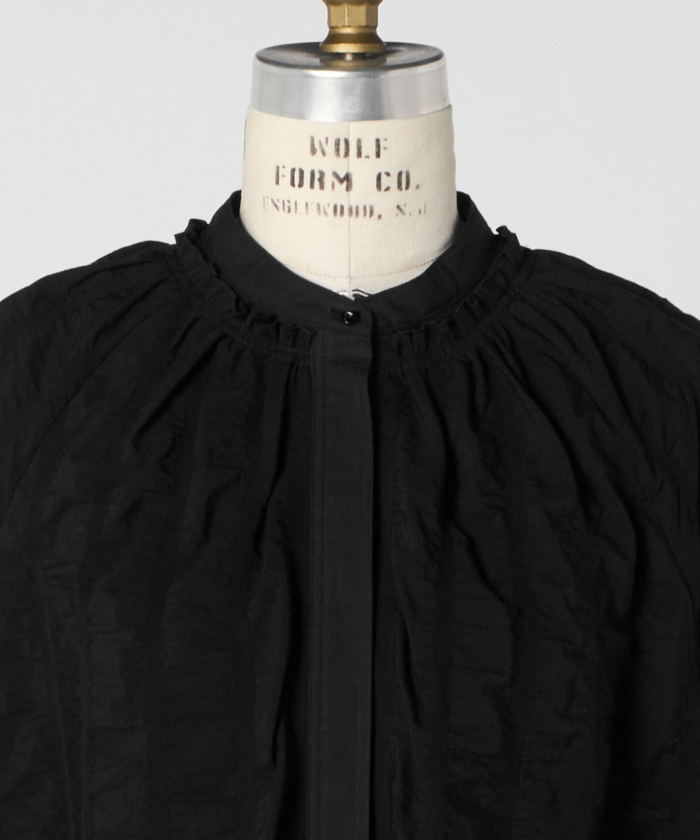 An oversized shirt dress with a clean band collar and a kaftan opening at the front for a relaxed look.