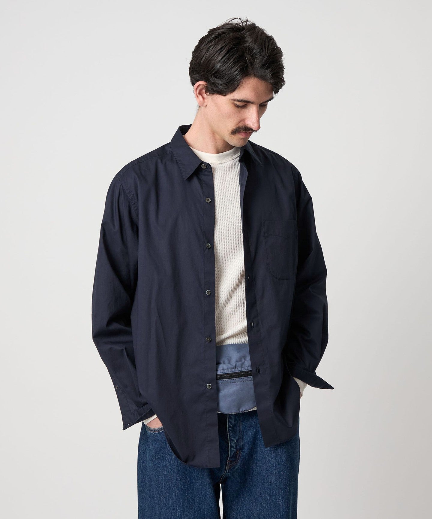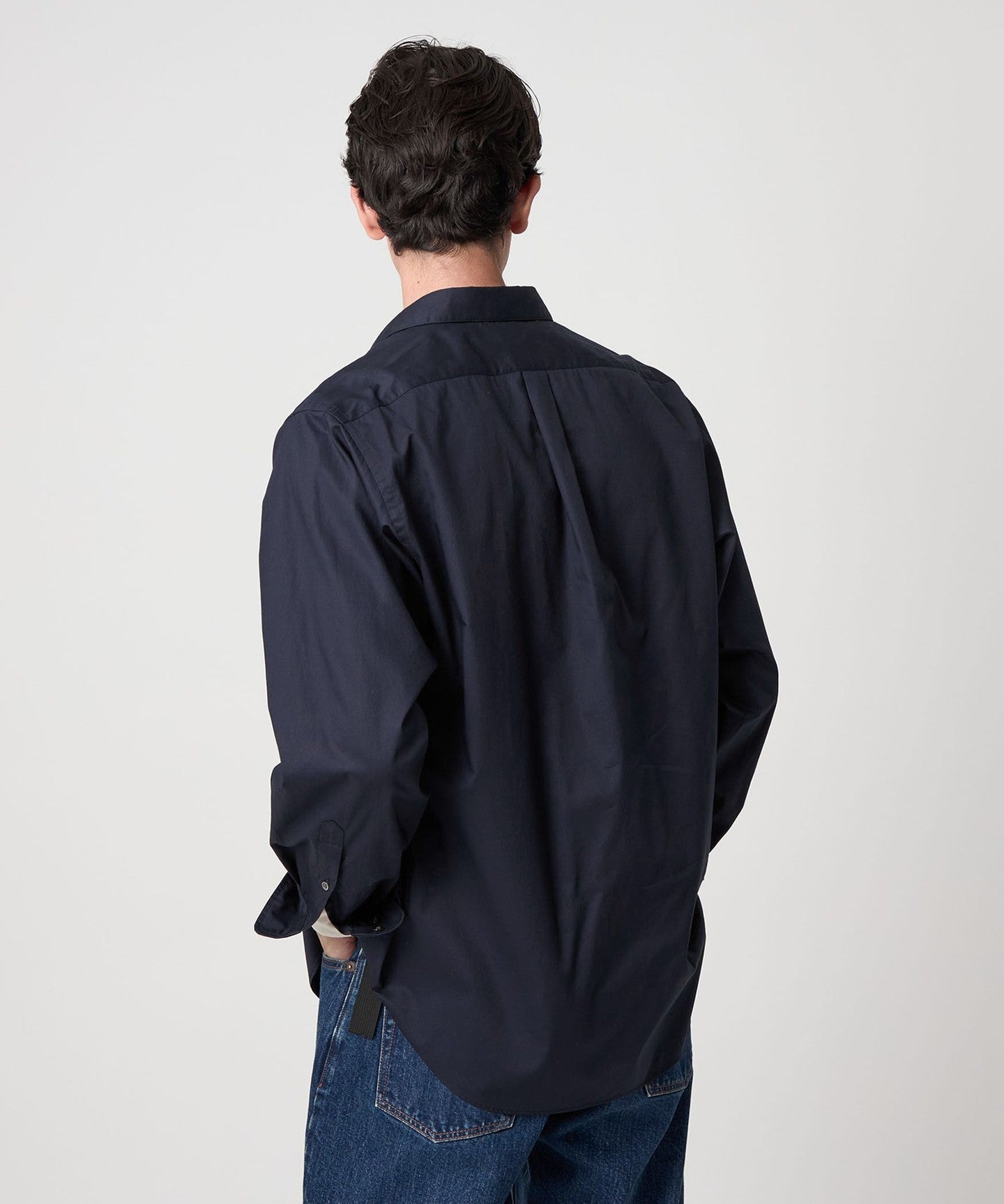 The elegant material and crisp collar give it a dressy look, while the washer finish gives it a casual impression.