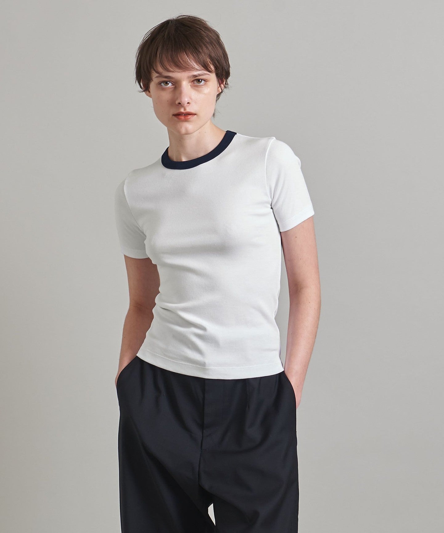 A ringer T-shirt that adds an accent to your outfit.