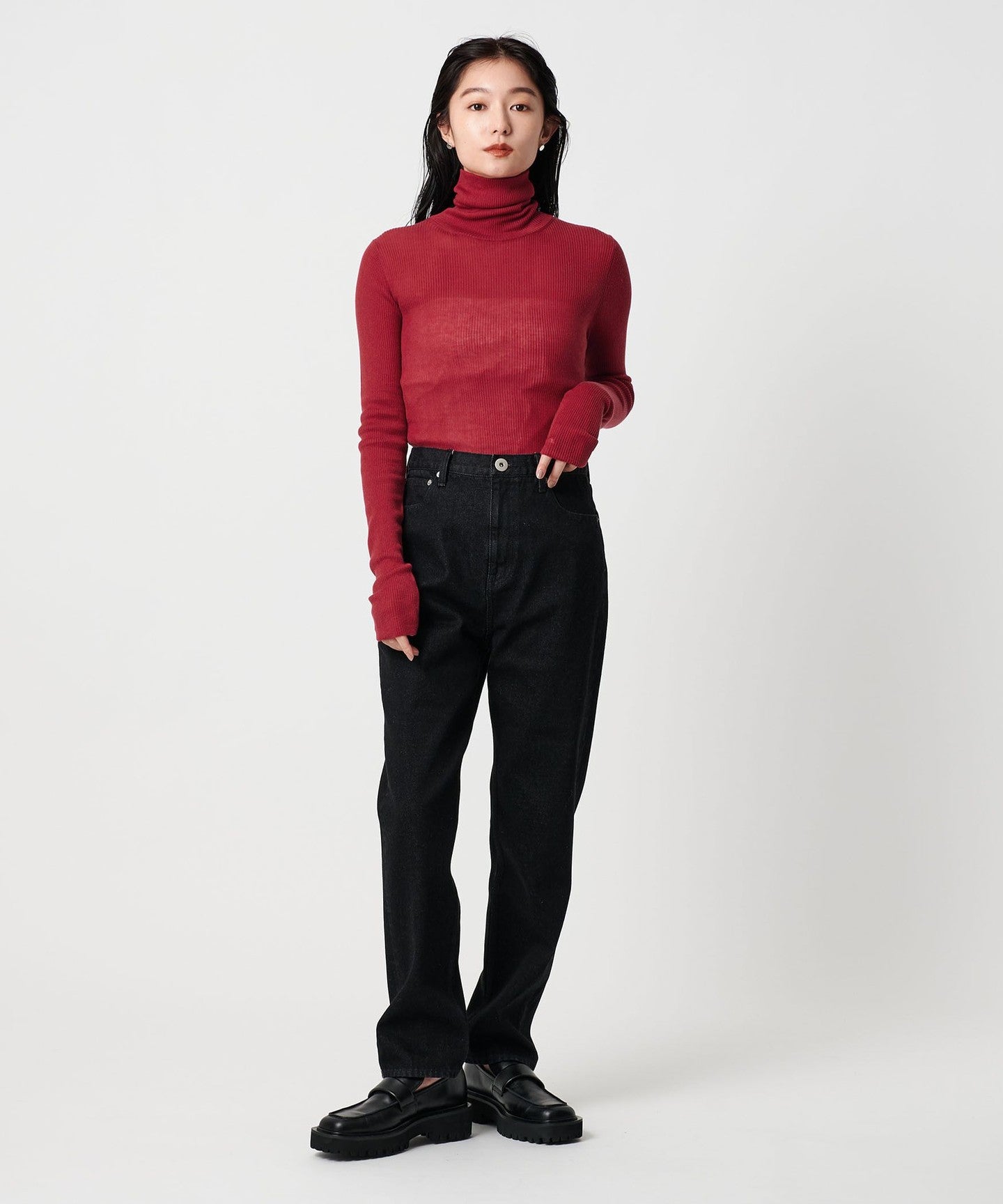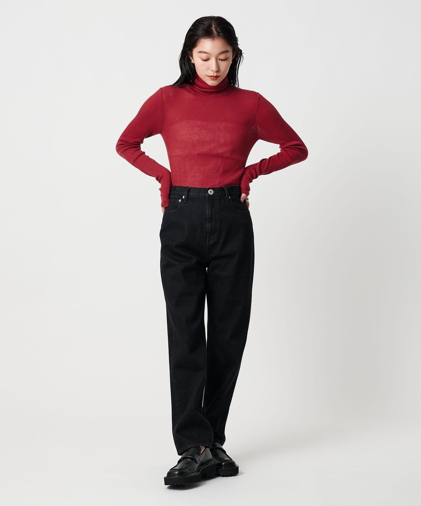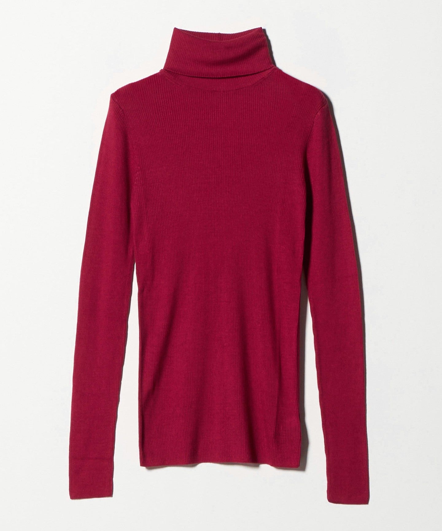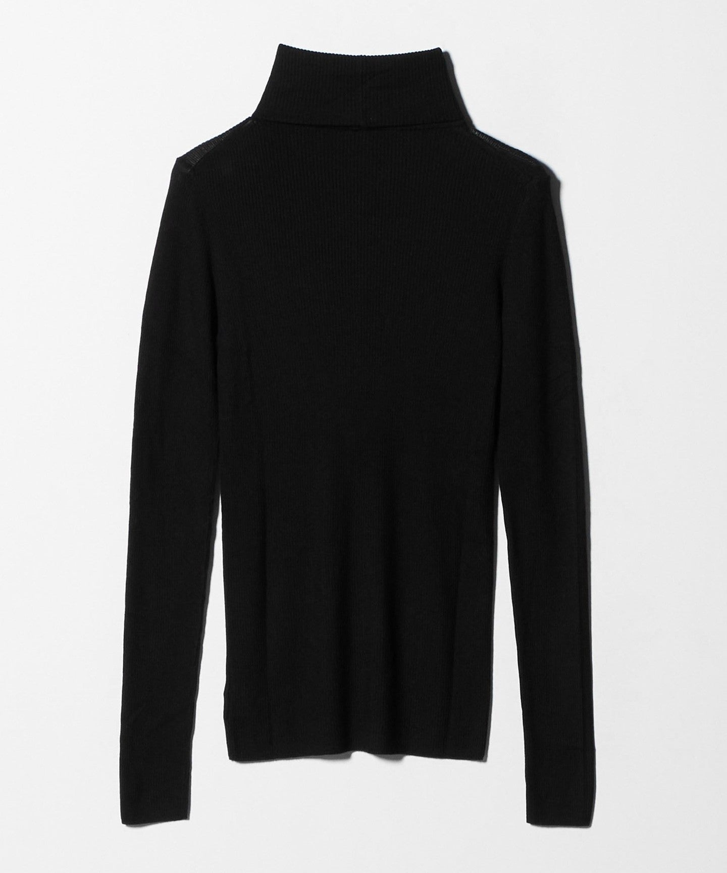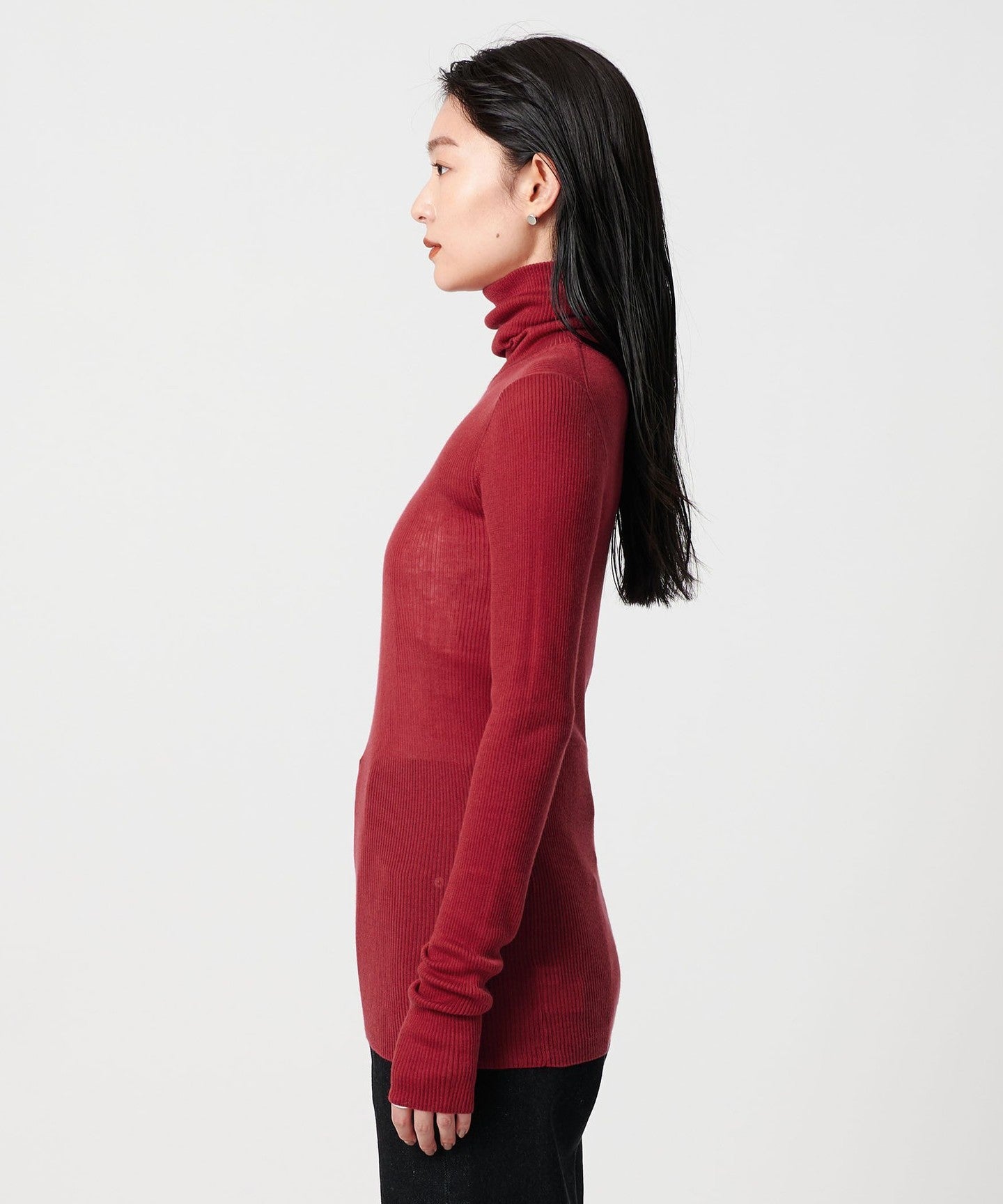 This ribbed turtleneck knit has just the right amount of transparency, adding a touch of lightness to your styling.