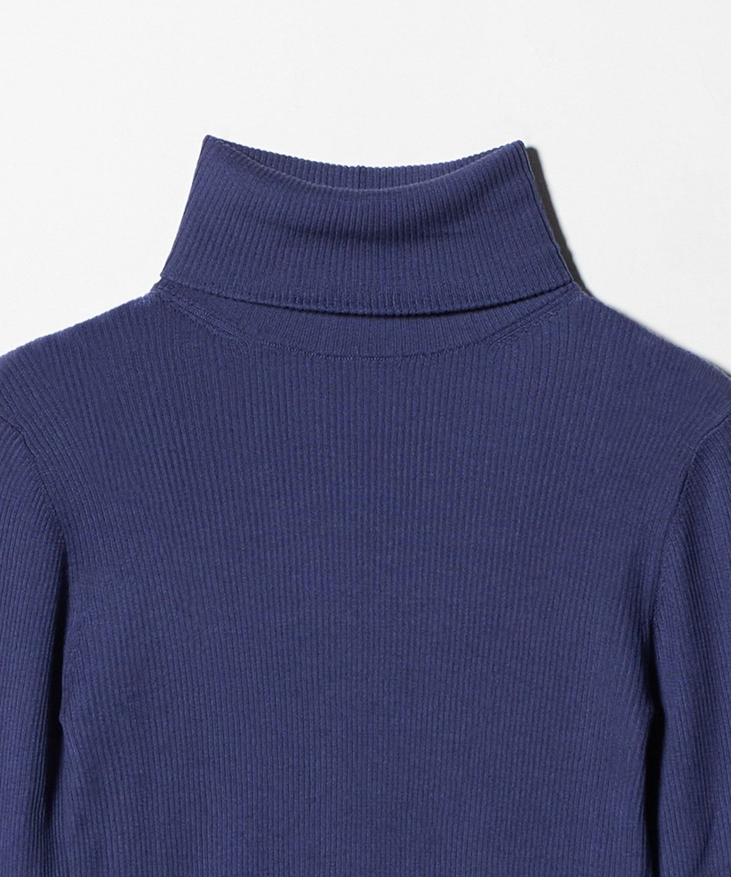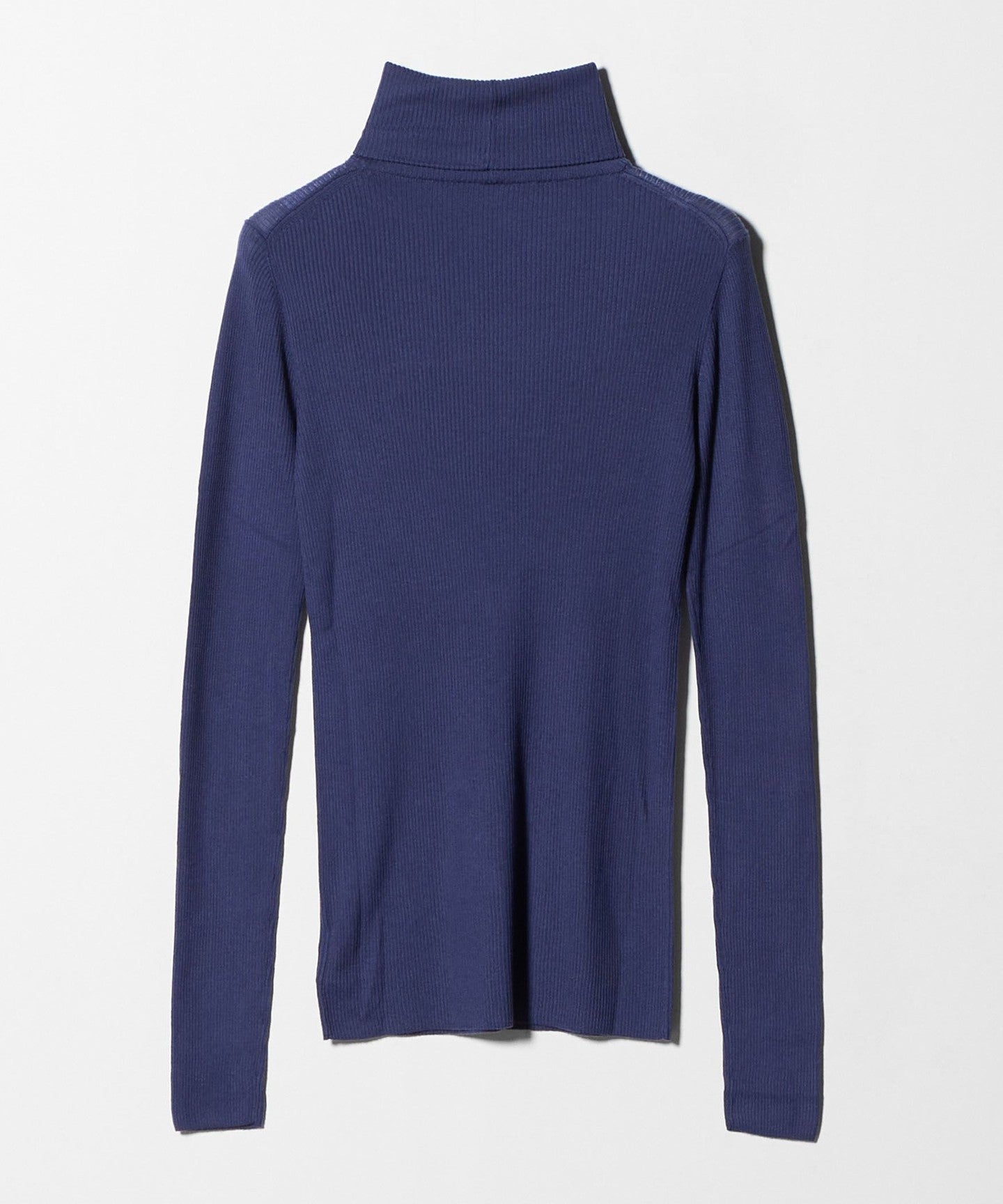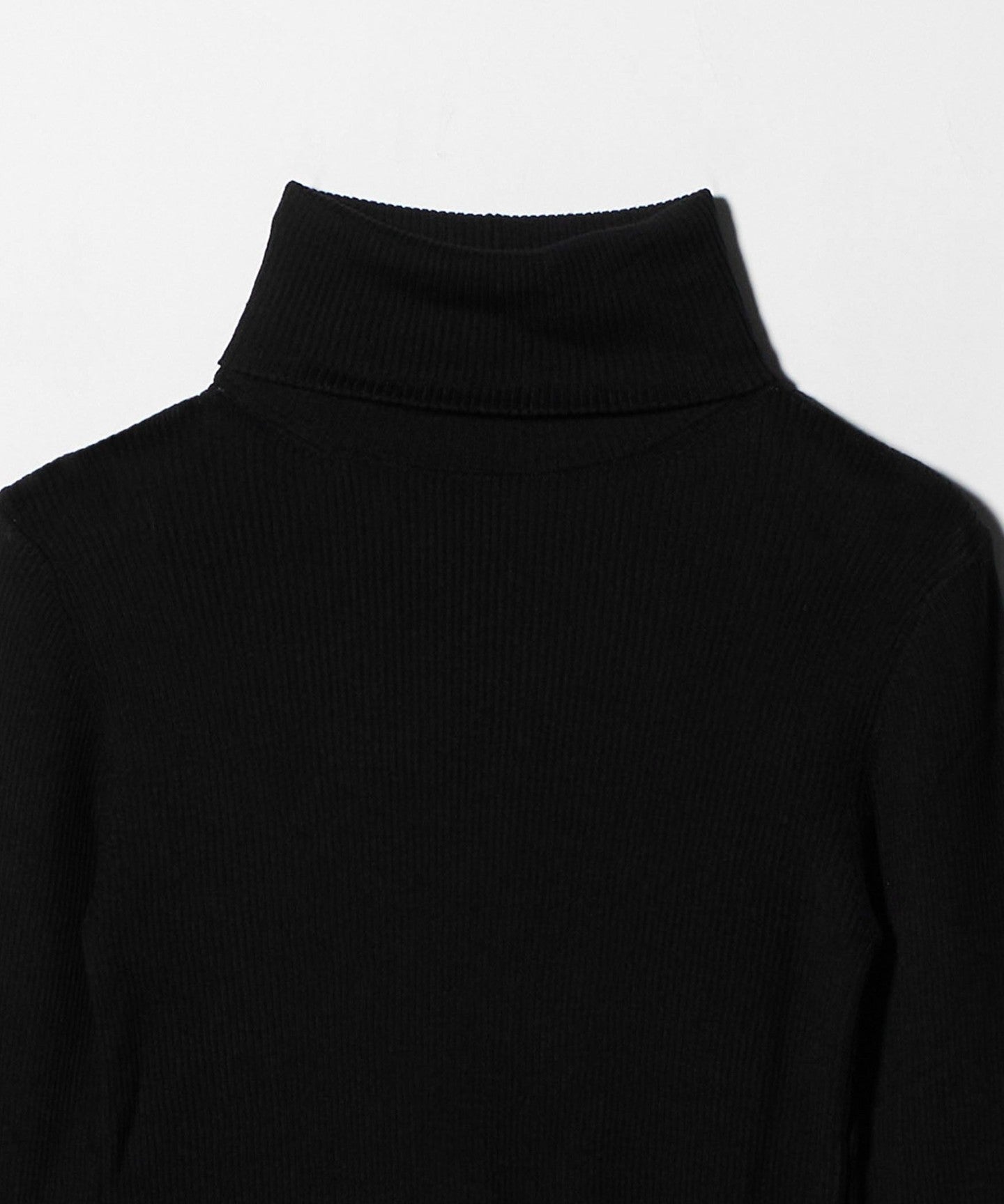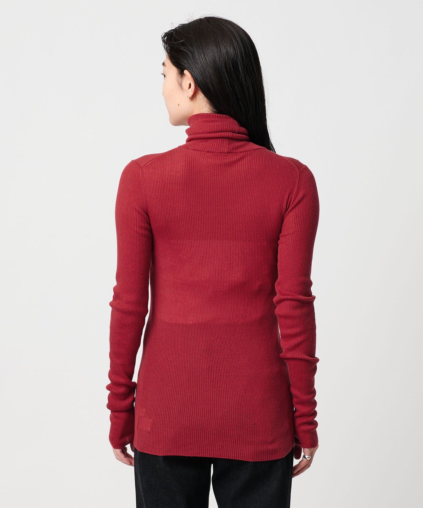 This ribbed turtleneck knit has just the right amount of transparency, adding a touch of lightness to your styling.