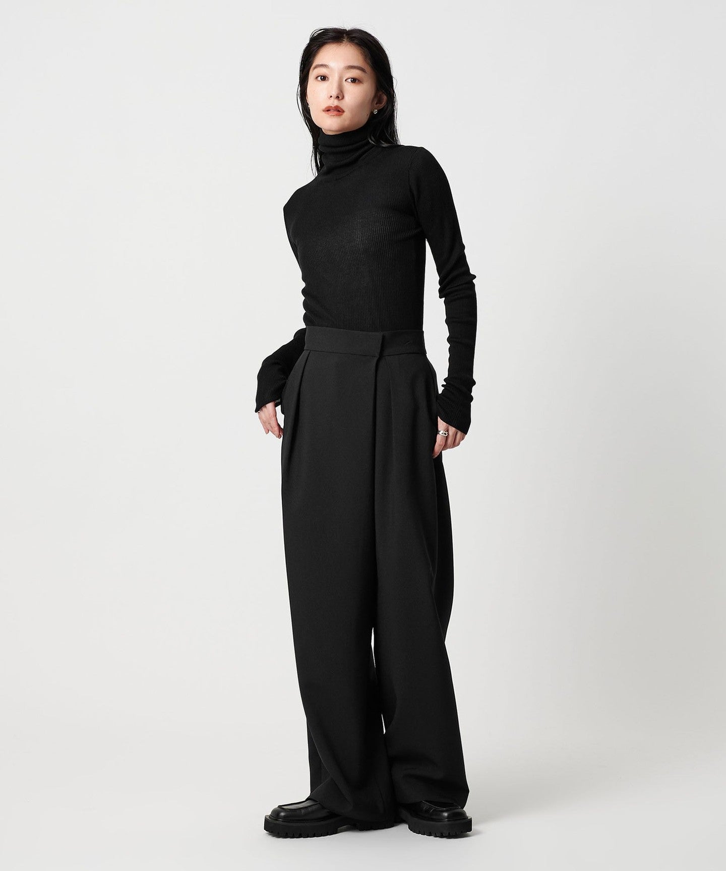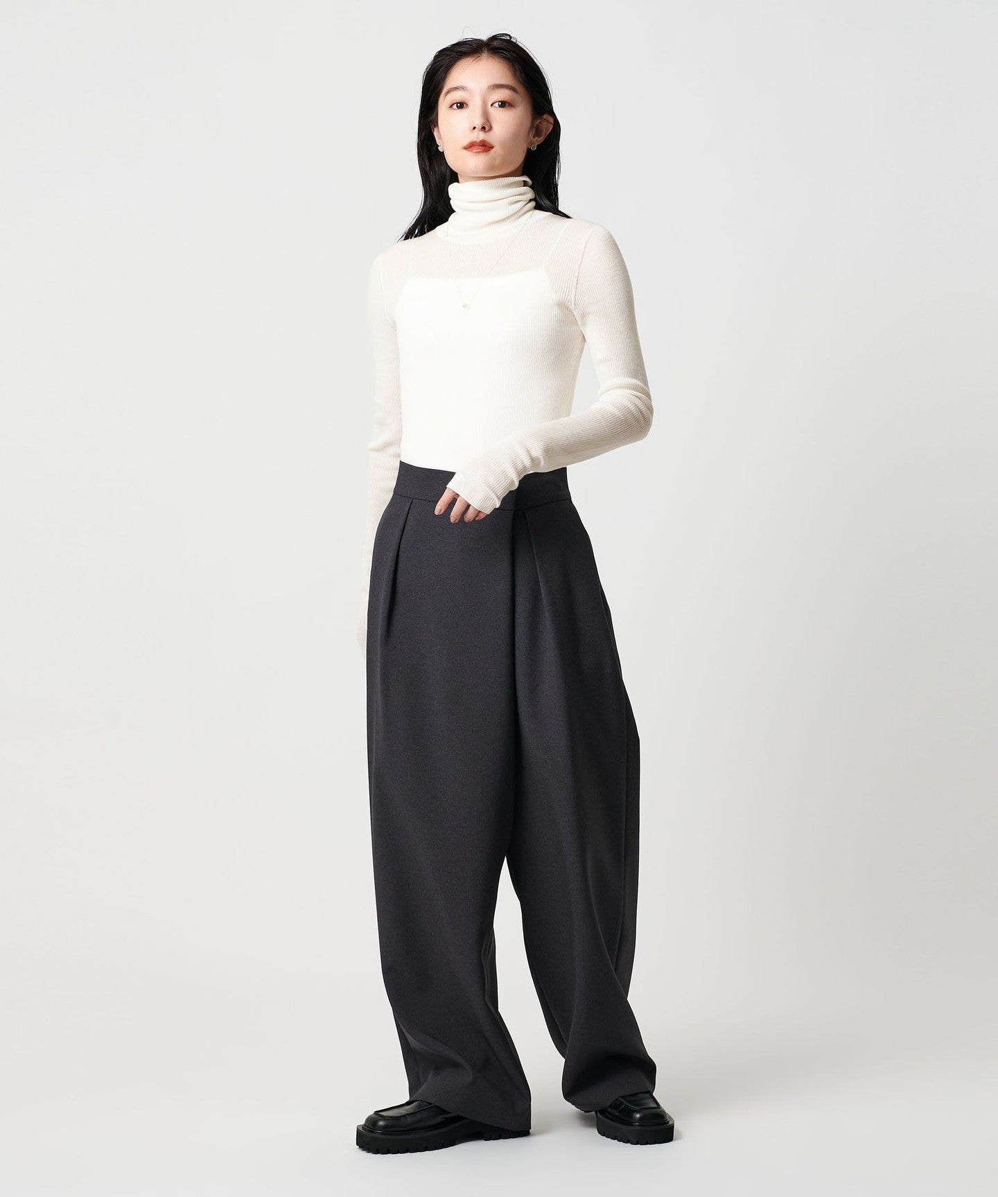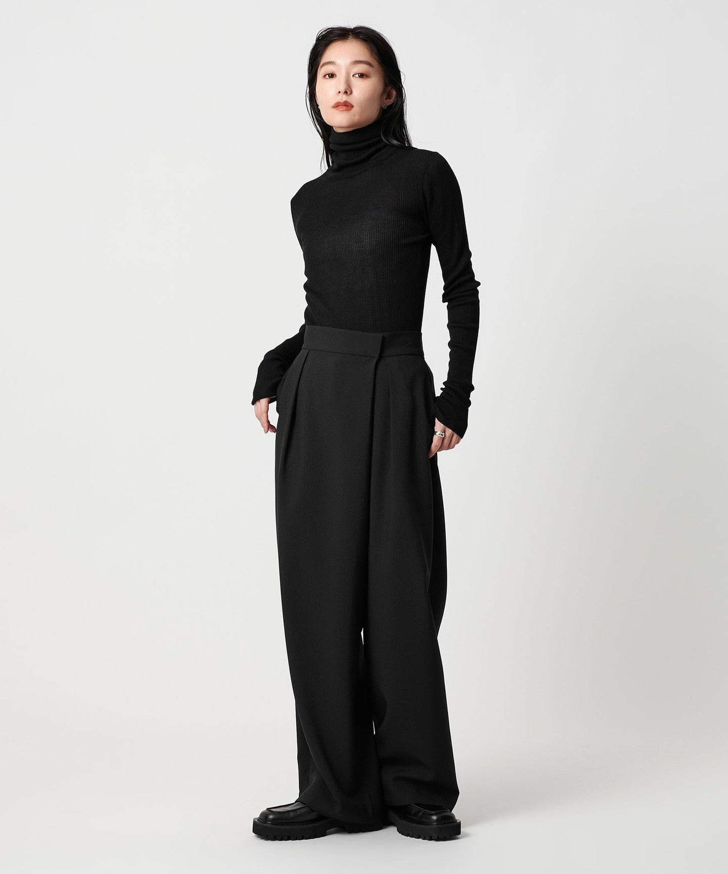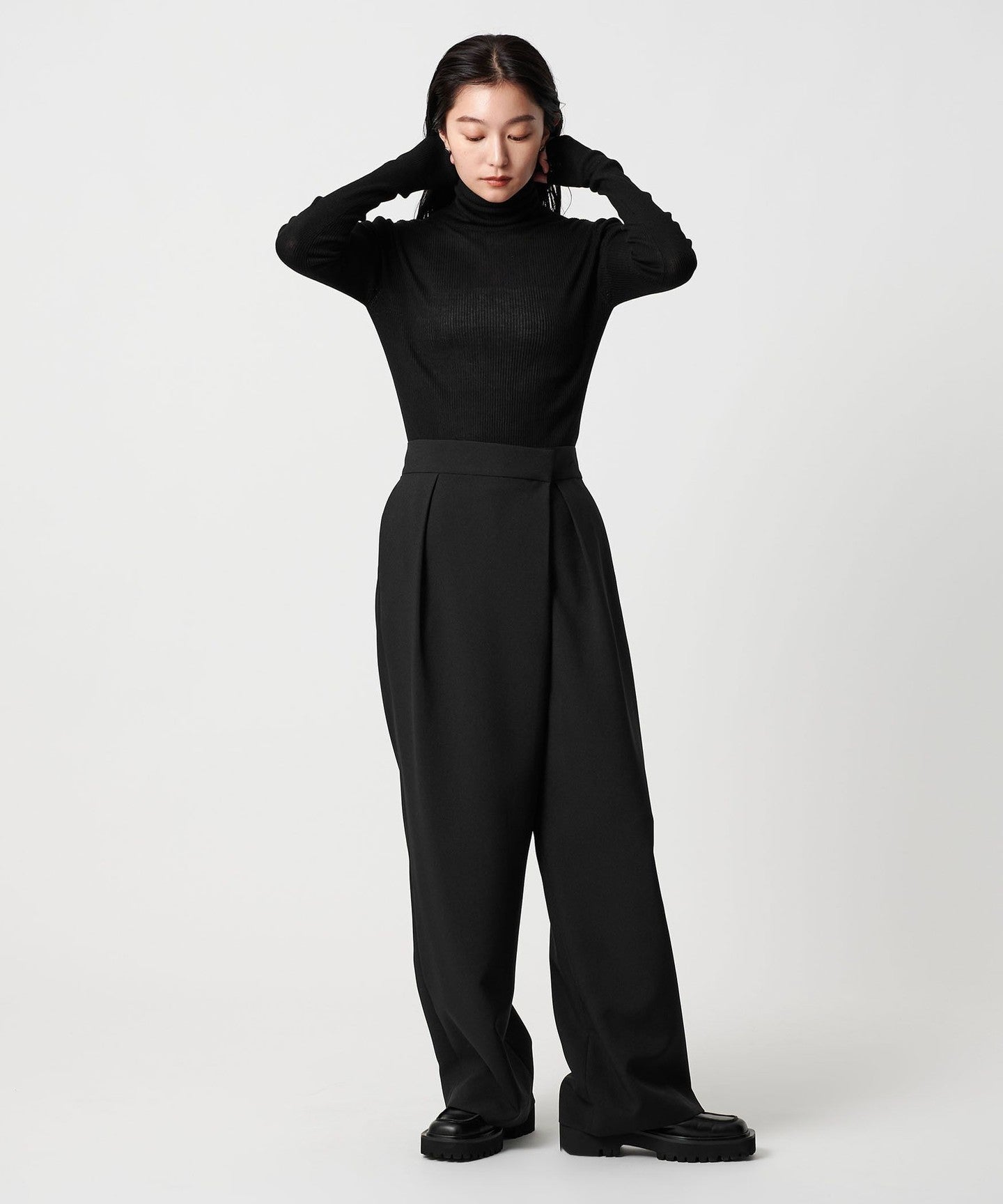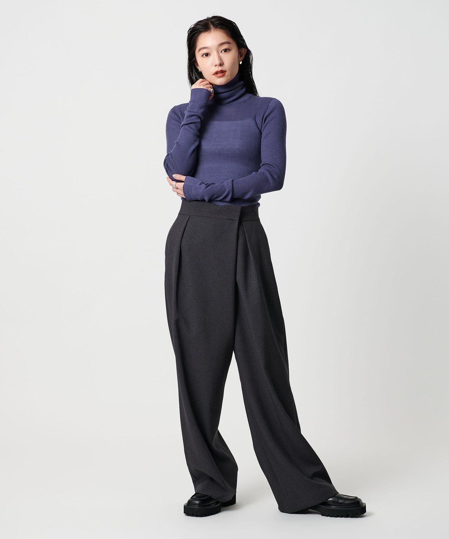 This ribbed turtleneck knit has just the right amount of transparency, adding a touch of lightness to your styling.