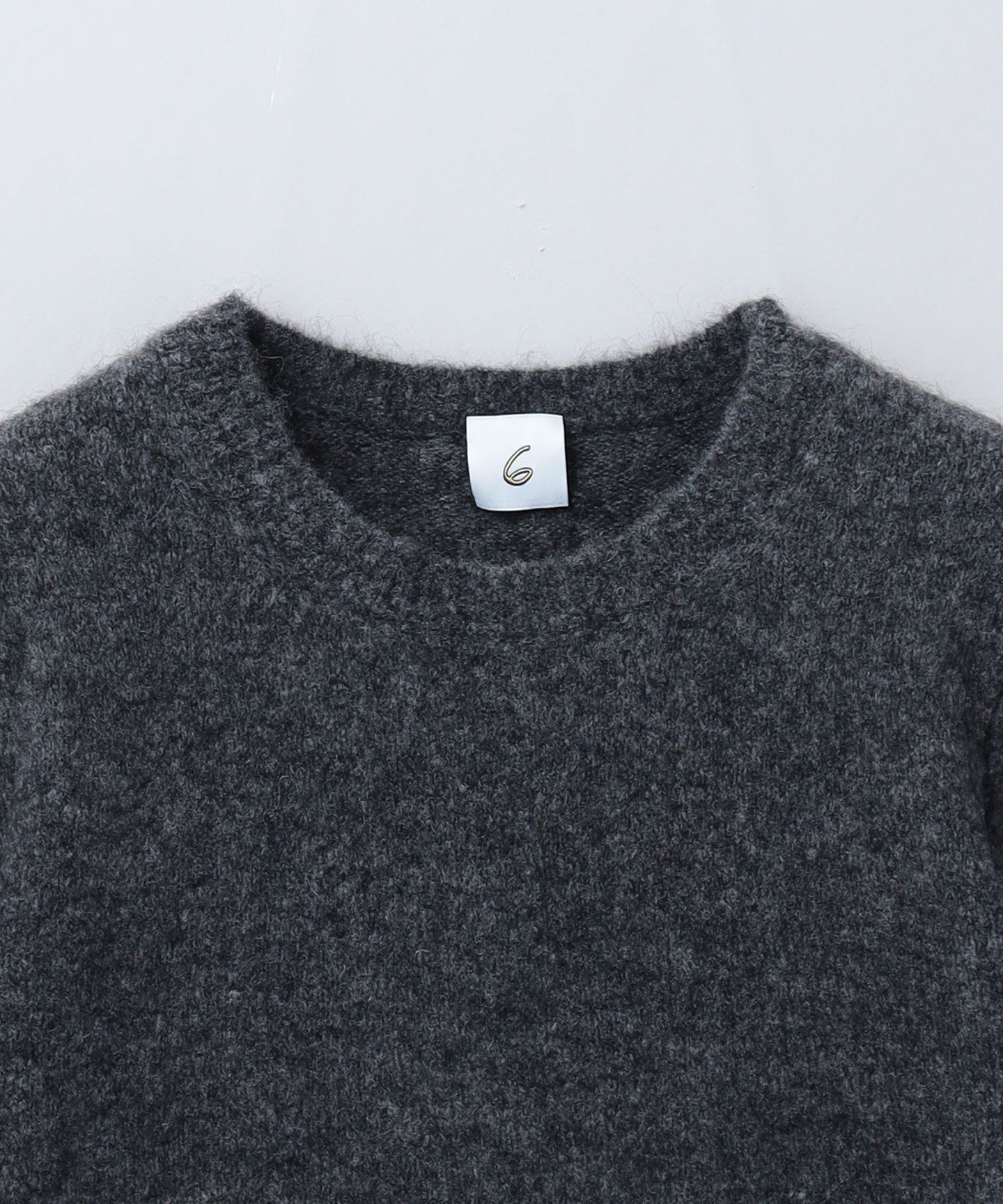 <6(ROKU)>Alpaca wool slit crew neck knit pullover