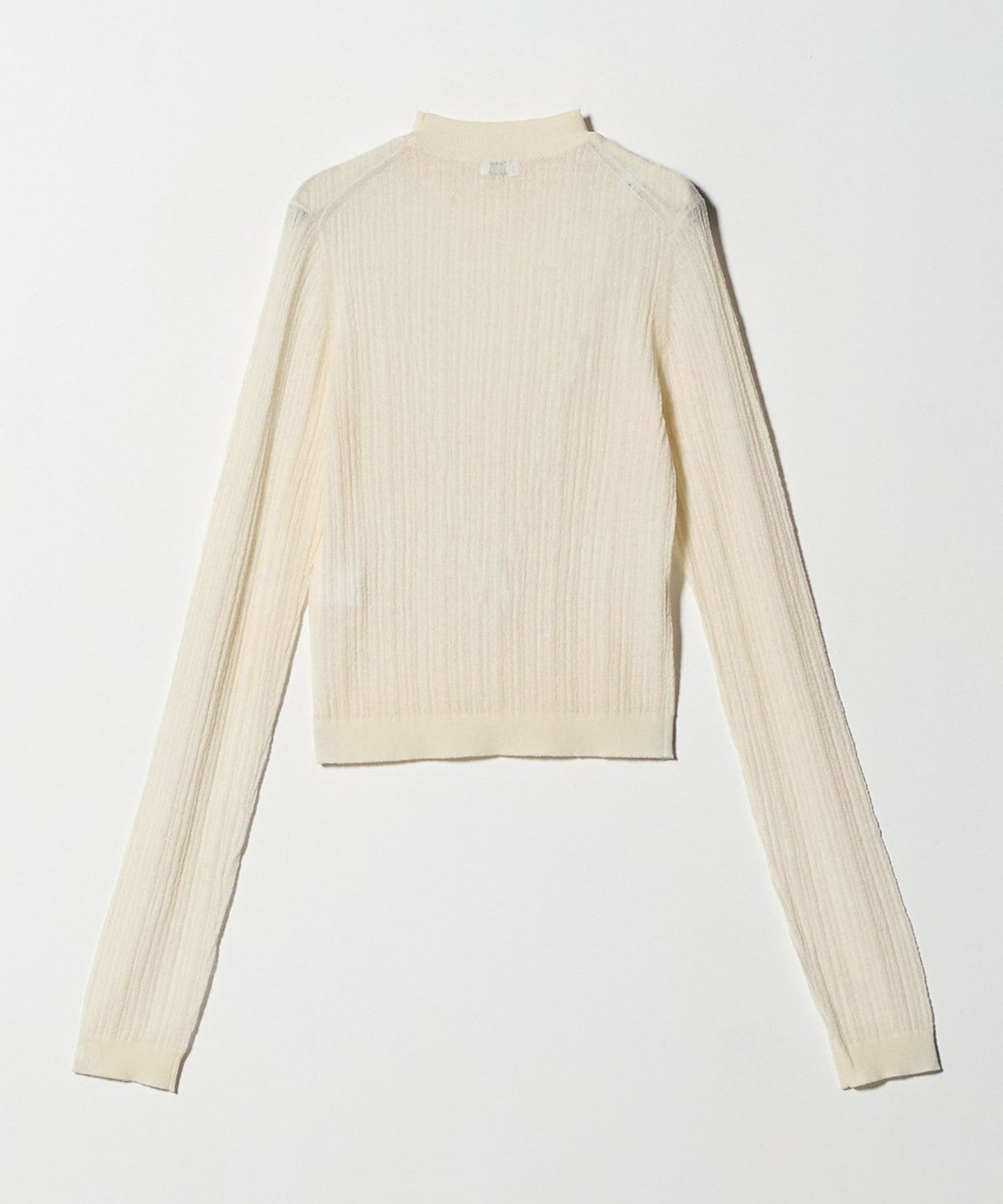 This knit pullover features a tight-fitting silhouette and a delicate, sheer look that creates a nuanced look. Crafted from wool knit yarn with a distinctively textured texture, the tightly twisted design feels comfortable against the skin. The high neckline gives it a dignified look, and the sheer texture creates a beautiful design that harmonizes beautifully with it. It pairs well with traditional denim or even hard-wearing leather bottoms. The carefully balanced design brings out a feminine mood, creating a subtle yet striking style.