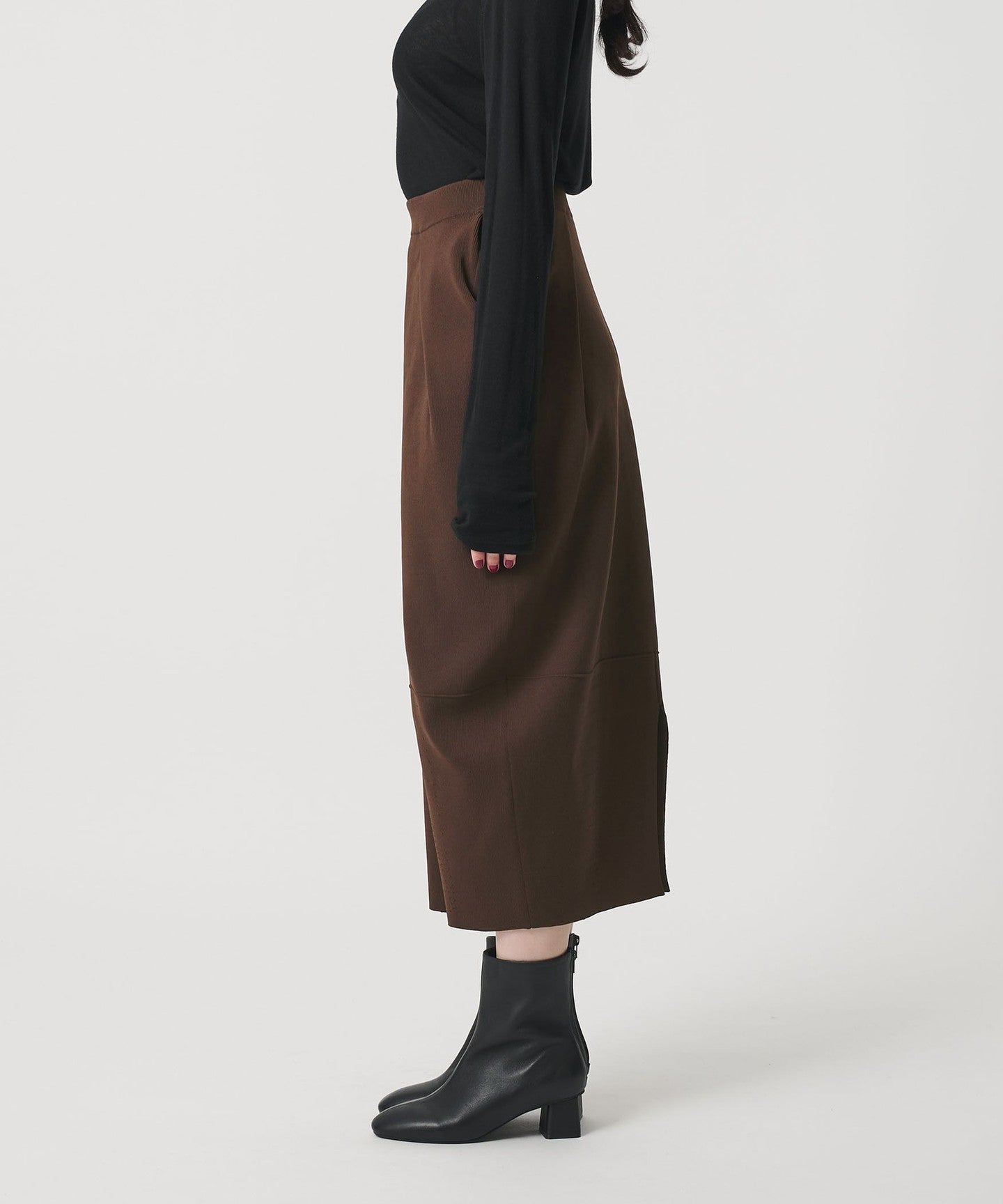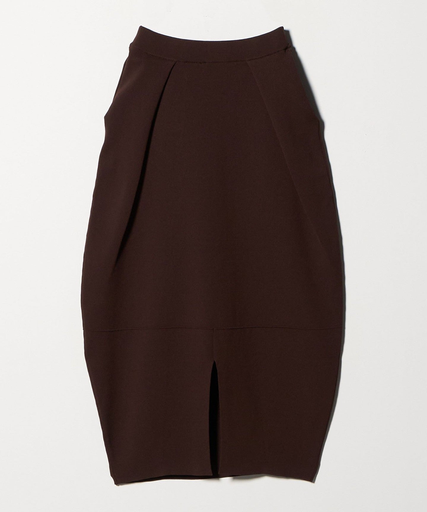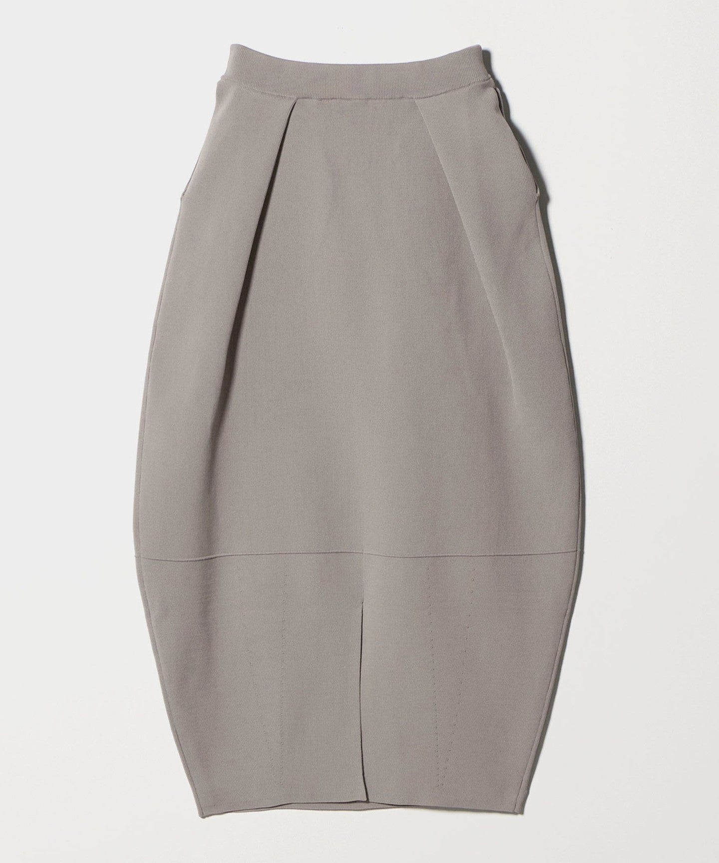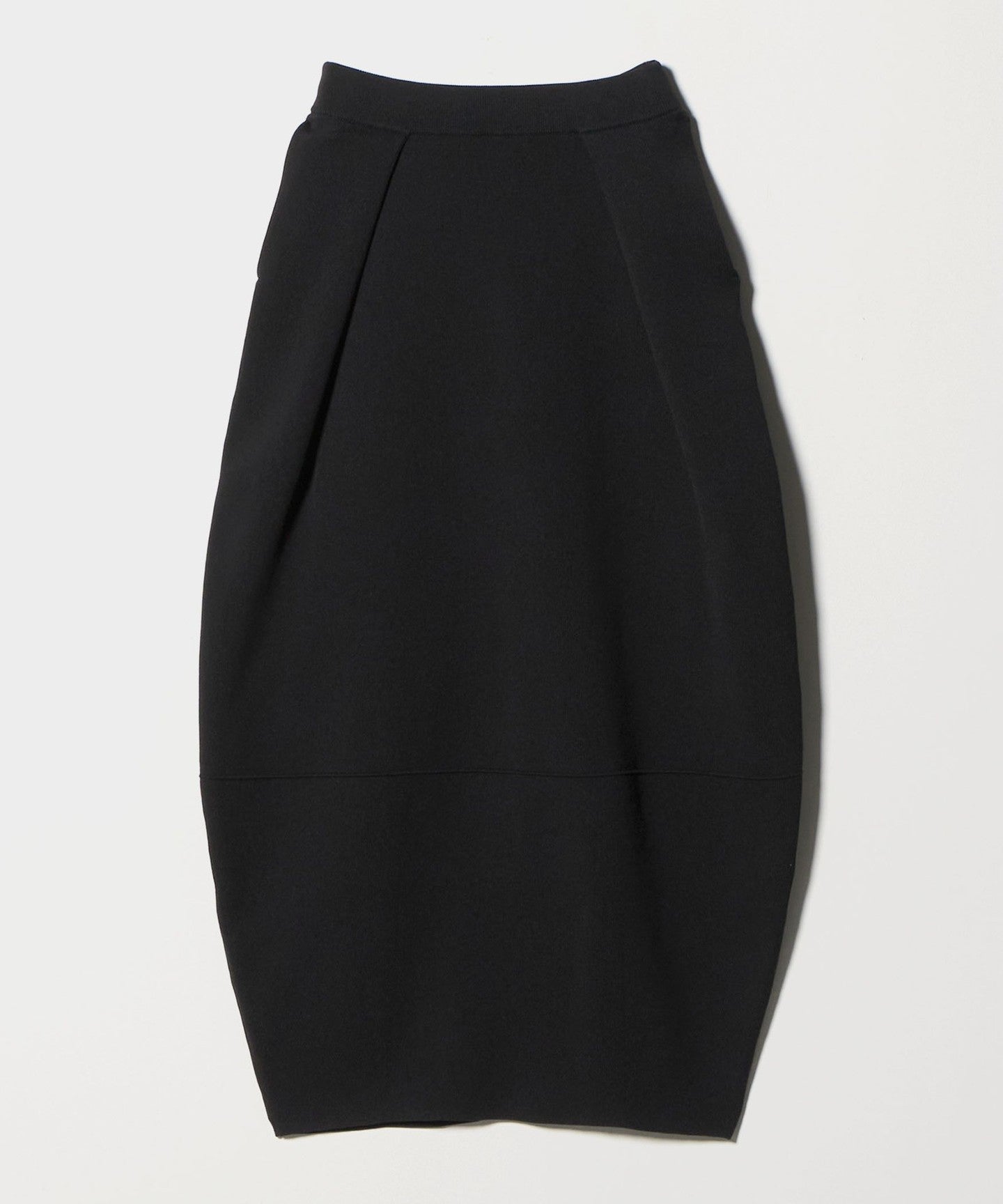 A cocoon silhouette skirt made from plating knit with an elegant luster and firmness.