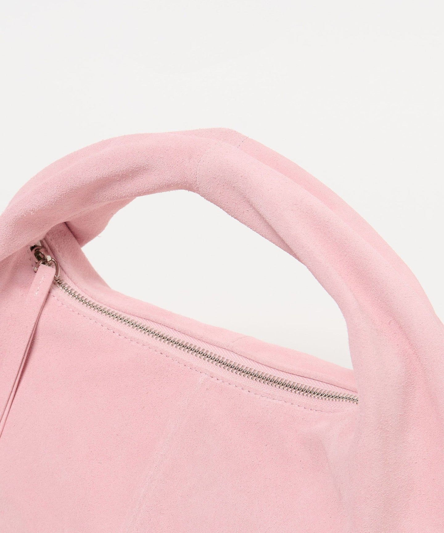 The black version uses smooth leather, while the pink version uses suede, giving the bag a completely different look depending on the color.