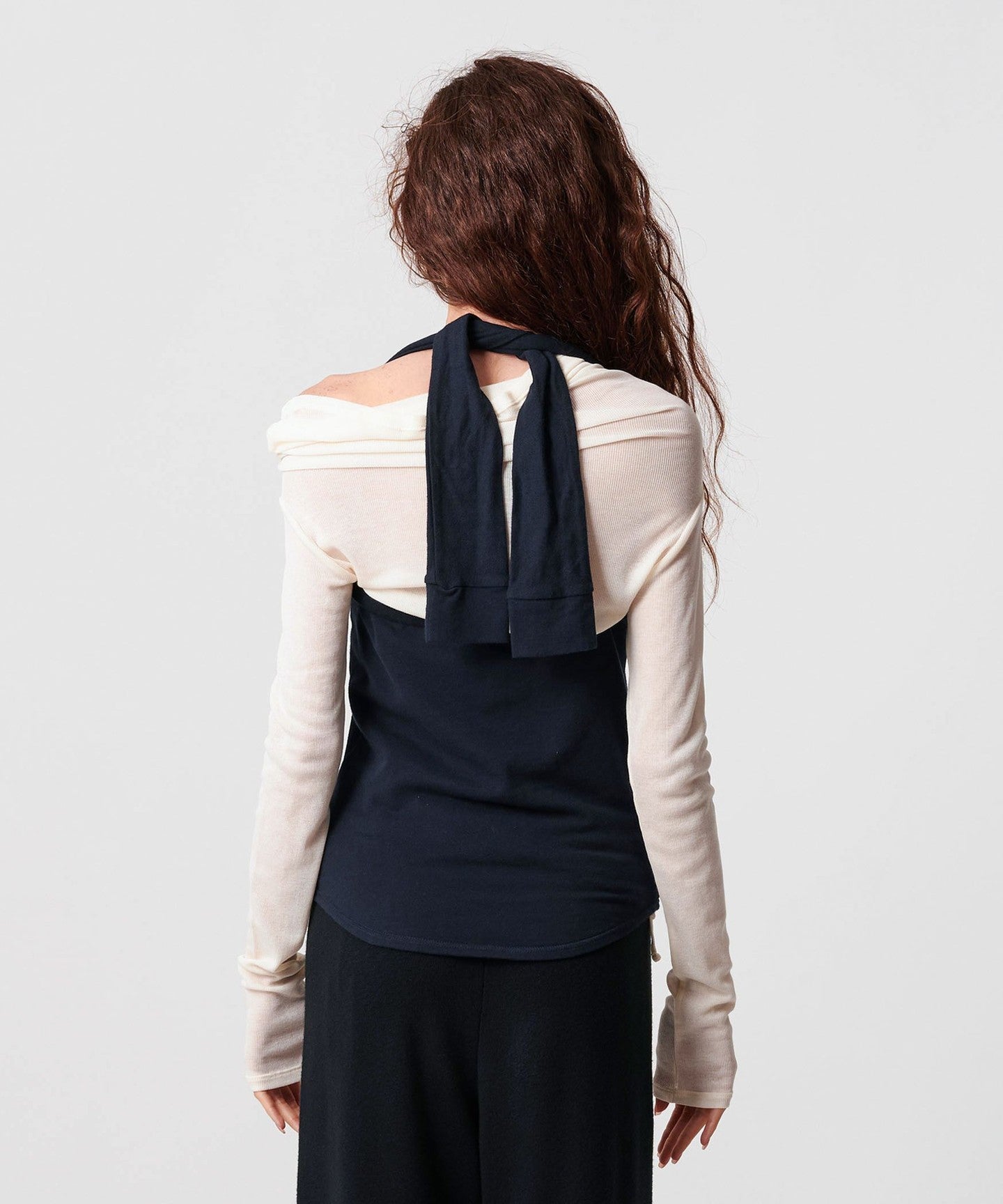 A special halter neck top that can be worn in a variety of ways to create different outfits.