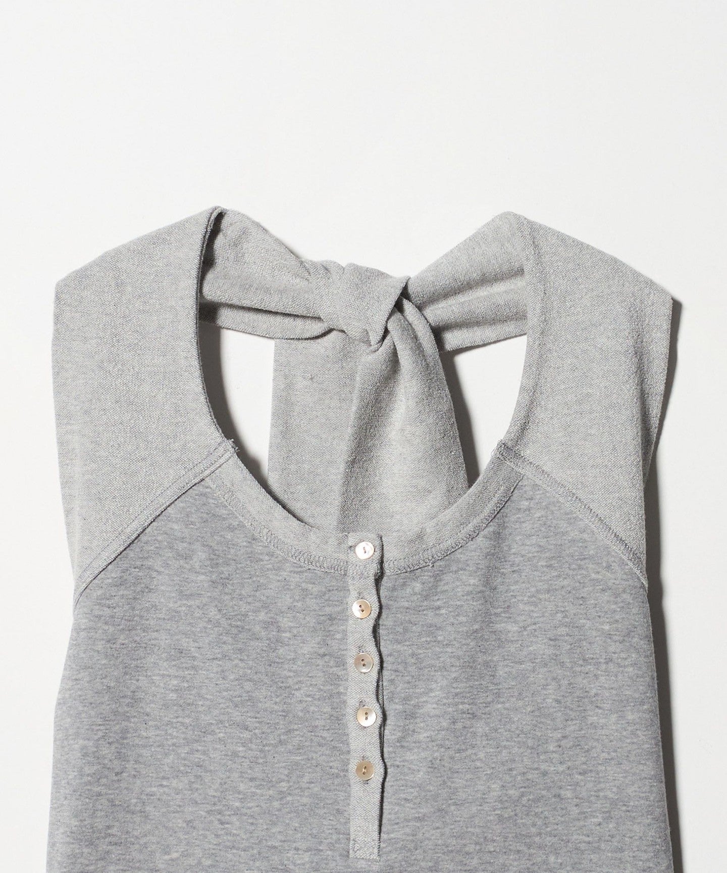 This halter neck top has a fresh design that looks like a remade Henley neck T-shirt.