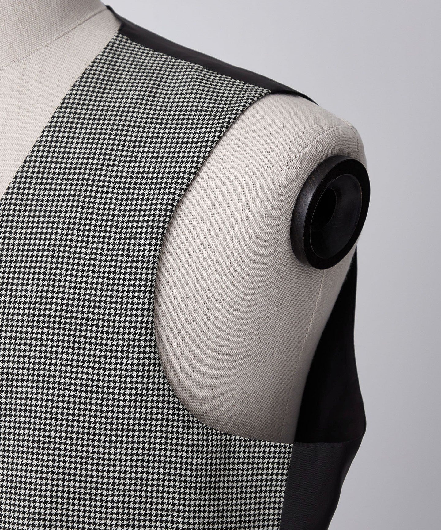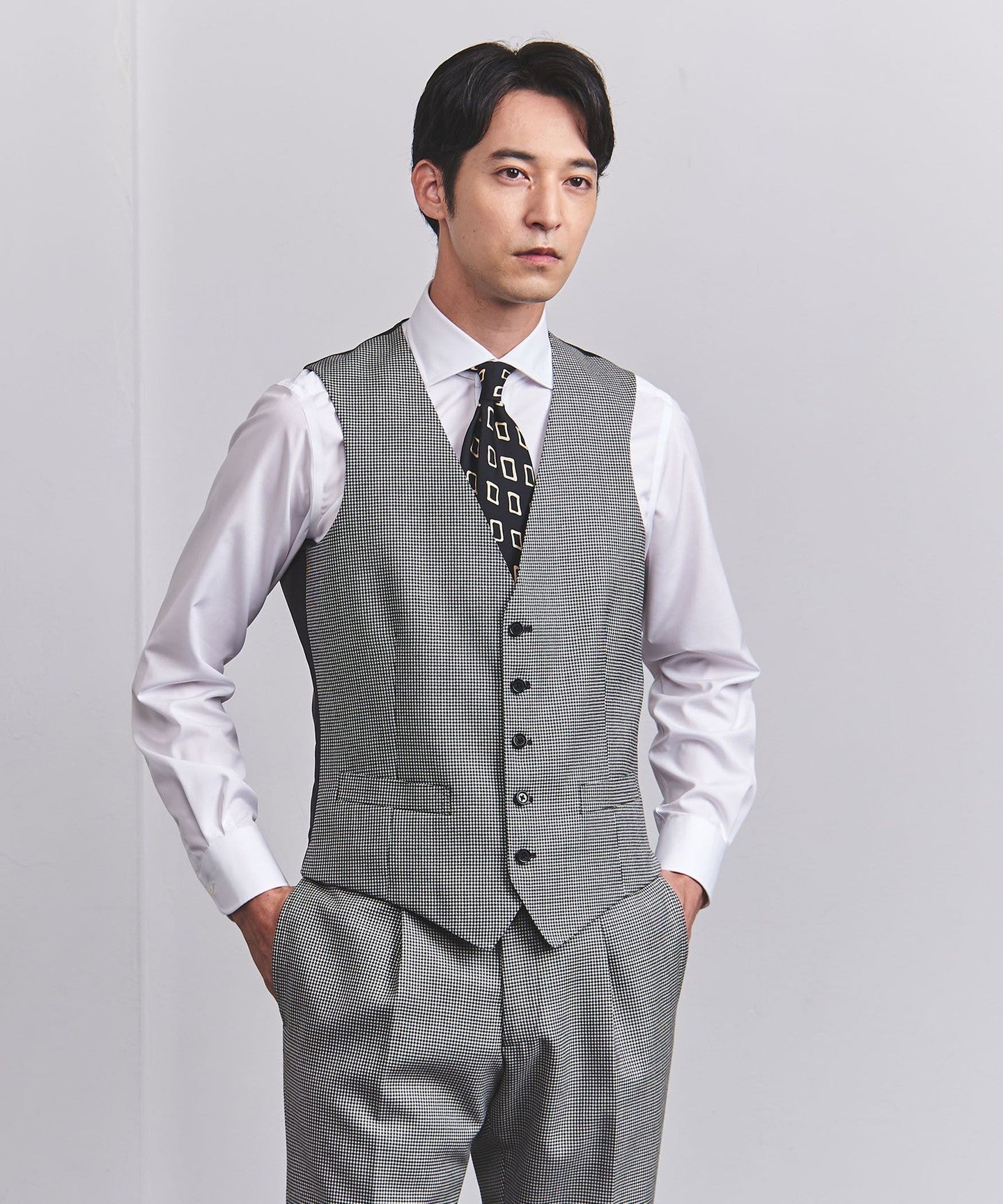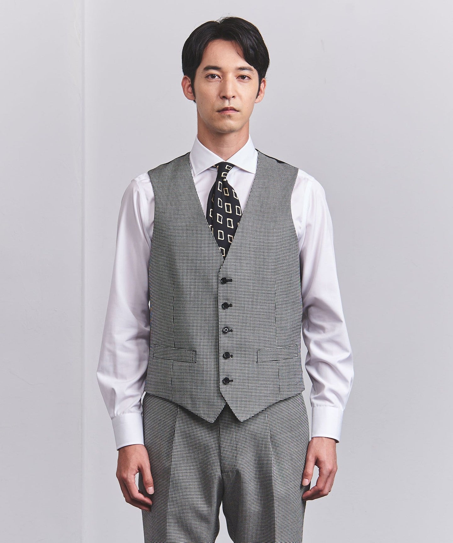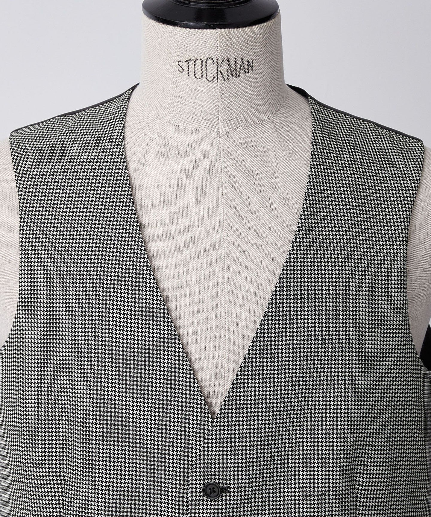 A single 5-button vest with an eye-catching houndstooth pattern in black and white.