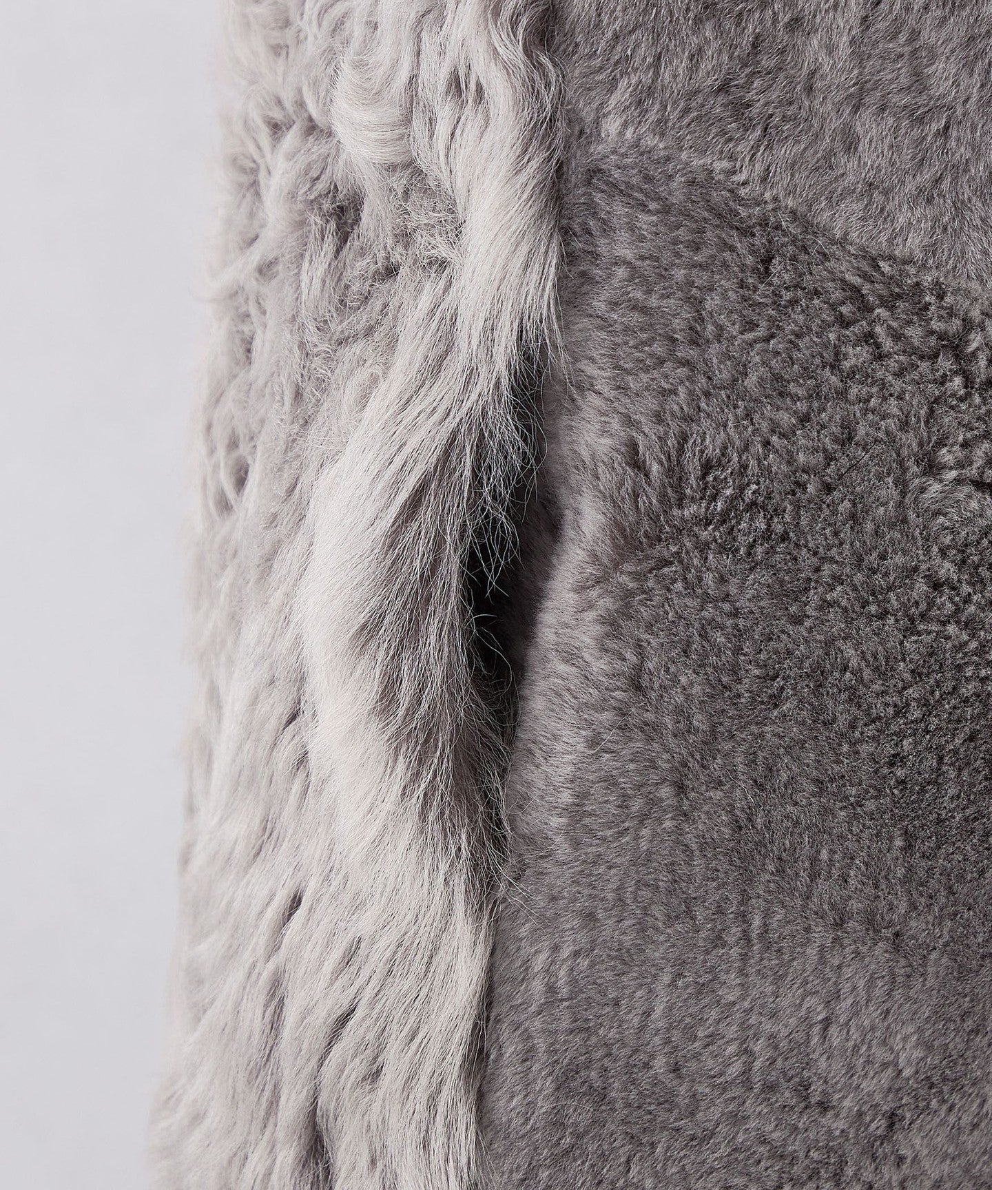 The front is made of long-pile mouton and the back is made of short-pile mouton, creating a well-defined design.