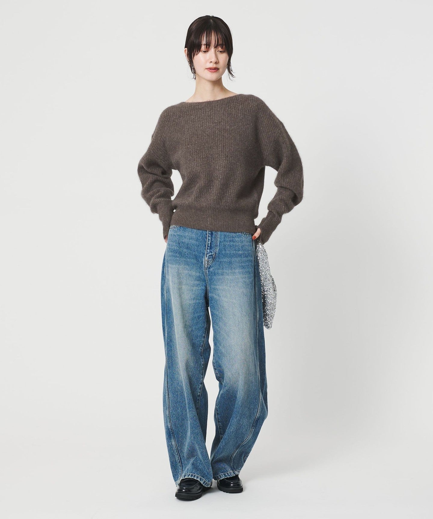 フォックスのふんわり感とシルエットが映えるボートネックニット