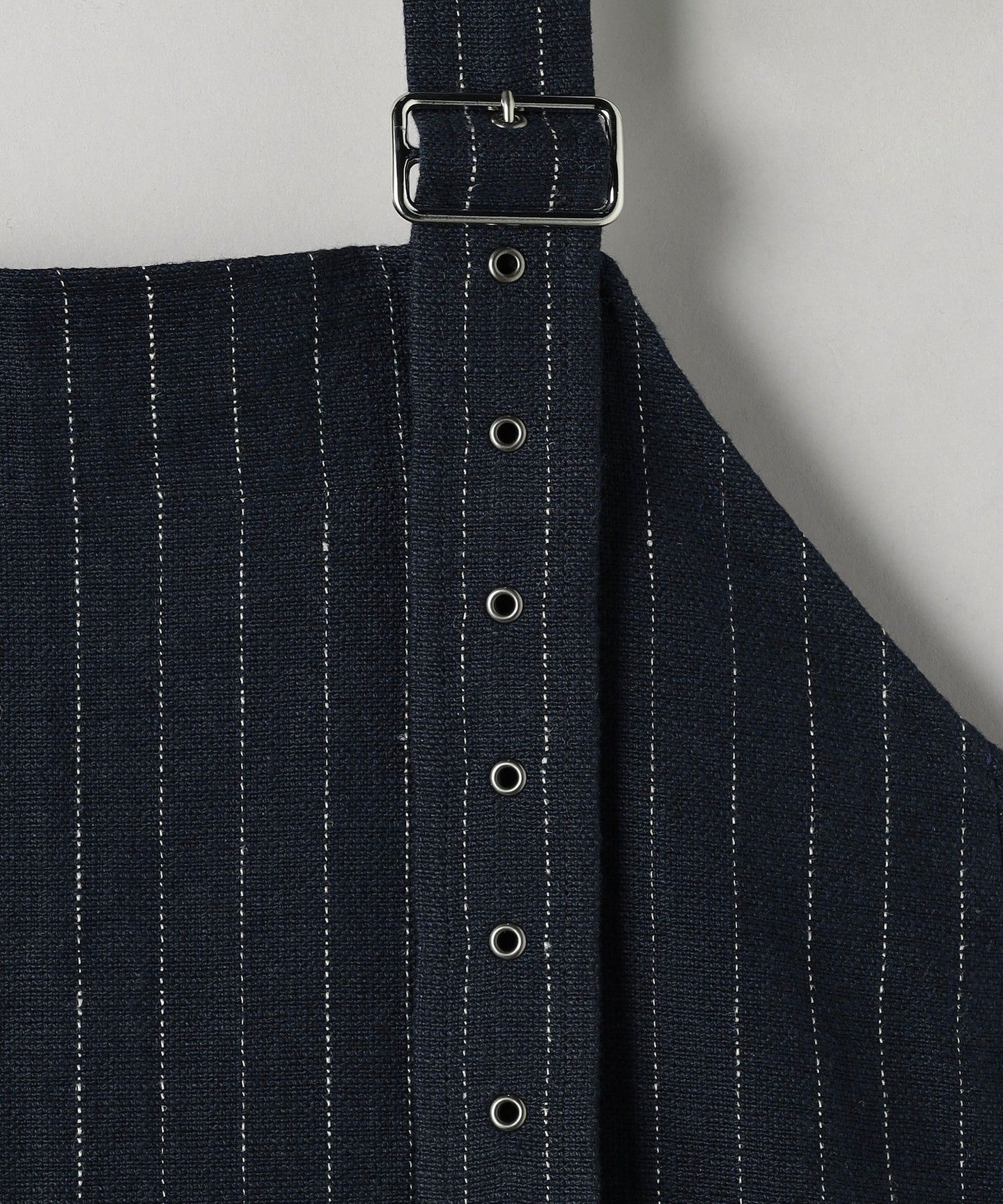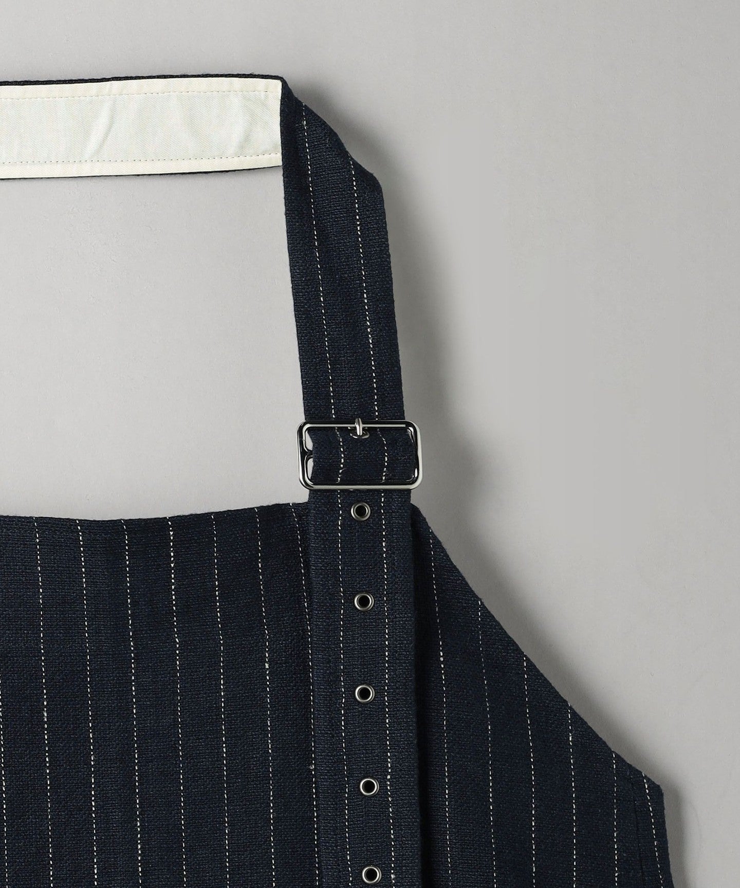 The apron-style design is accented with silver on the buckles and eyelets, giving it a sharp look.