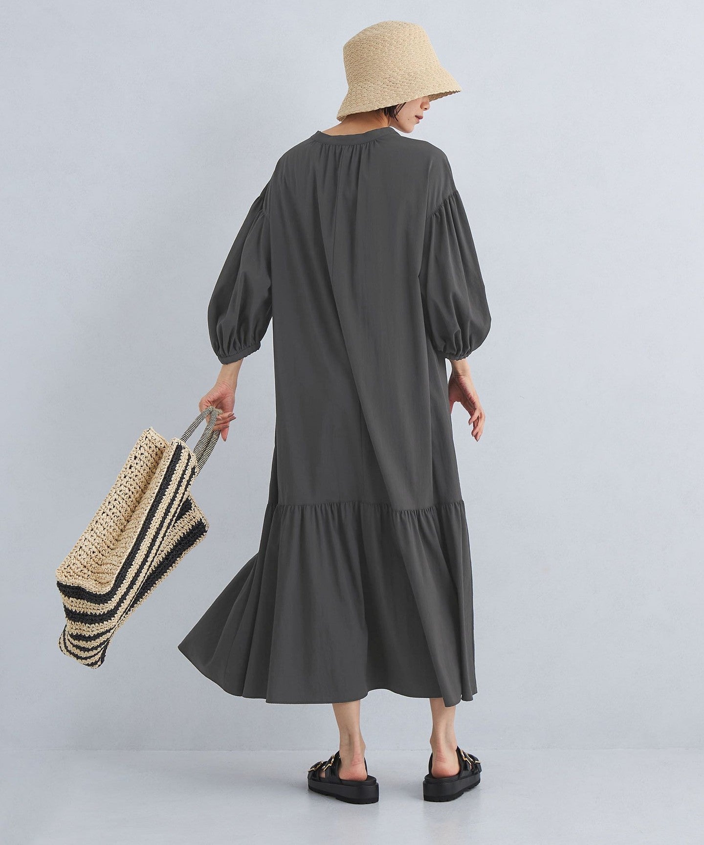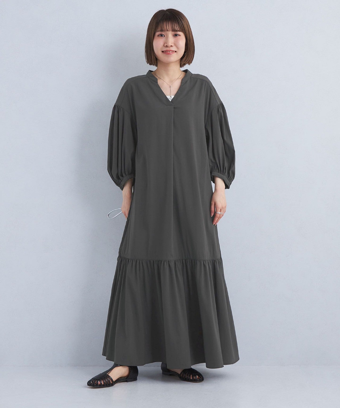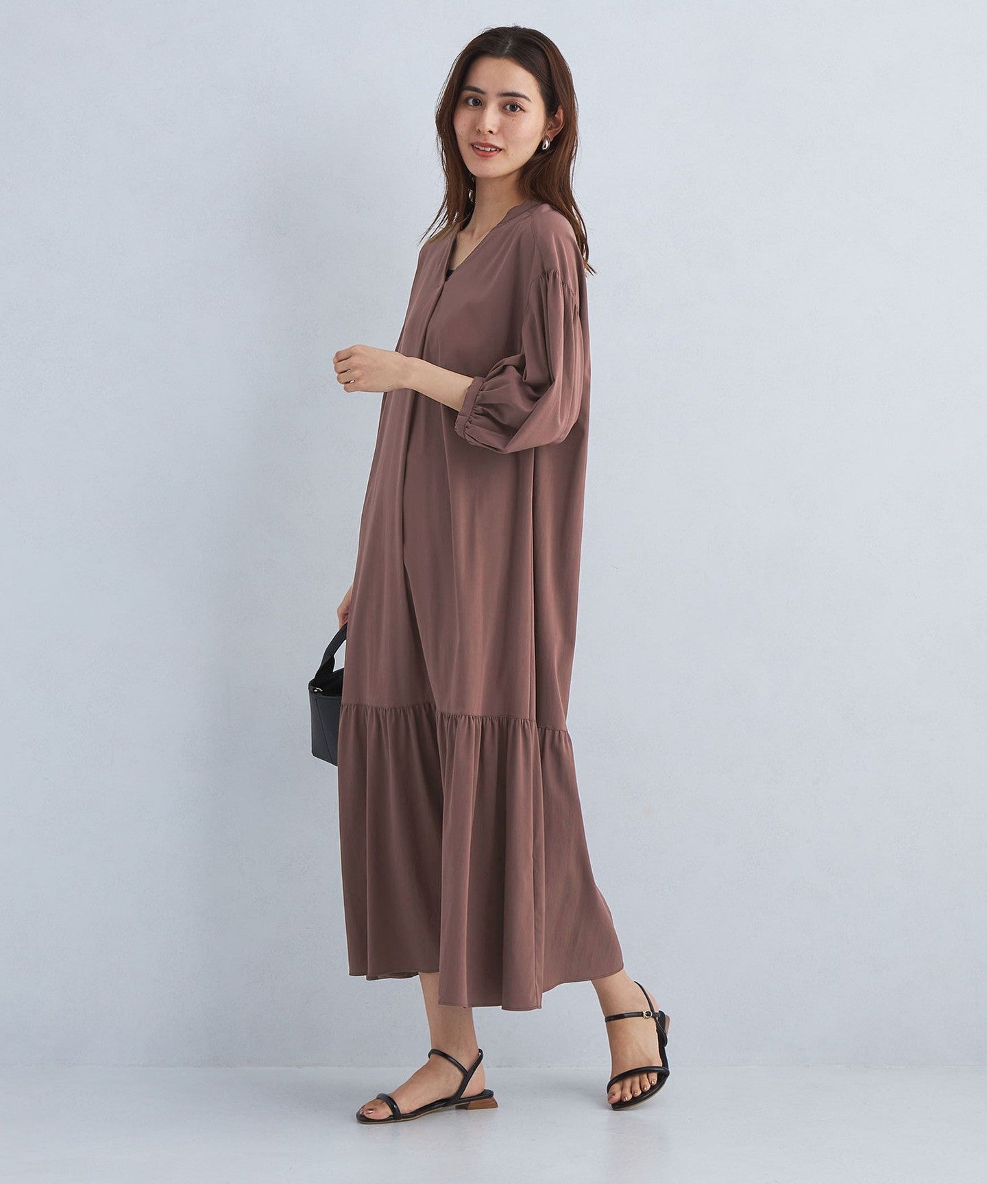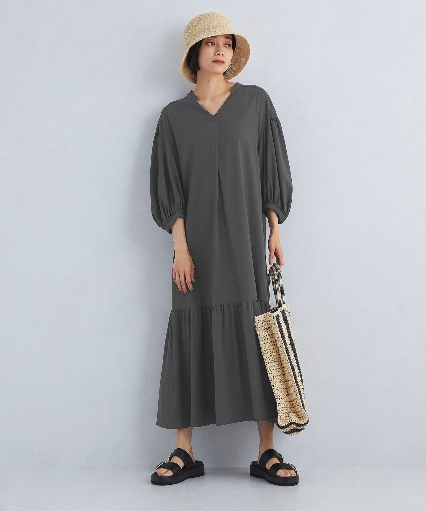 It has a moderately relaxed feel, but the clean design around the bust gives it a feminine impression.