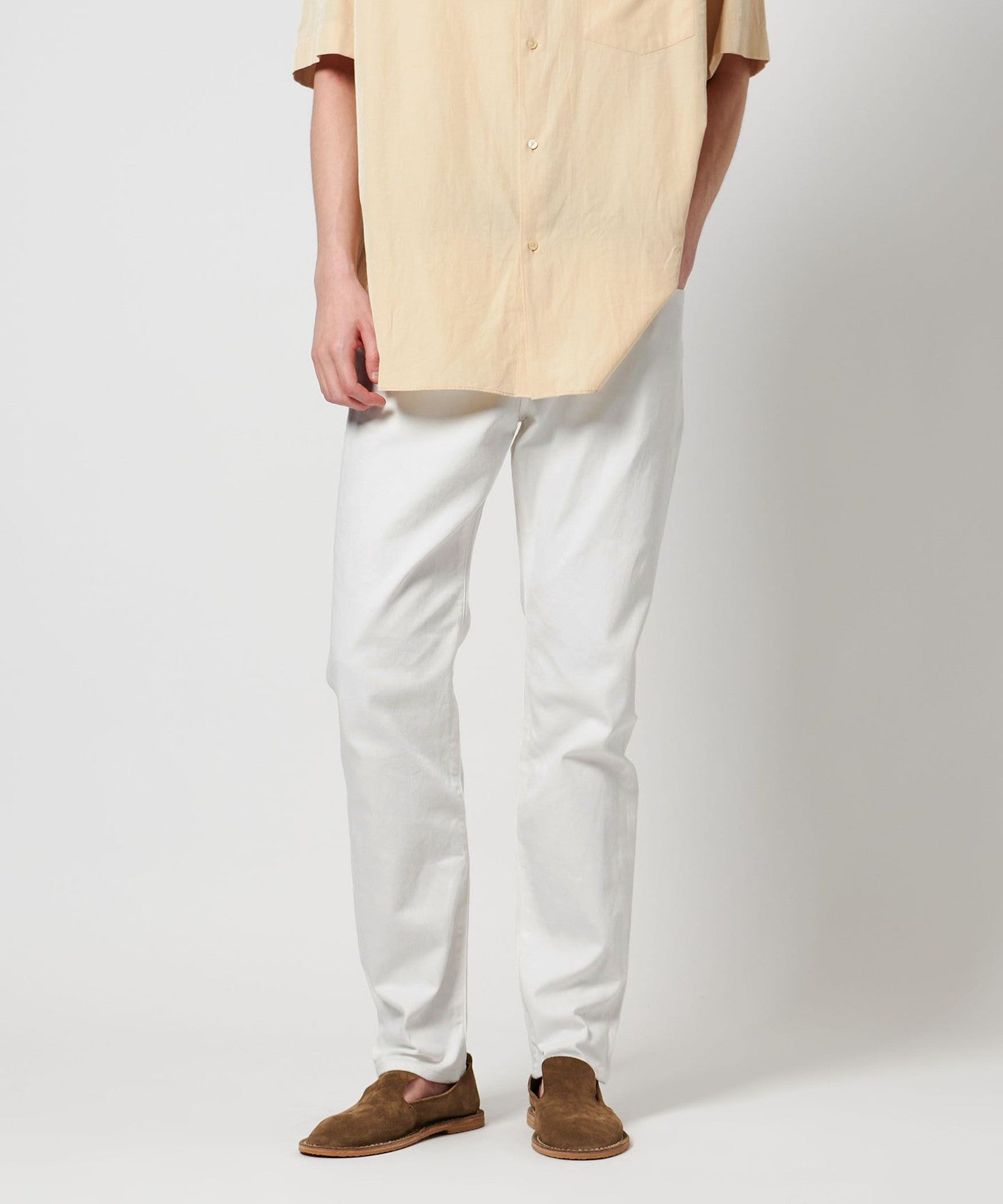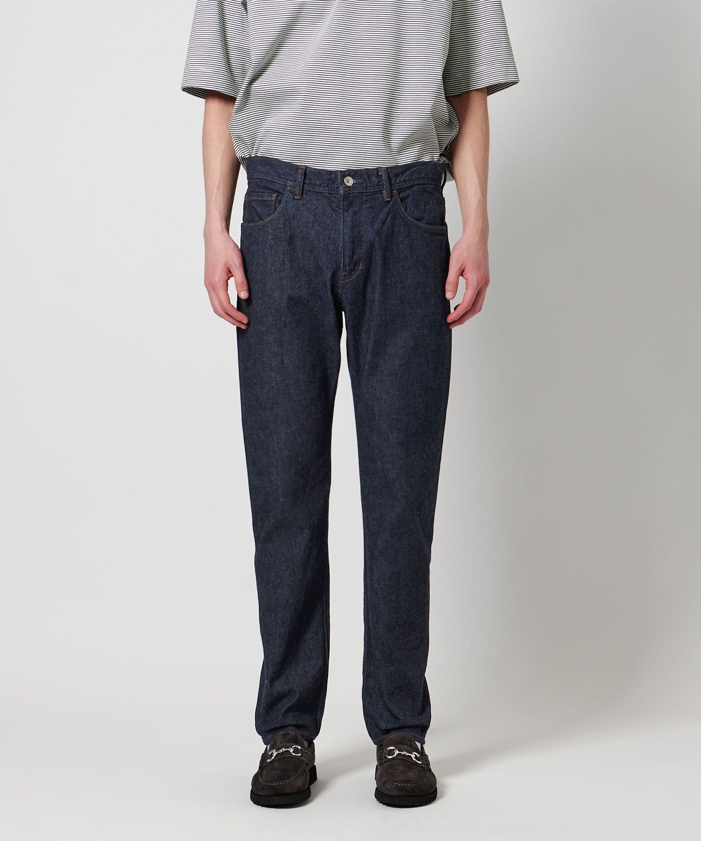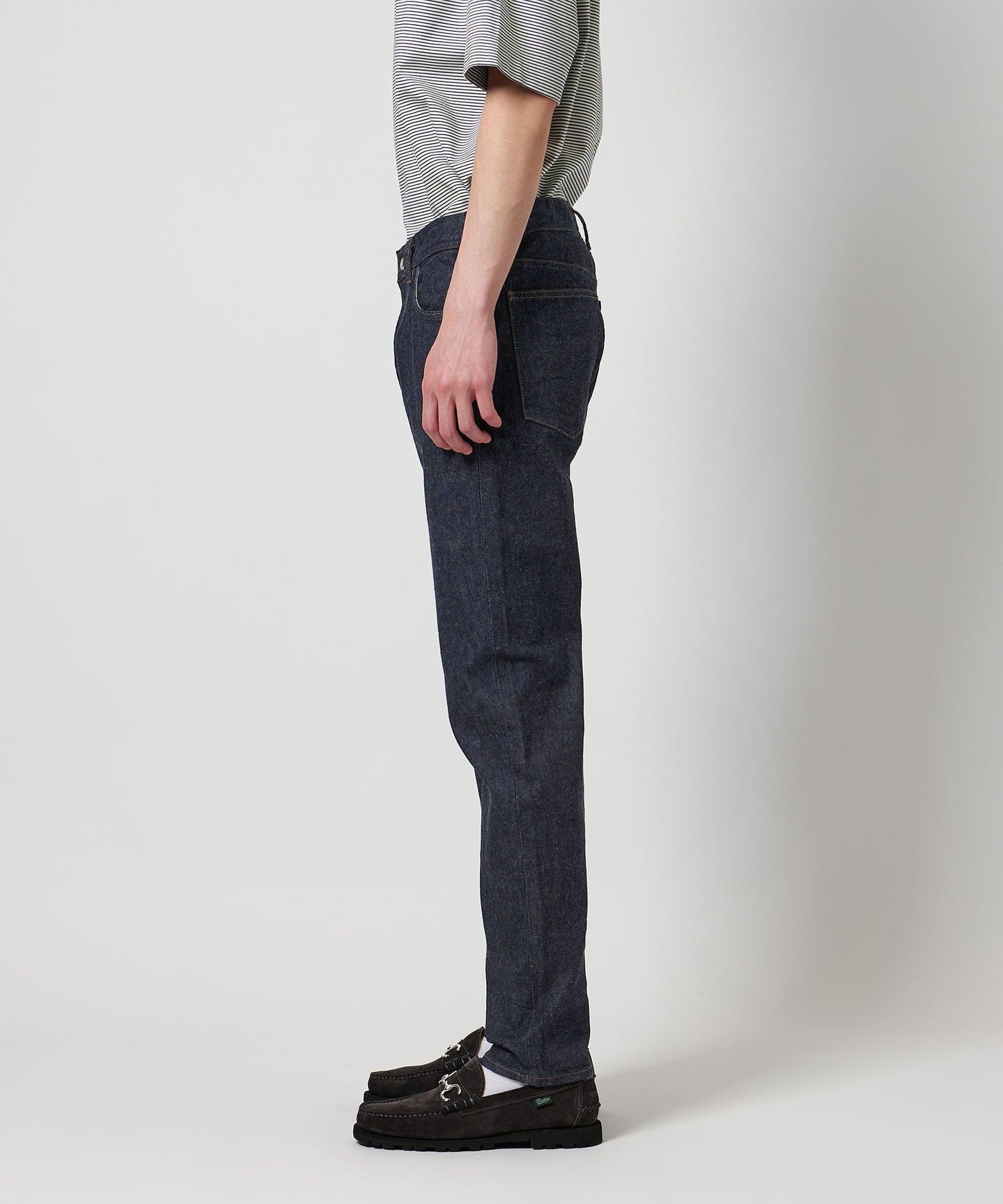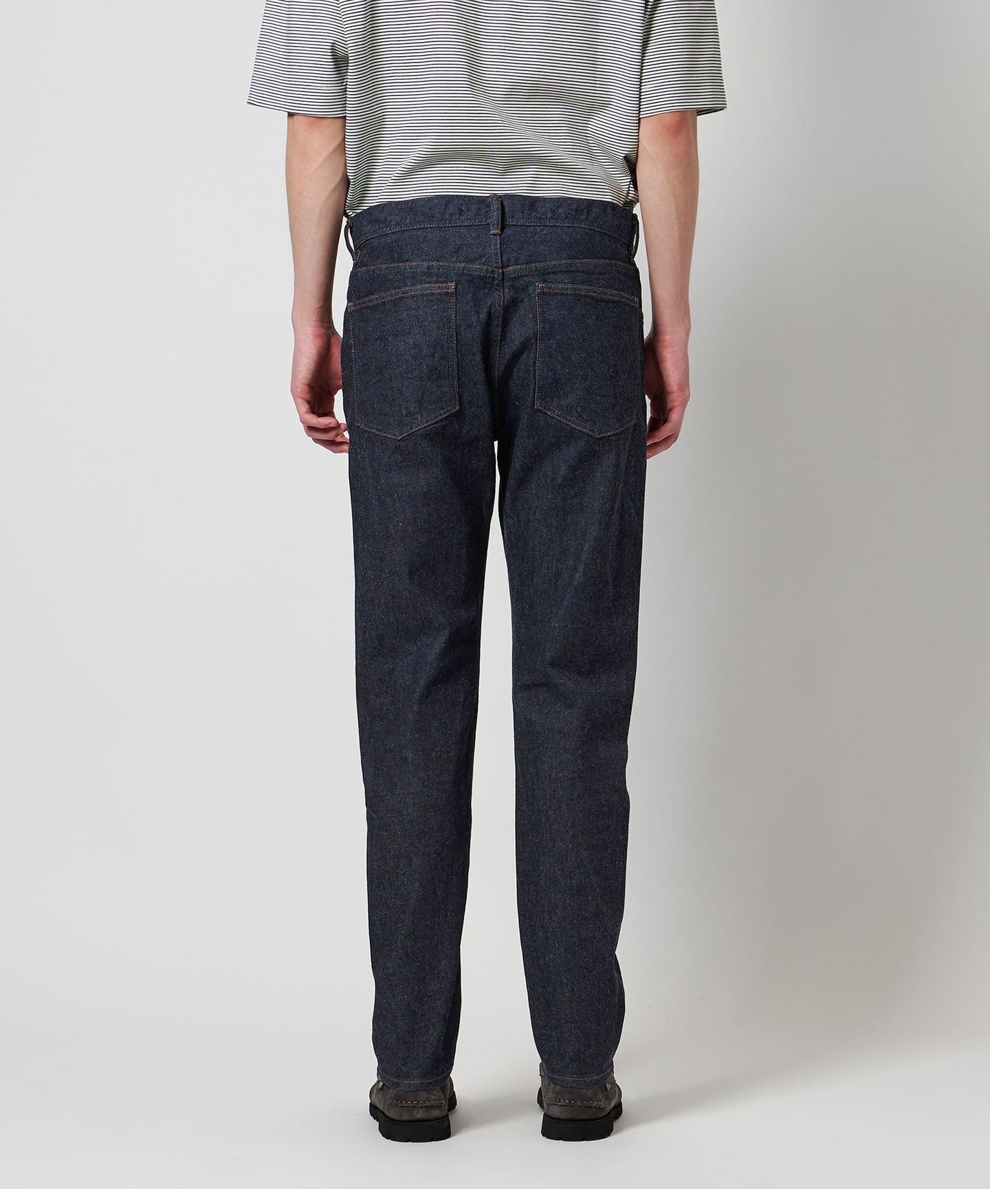 These authentically designed five-pocket denim pants are made at the Shiota factory, which is based in Okayama and produces the original brand CIOTA.