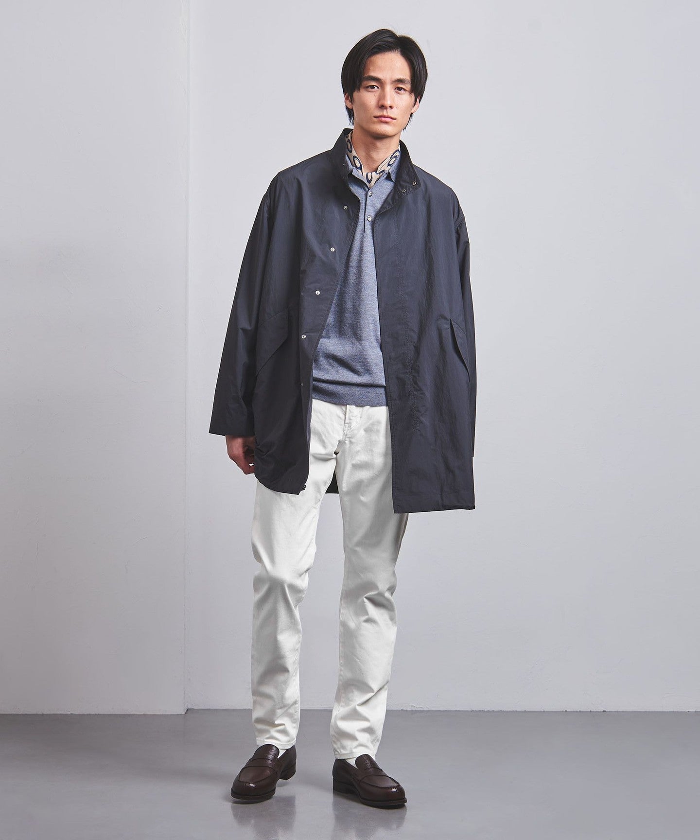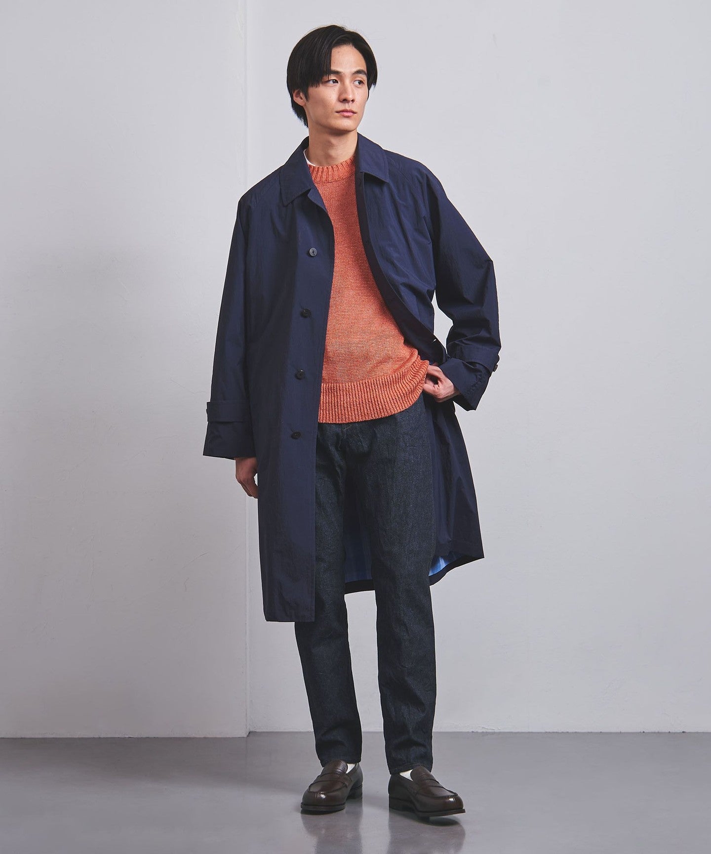 It is recommended not only for casual styles, but also for jacket styles and office casual wear that make use of the slim silhouette.
