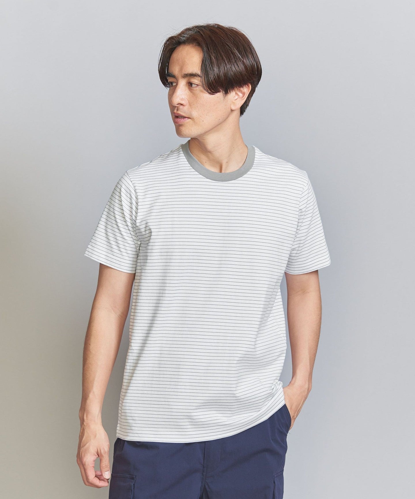 High Gauge Gas Cotton Border Crew Neck T-Shirt