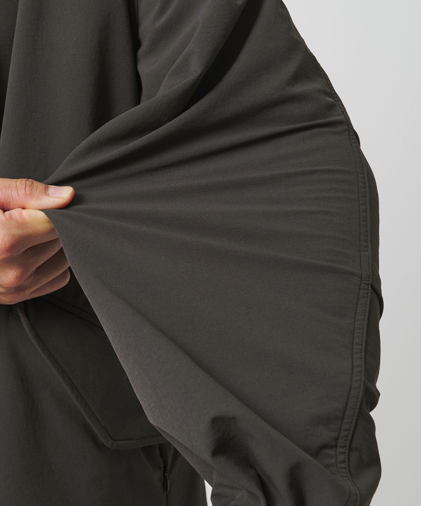 袖口とウエストは絞りで調整可能で、シルエットの変化も楽しめます。