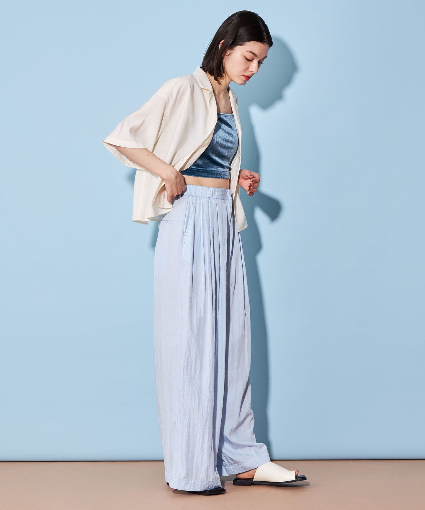 Simply pair it with a T-shirt and the wide, tucked silhouette will become the focal point of your outfit.