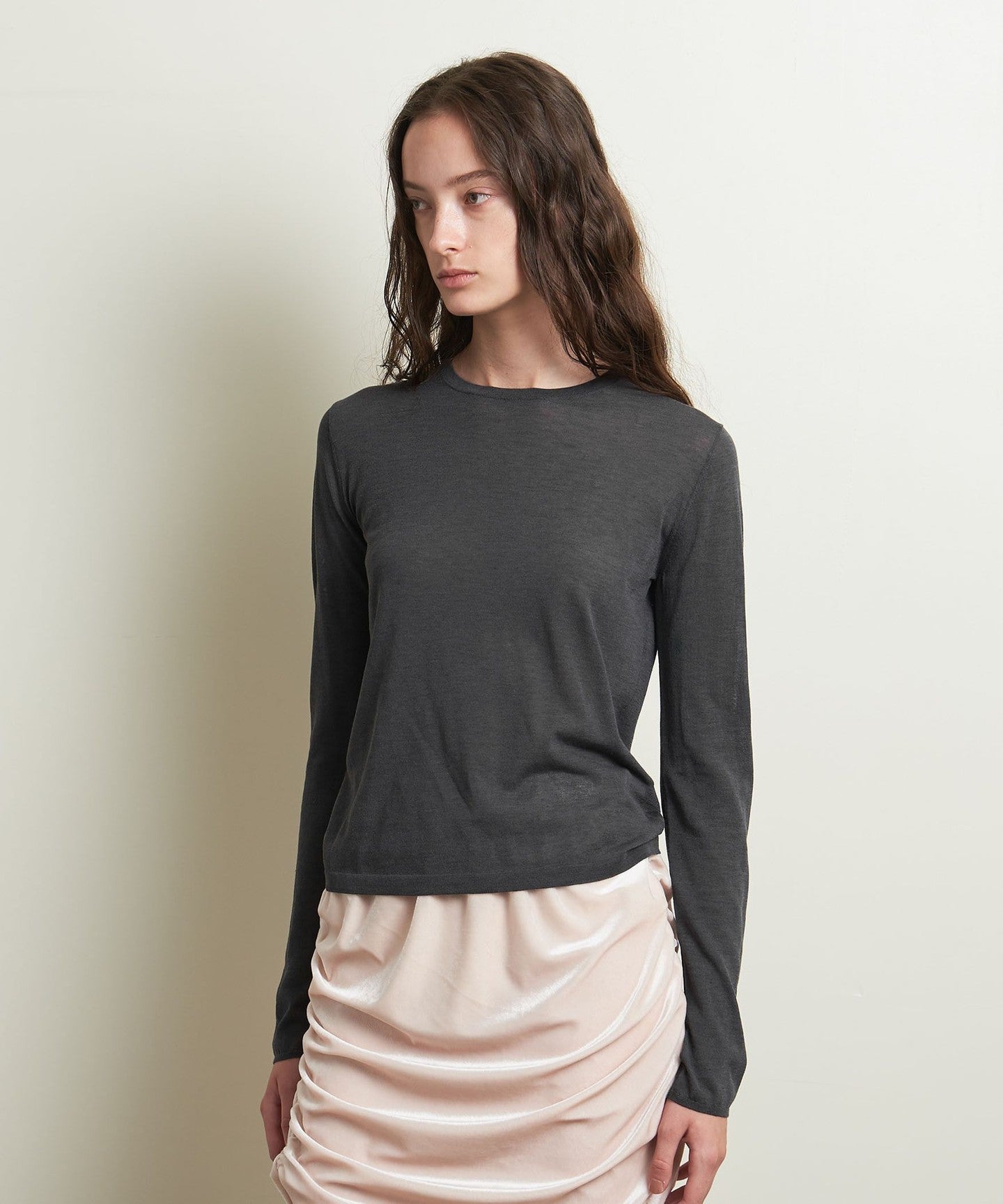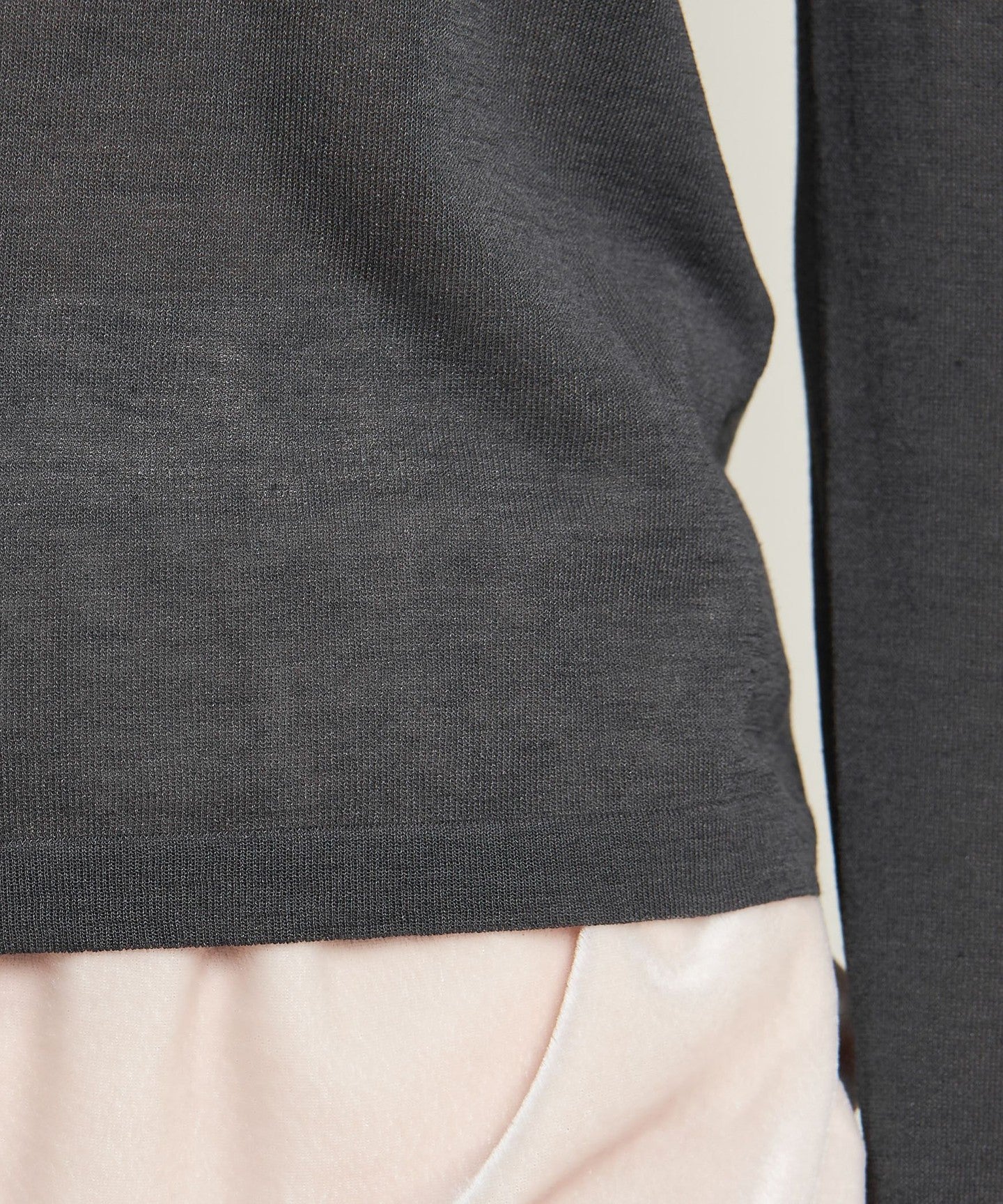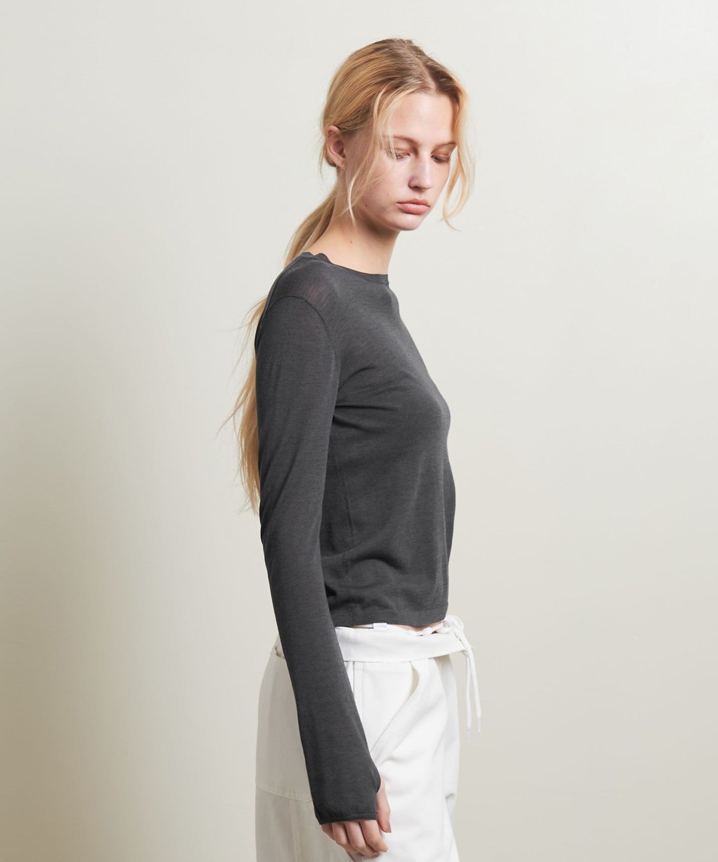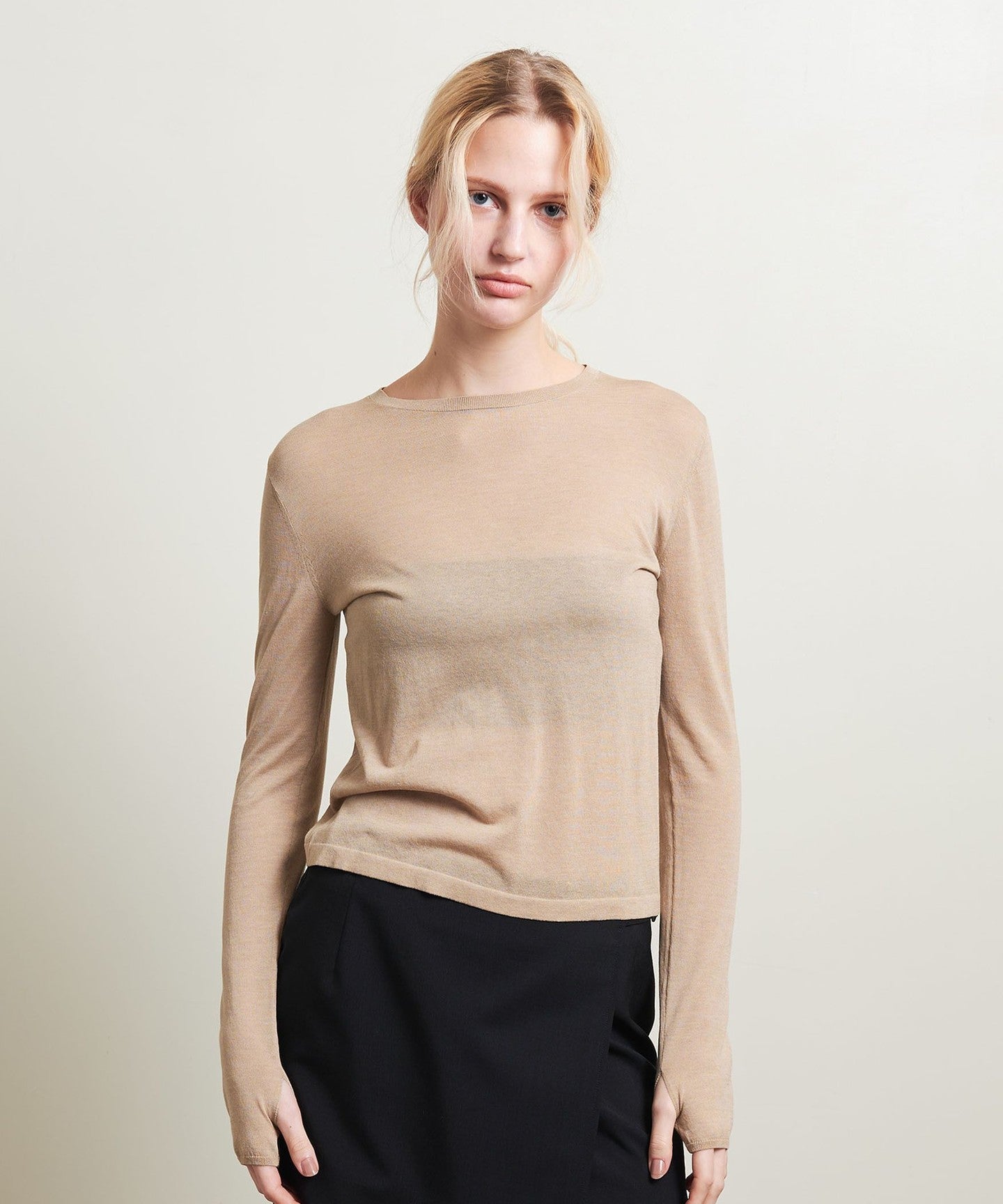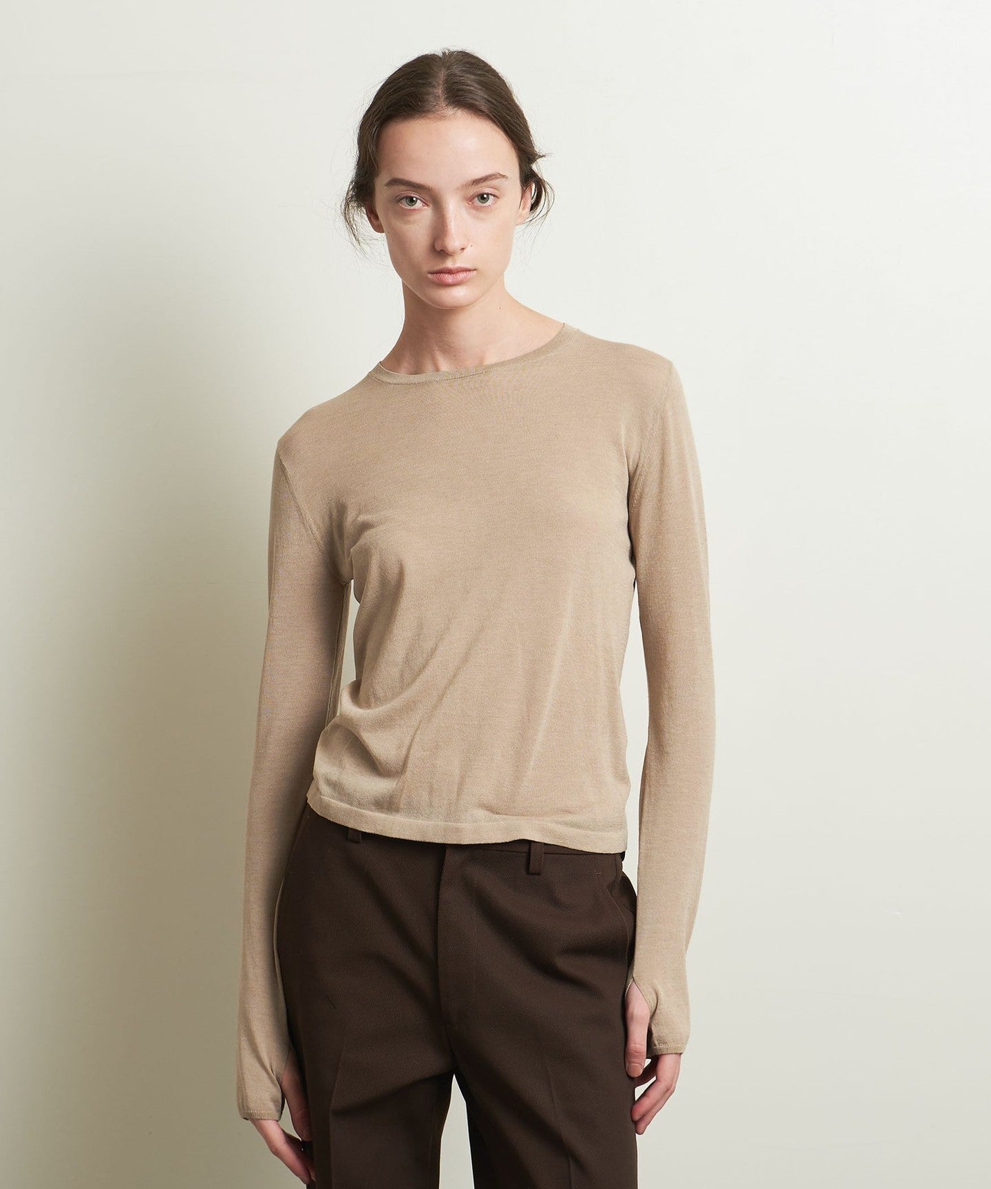 Although it is a knit, it has thumb holes so that it can be worn like a long T-shirt, giving it a casual look.