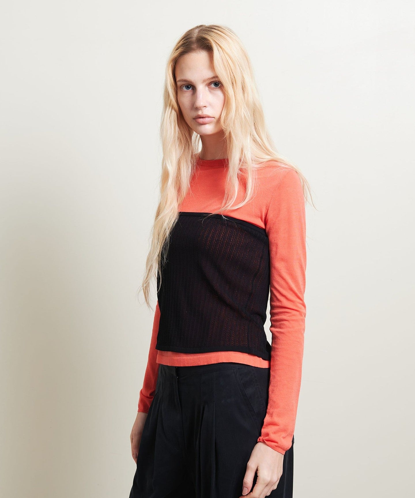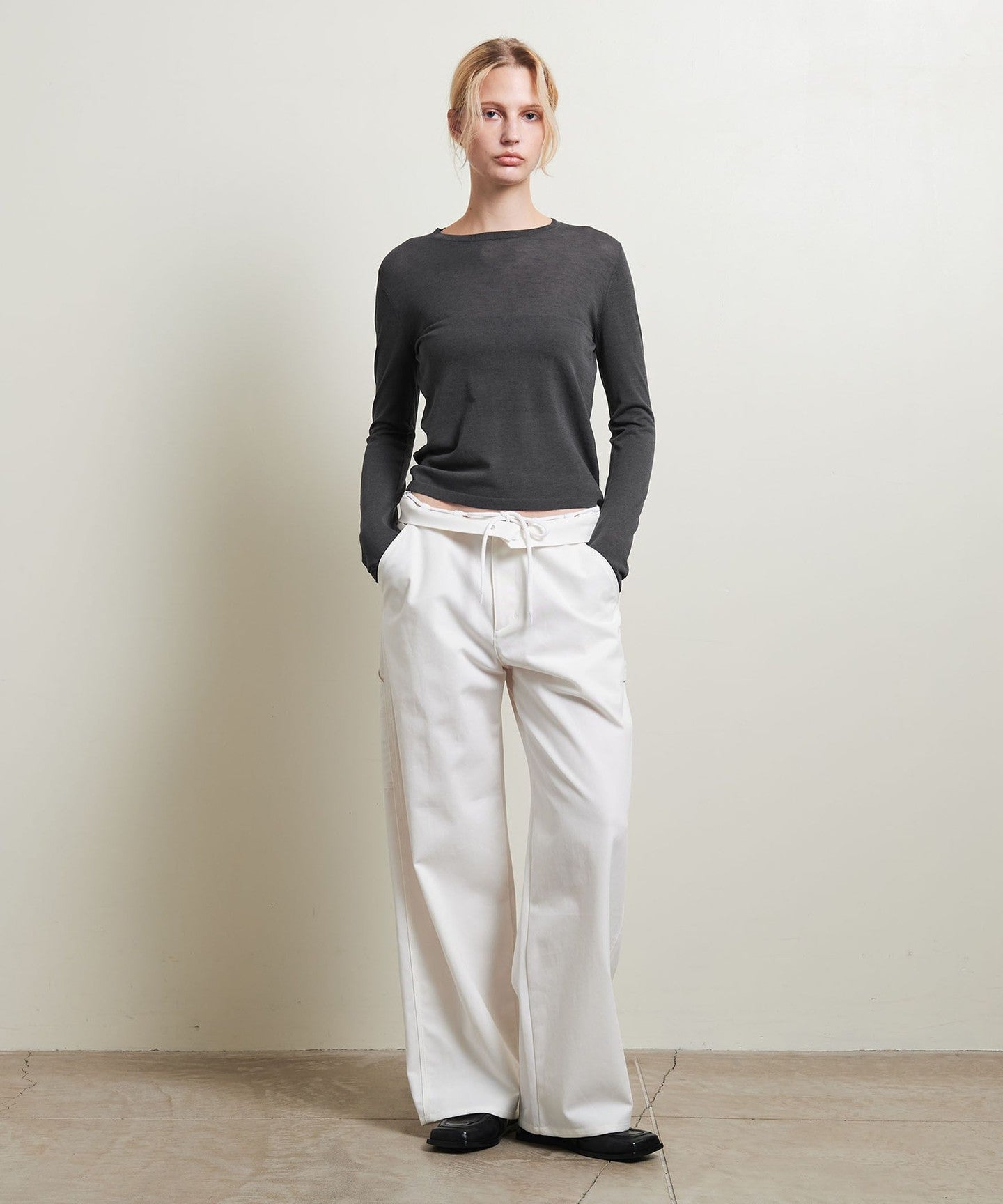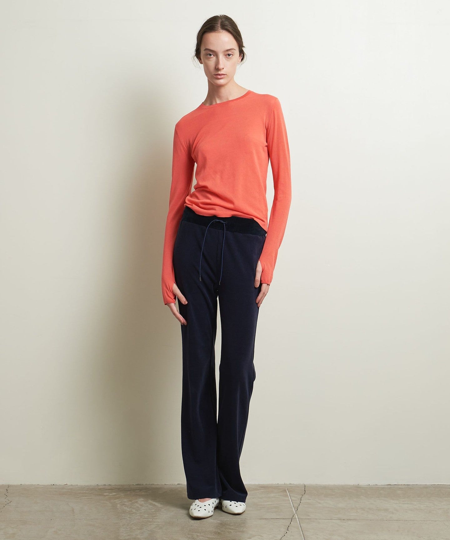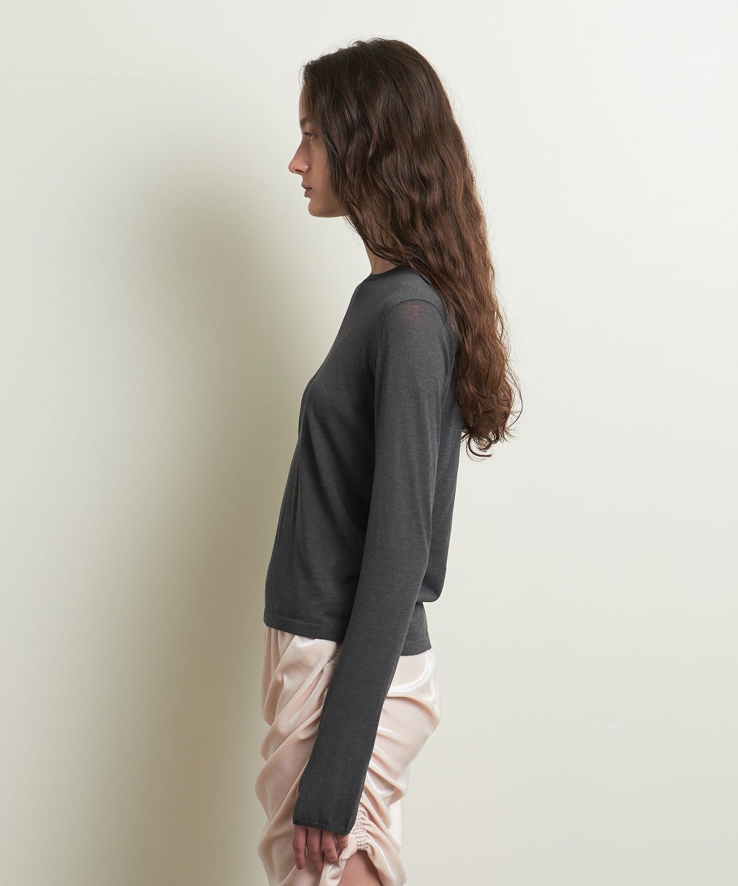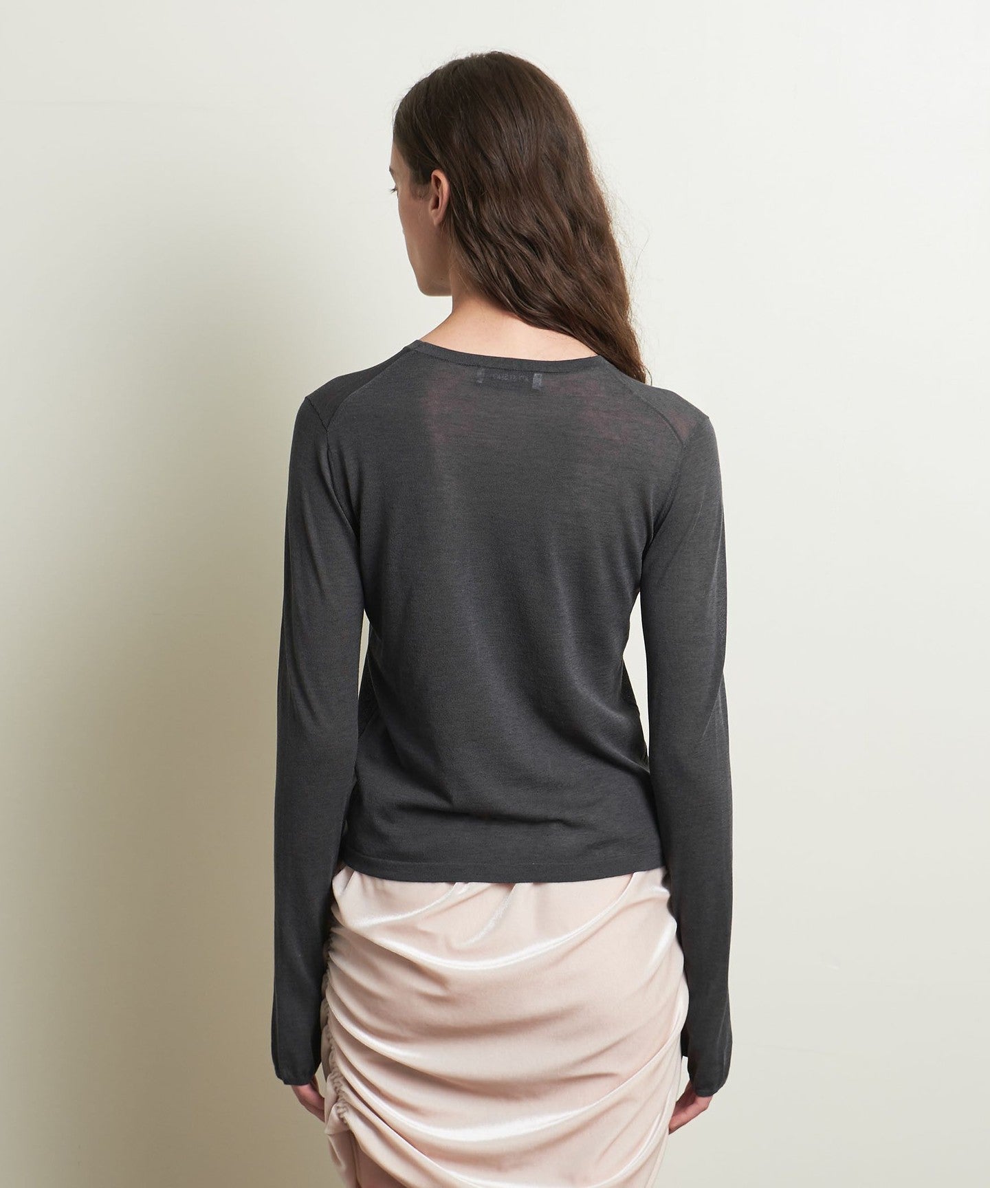 Although it is a knit, it has thumb holes so that it can be worn like a long T-shirt, giving it a casual look.