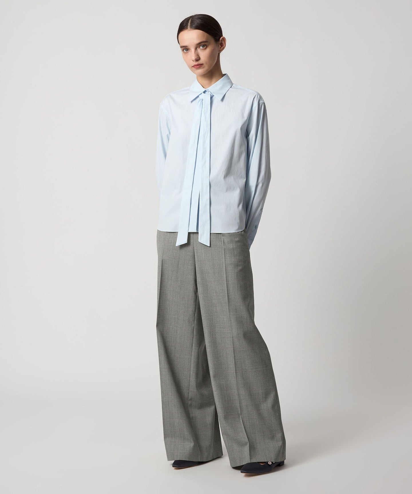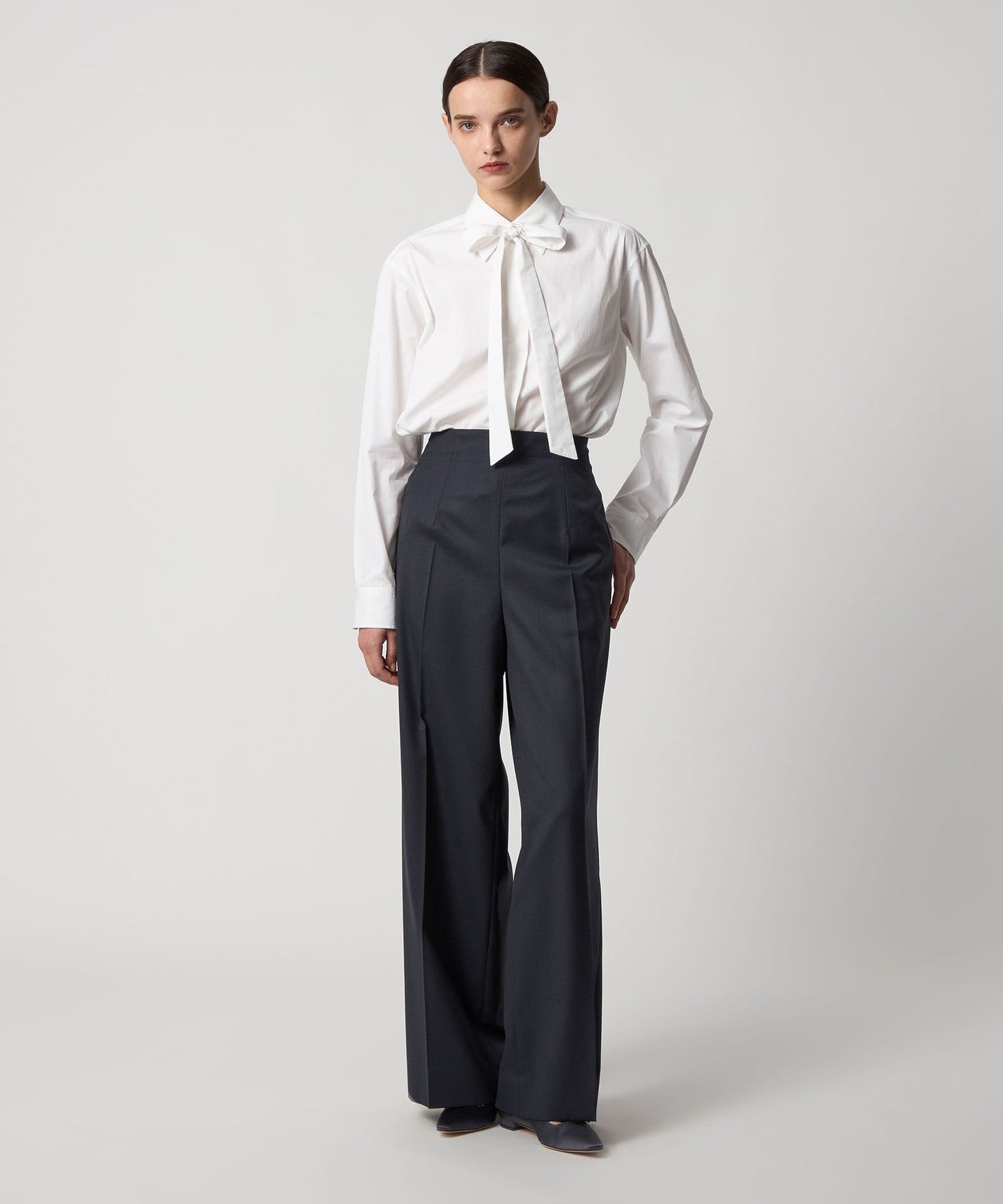 These wide pants are made from men's-like fabric and are intentionally made high-rise to beautifully accentuate the feminine, well-defined waistline.