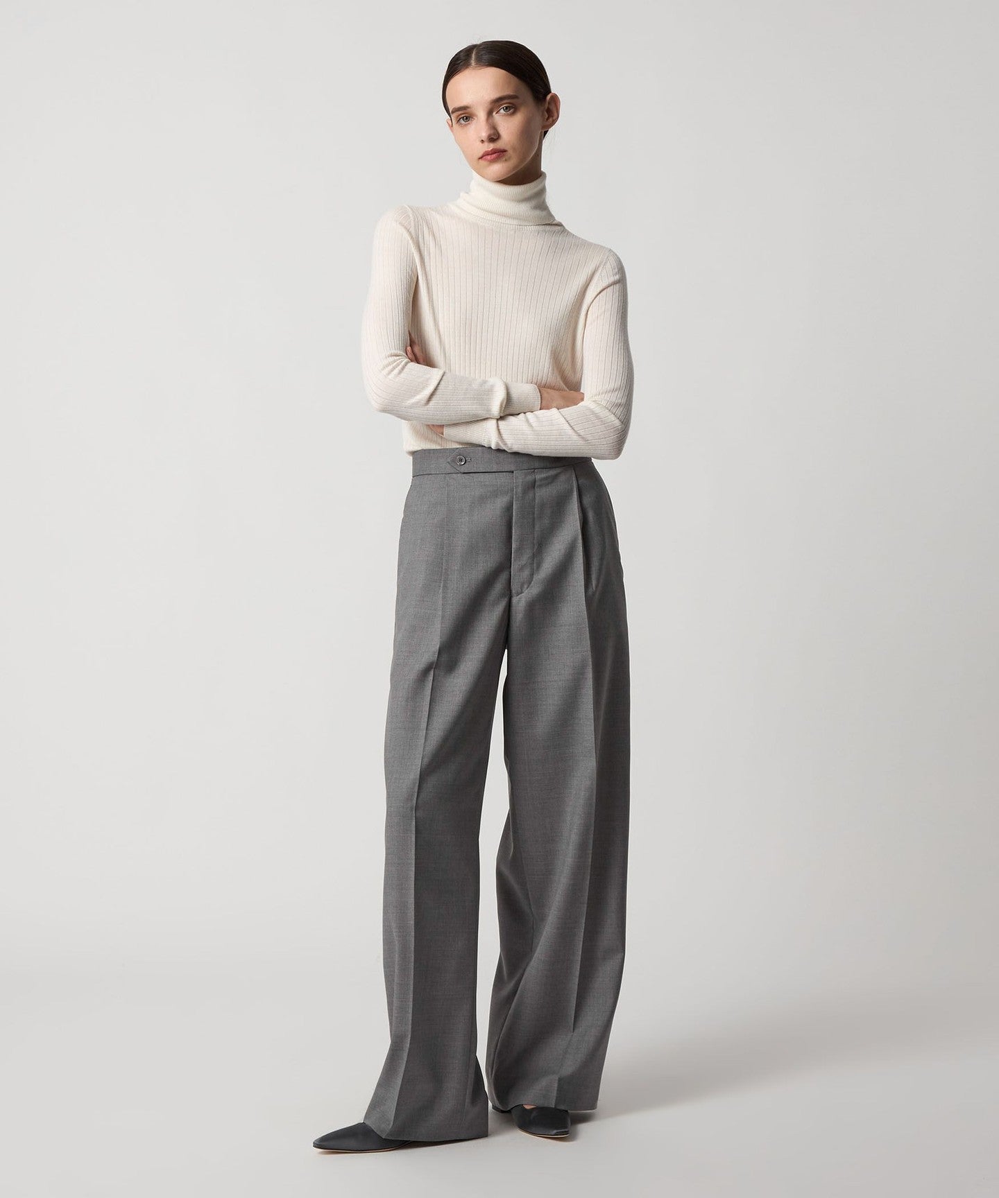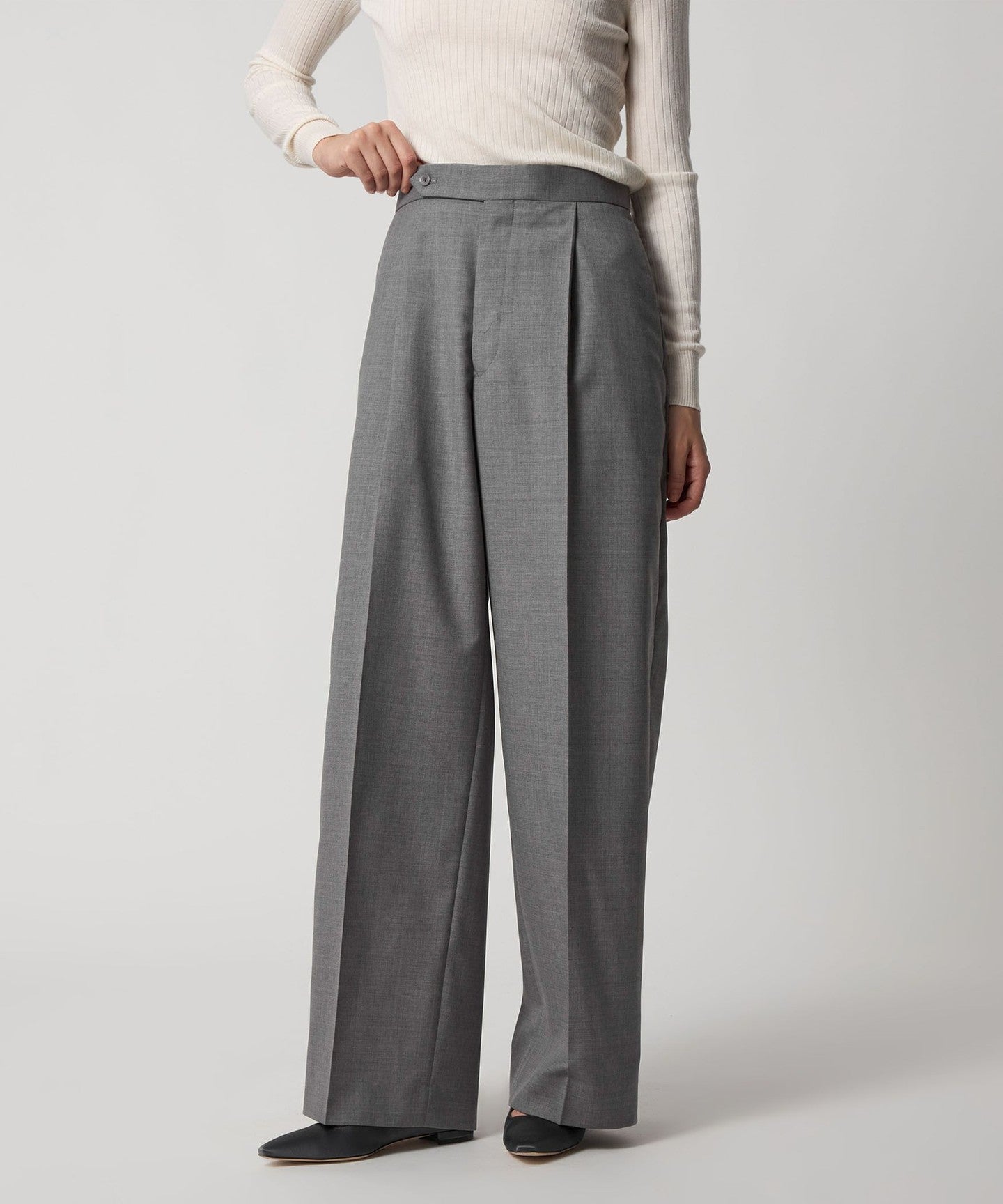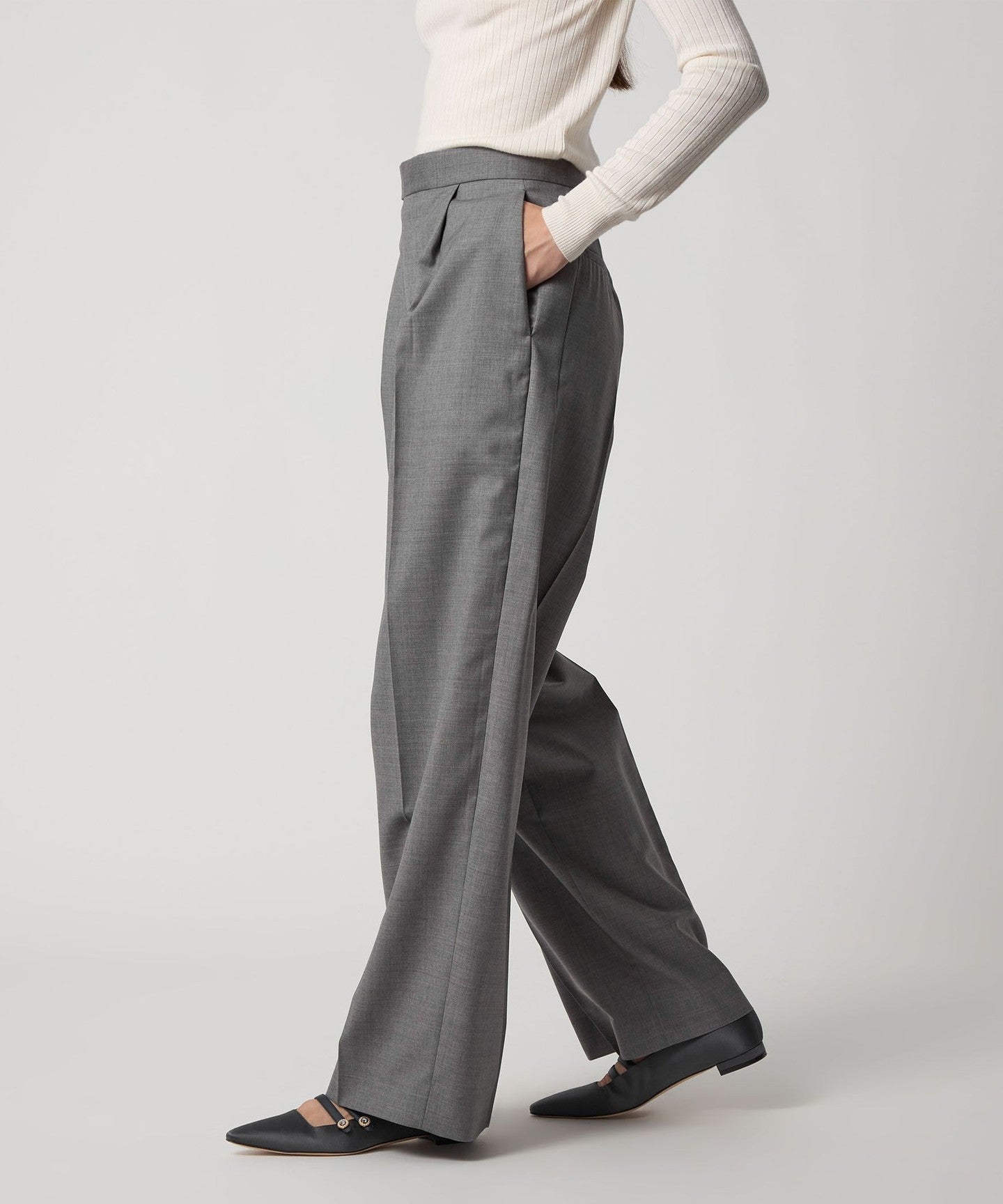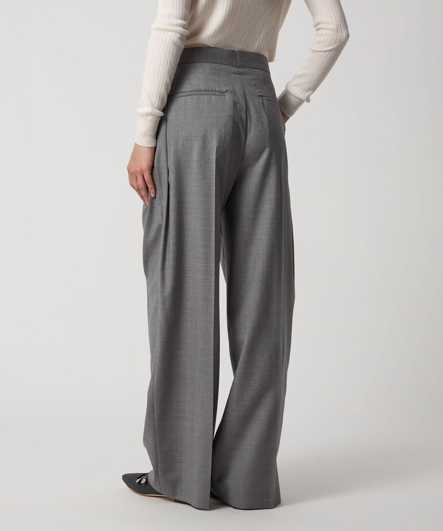 These wool pants have tucks on the sides to create a gently curved silhouette.