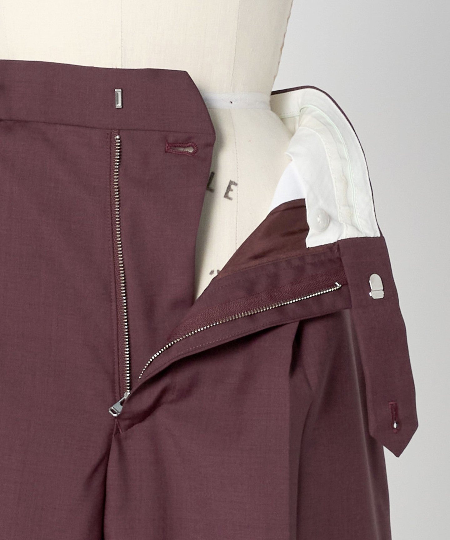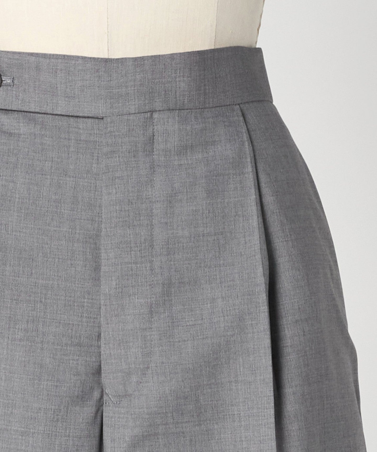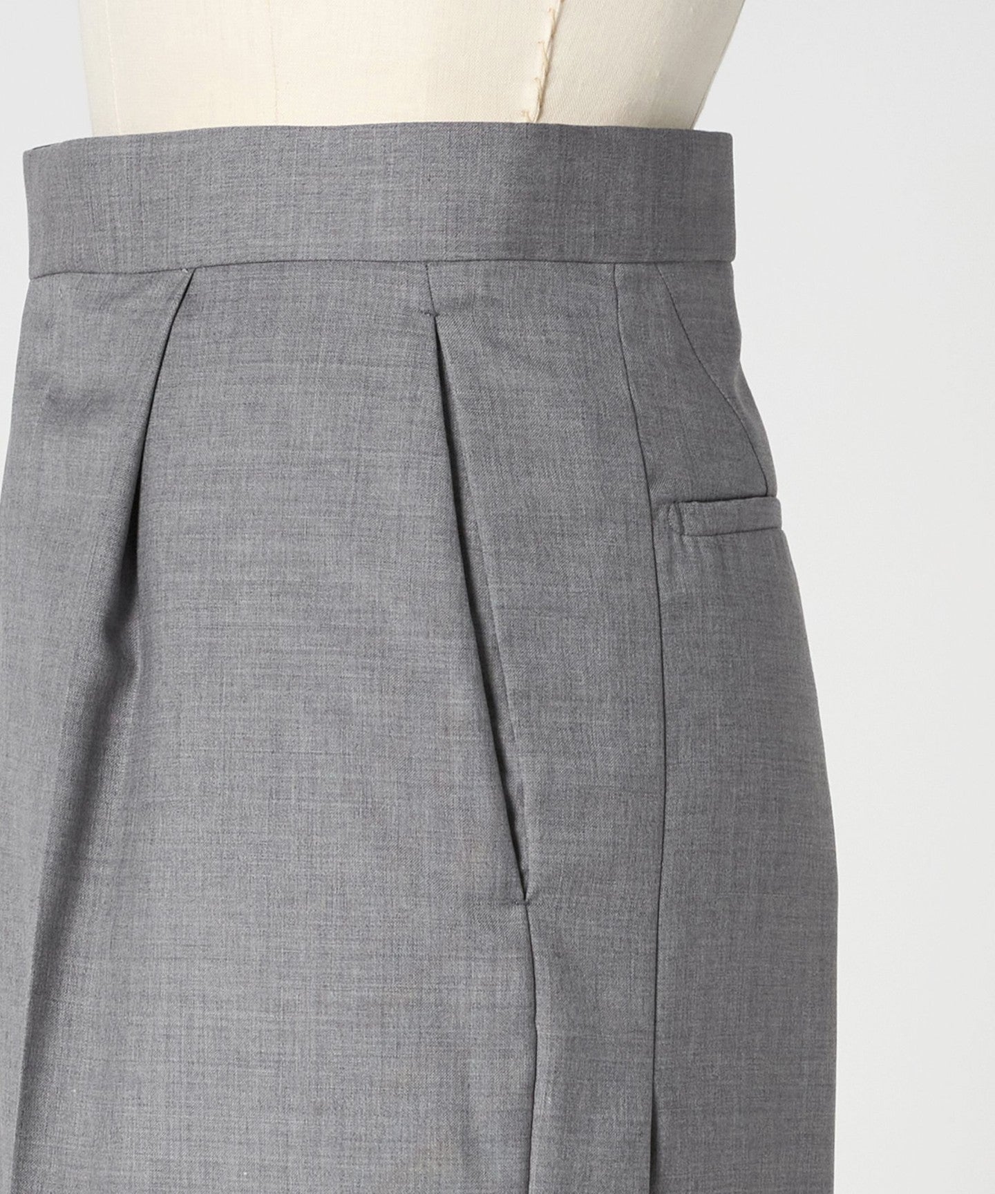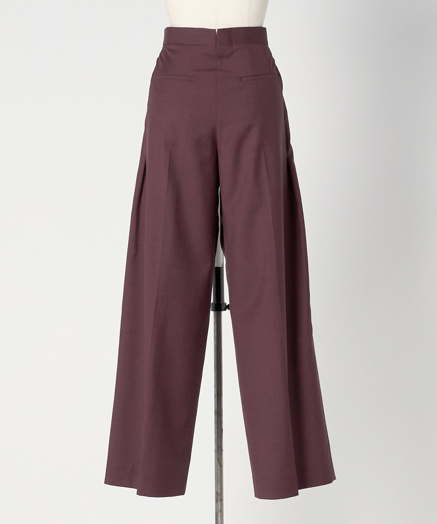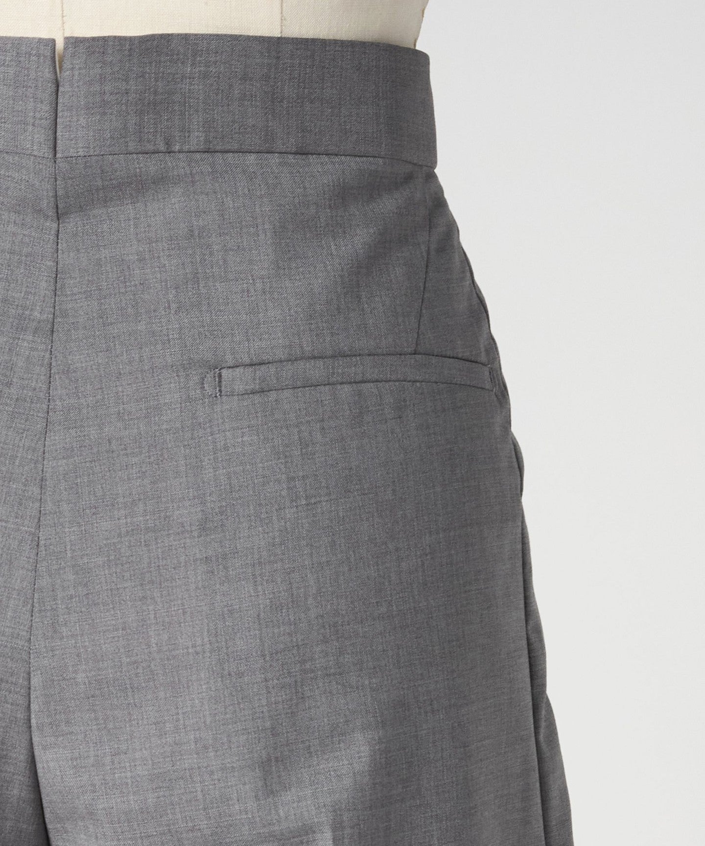 These wool pants have tucks on the sides to create a gently curved silhouette.