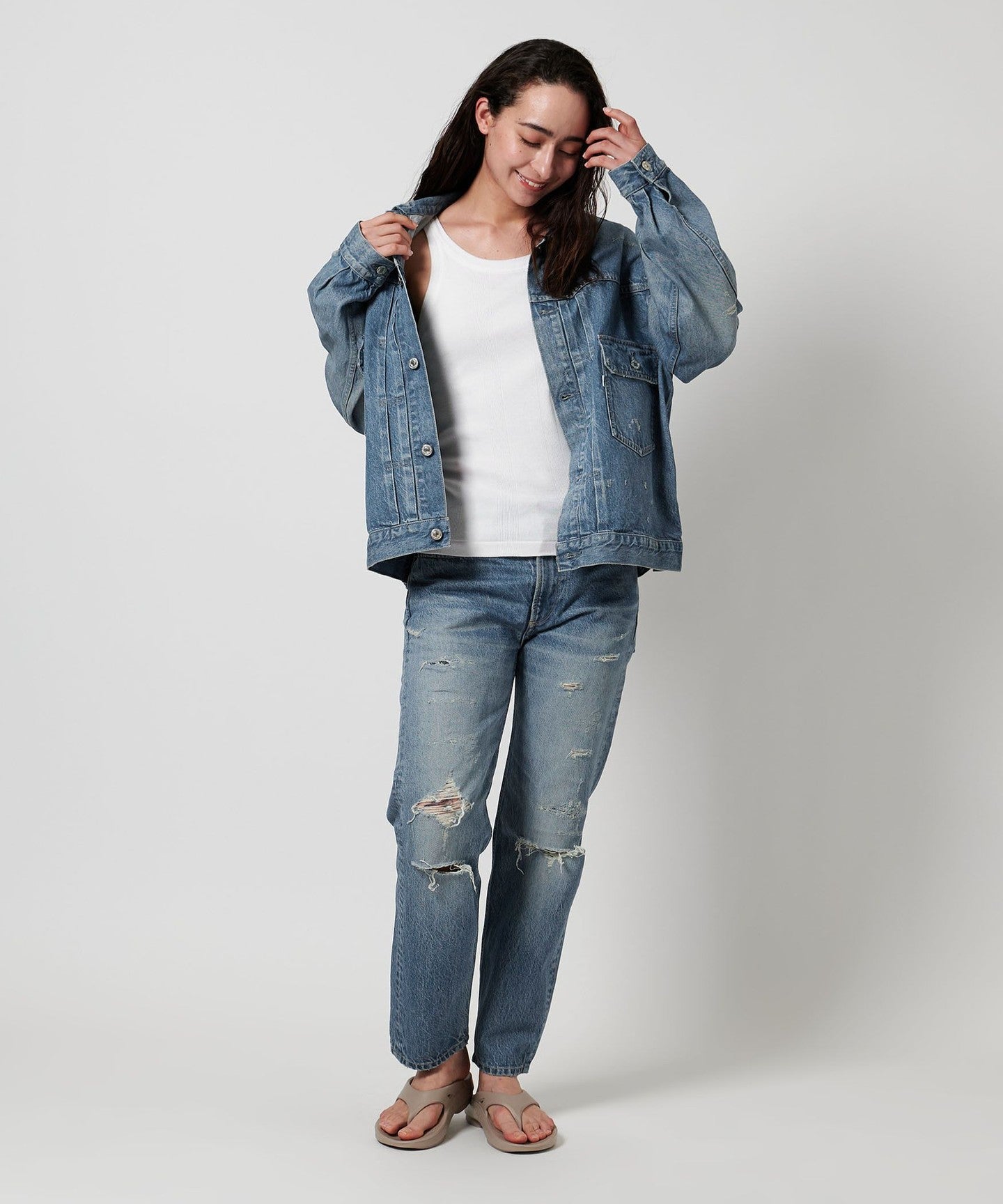 A denim jacket made from 13oz Kaihara denim using organic cotton.