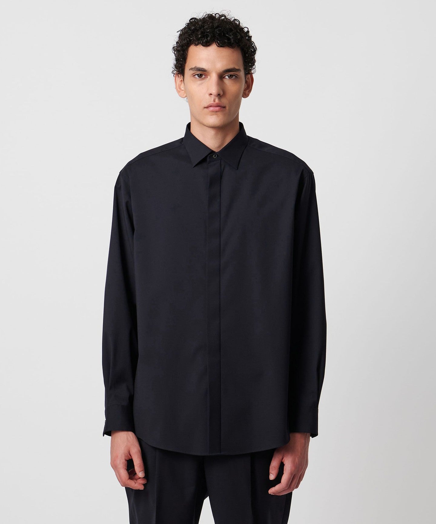 A fly-front shirt with a refined design and minimalist design