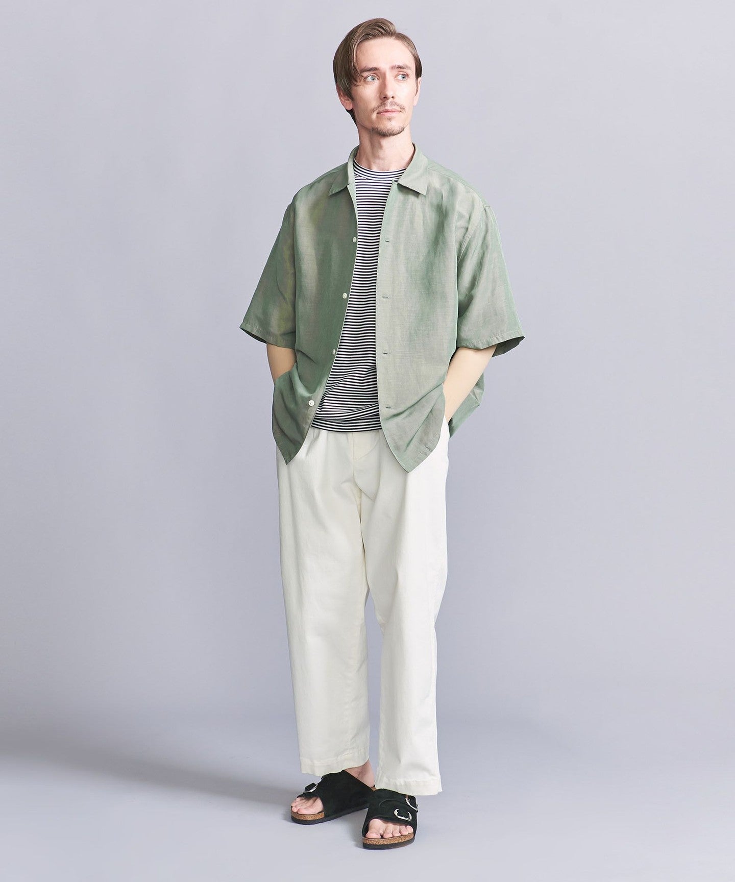 We recommend pairing it with loose, wide-cut bottoms such as shorts, chinos, or slacks for a relaxed look.