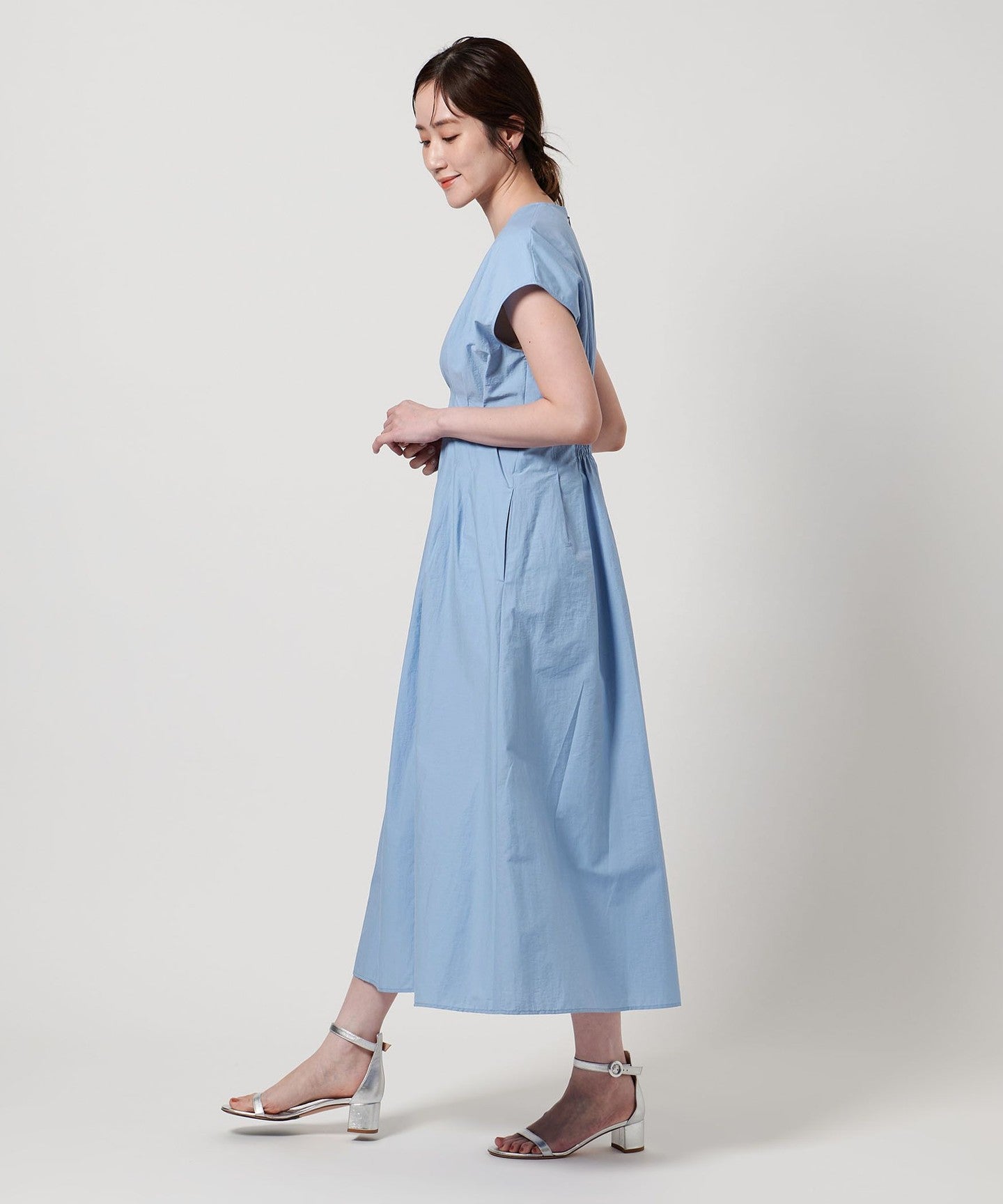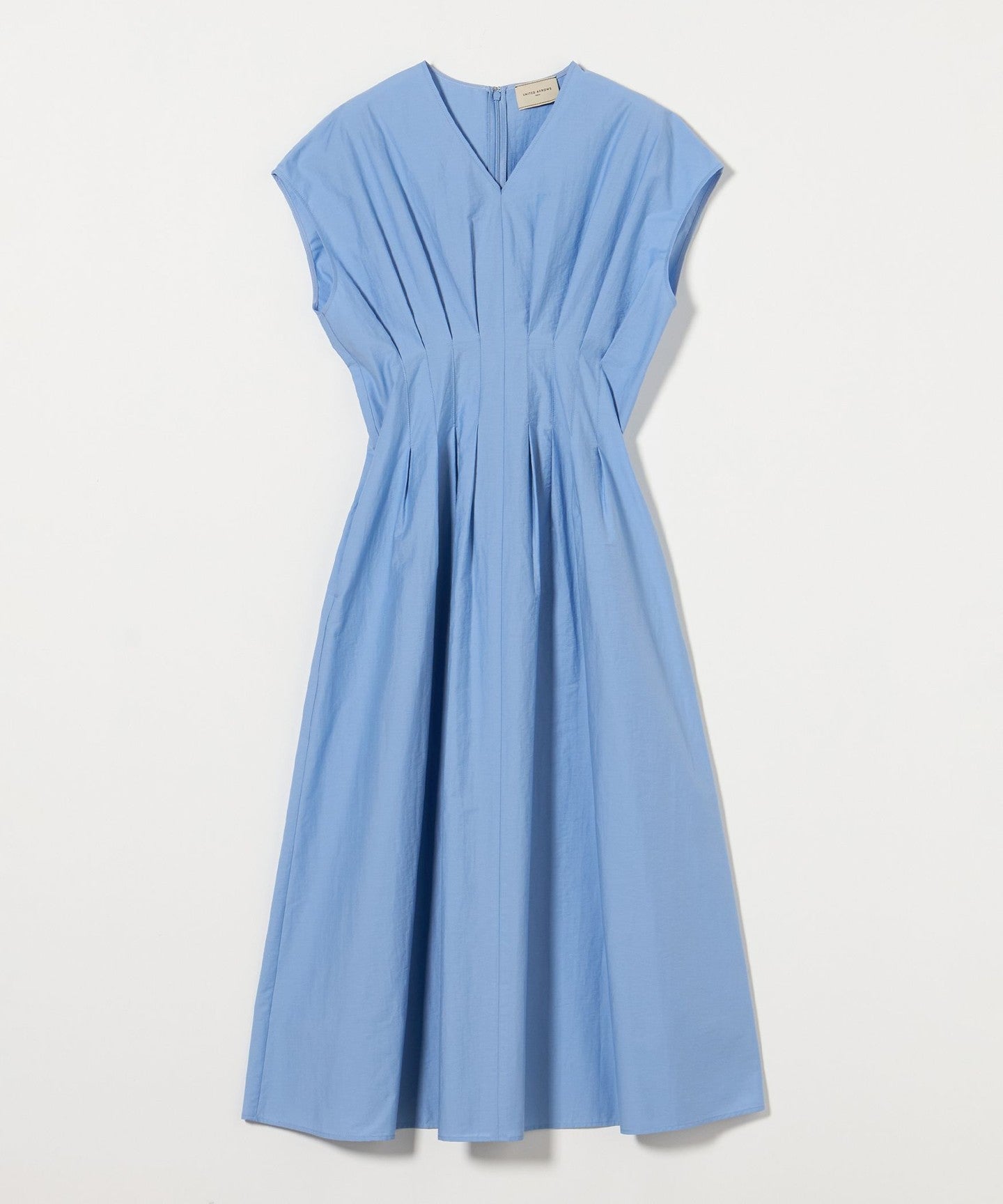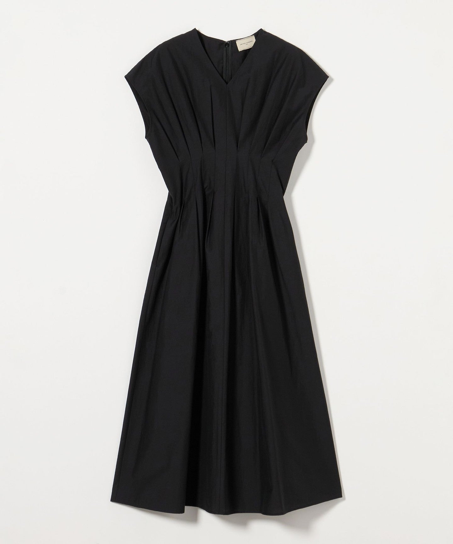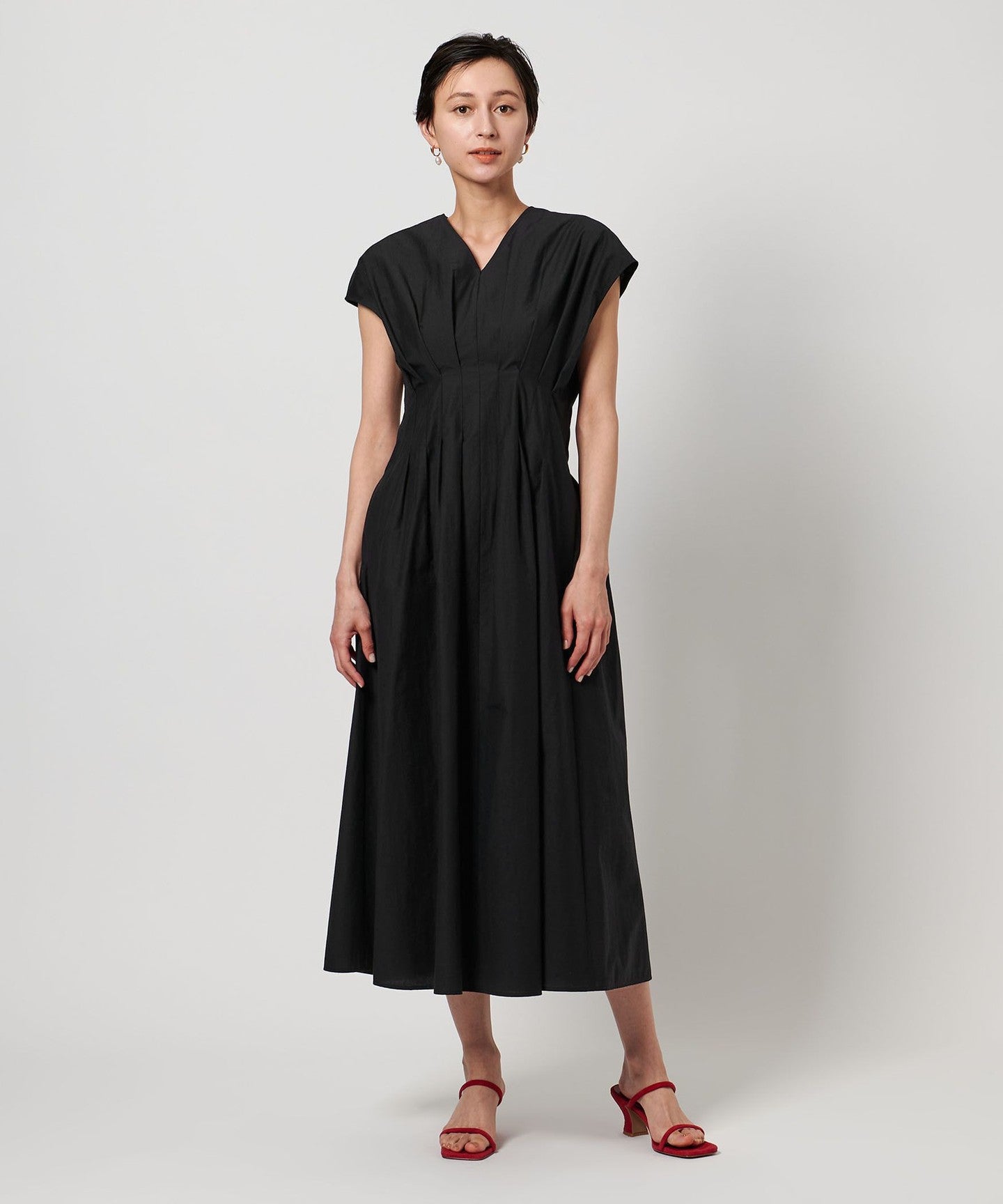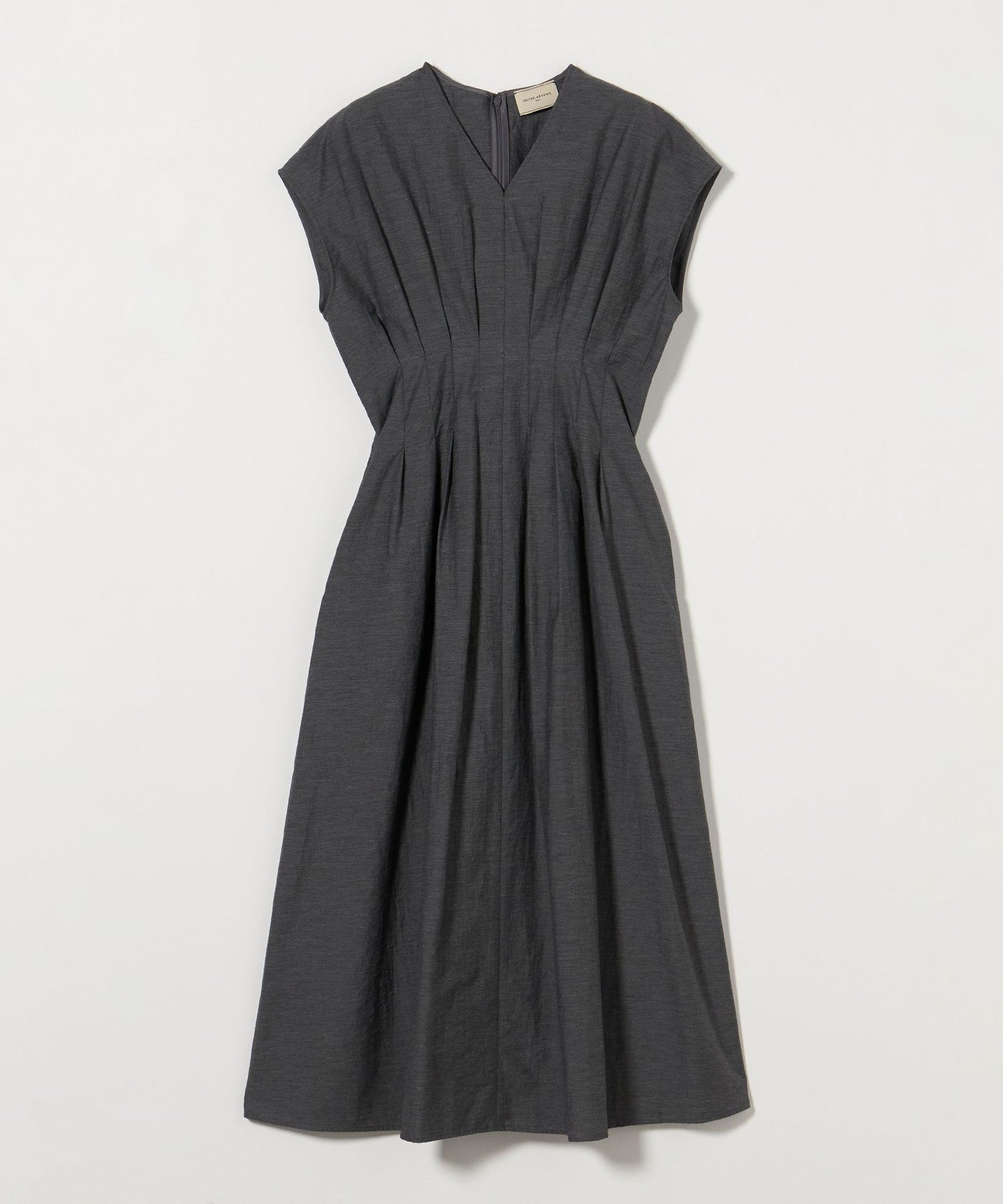 The waist is tightened with design tucks and the design widens slightly towards the hem.