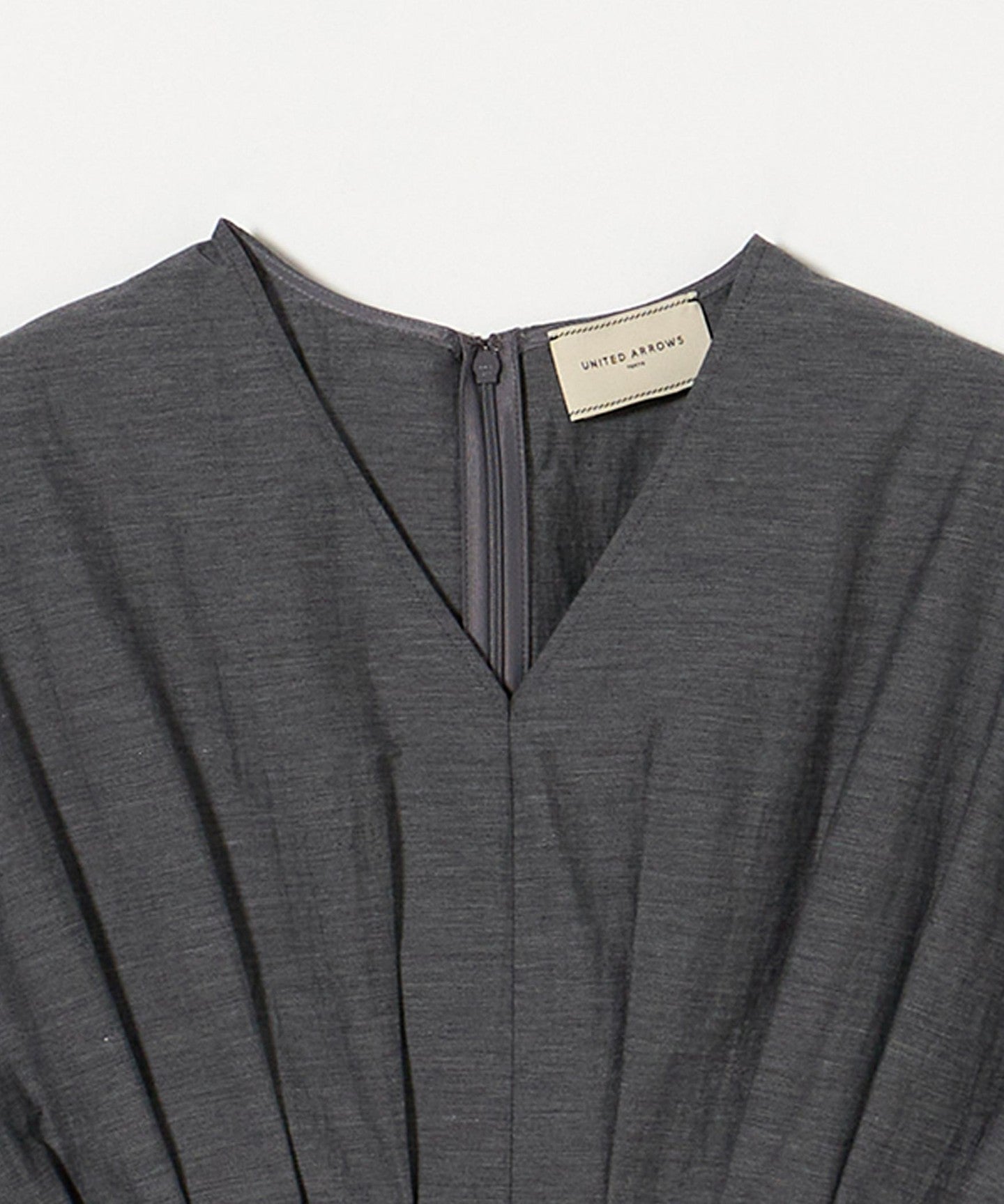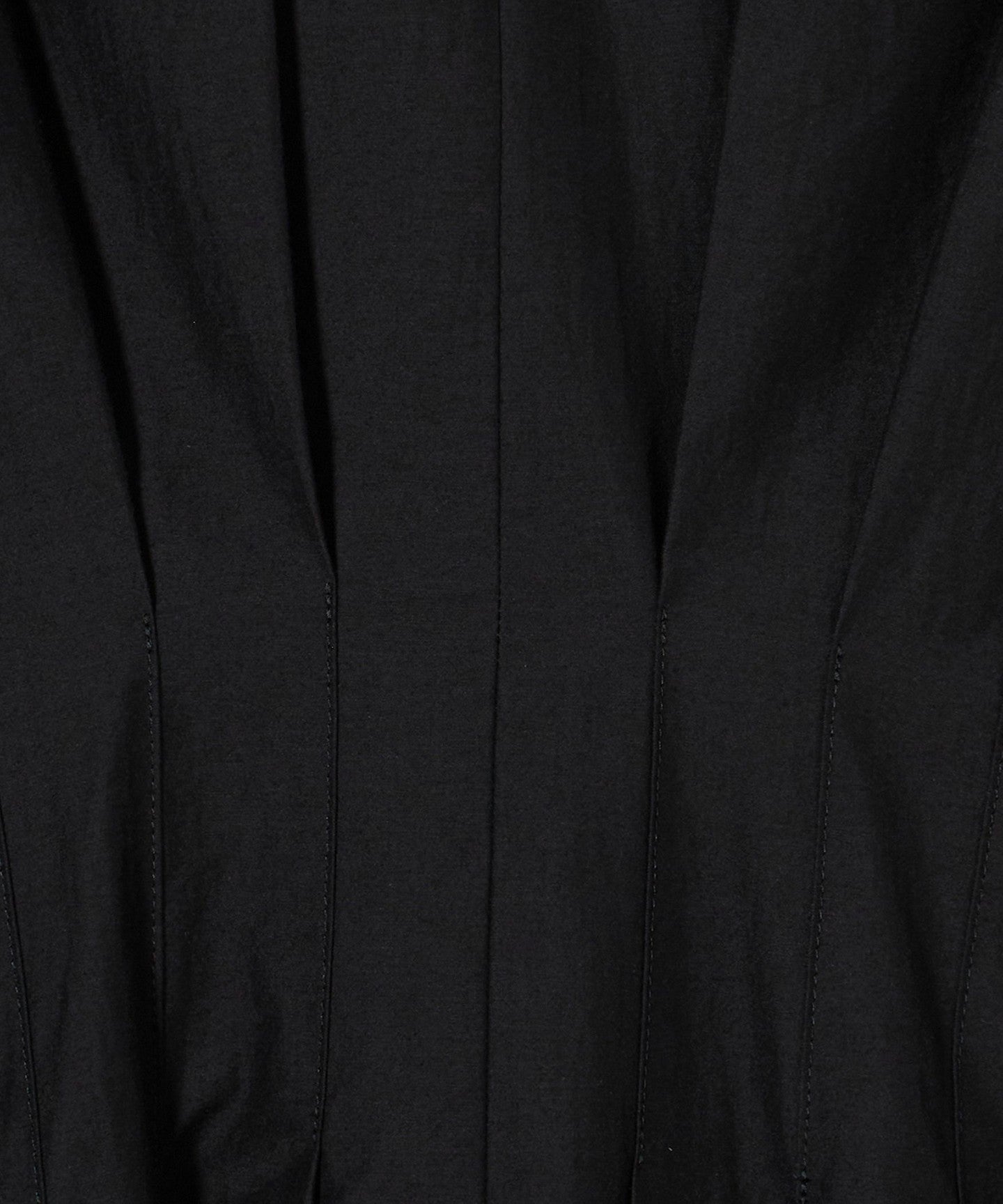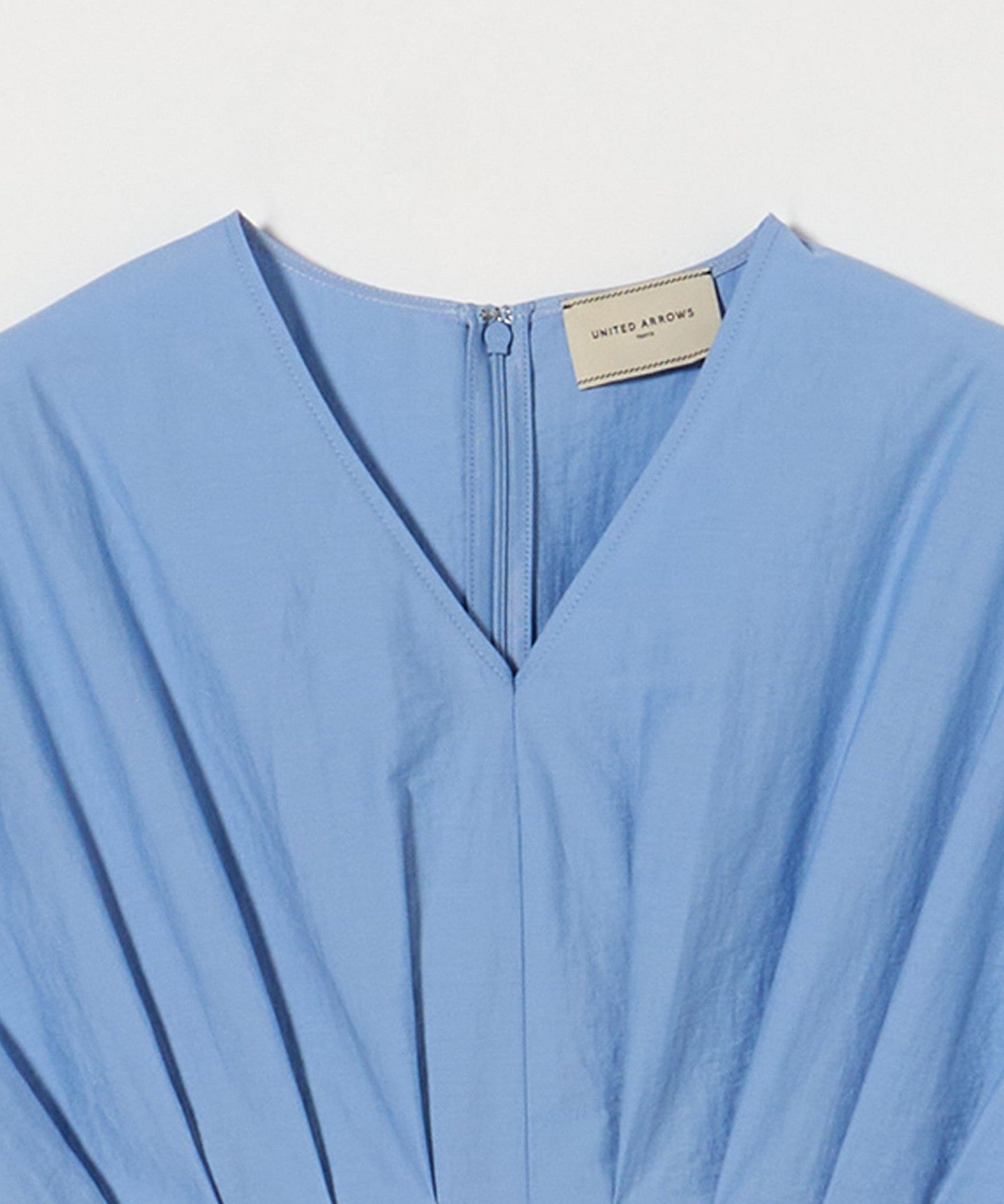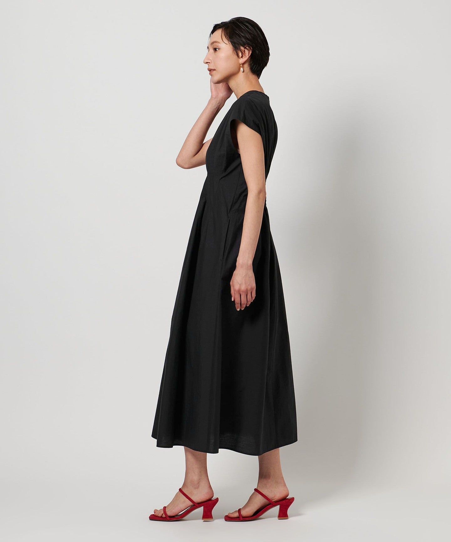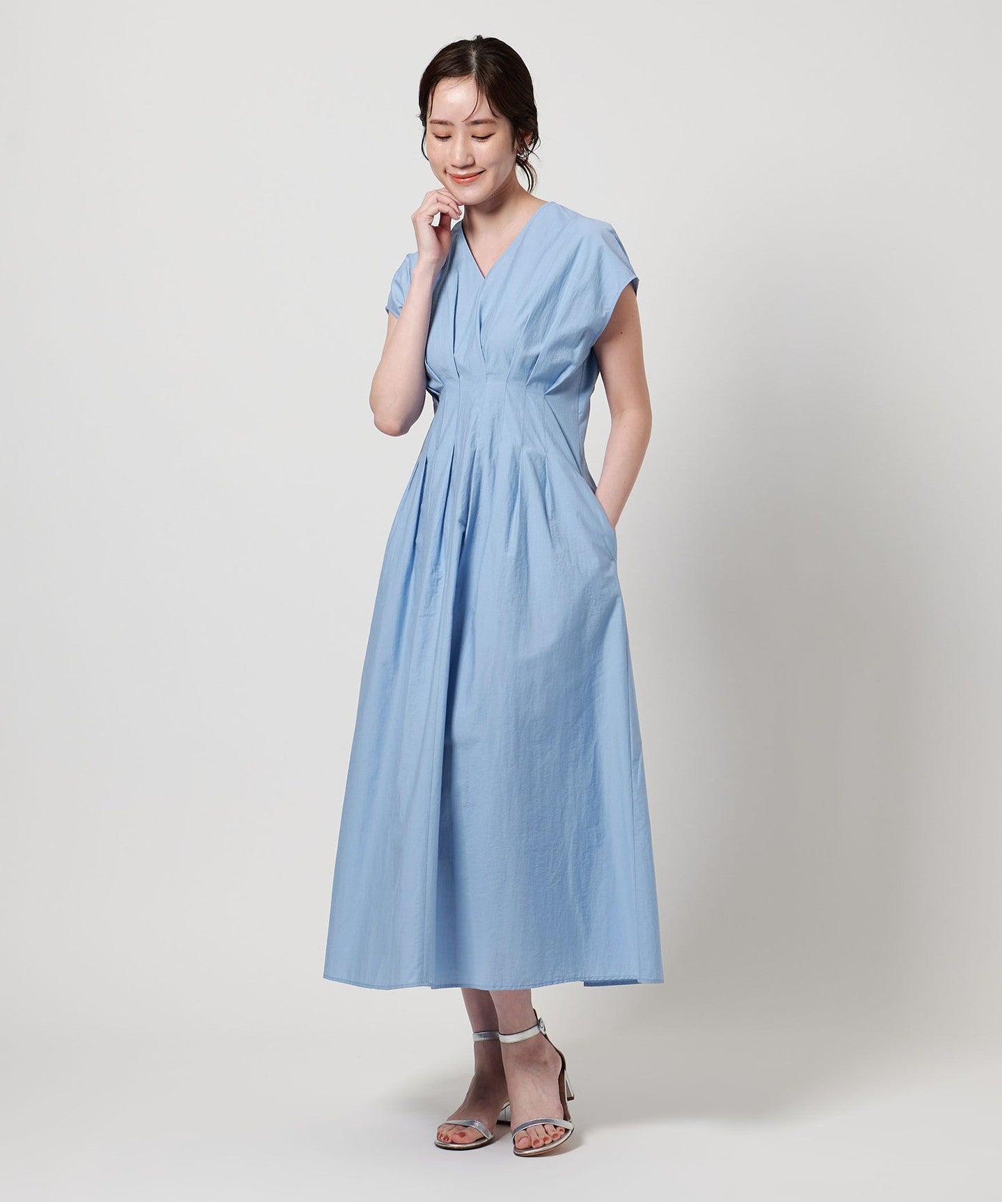 The waist is tightened with design tucks and the design widens slightly towards the hem.